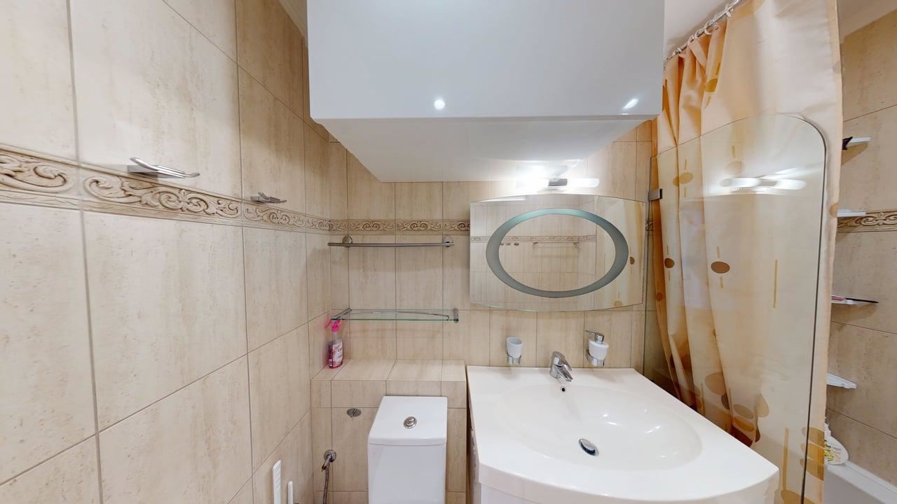 The apartment is functionally and elegantly arranged, with the space harmoniously divided into a cozy kitchen, dining area, and a relaxation and sleeping zone. The large windows provide plenty of natural light and reveal a breathtaking panoramic sea view, which can be fully enjoyed from the spacious balcony – an ideal place for morning coffee or evening relaxation accompanied by the sound of the waves. The modern bathroom is finished with style and attention to detail, complementing the overall feeling of comfort and luxury.