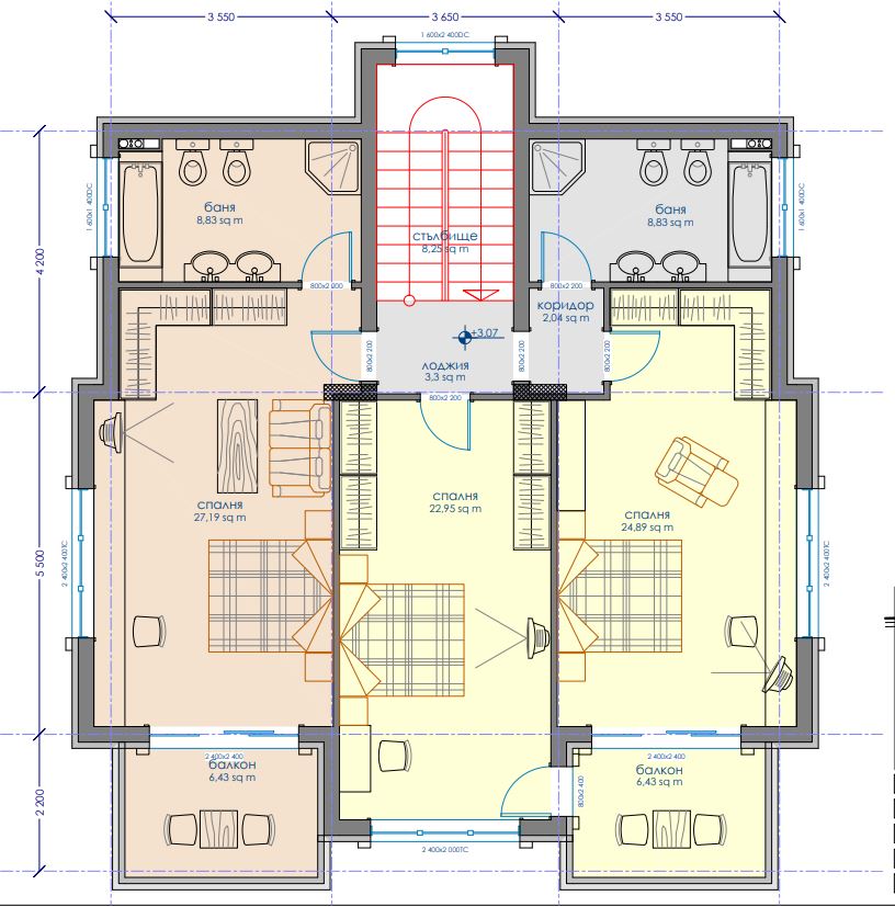 Individual two-storey house with sea panorama of 265,32 m2 is located on a plot of 604 m2. The house will be fenced, landscaped, swimming pool with Jacuzzi, covered parking for two cars. The house has the following layout: the ground floor includes a large hall and kitchen, WC, storage (boiler room and laundry room), panoramic veranda. On the first floor there are three large bedrooms with dressing rooms, two bathrooms, two panoramic terraces. This luxurious private house is located in the south-east of Sozopol, on the peninsula ‘Budjaka’. The house has a beautiful panorama to the wide beach strip Kavatsi. Near the house there is a necessary infrastructure.