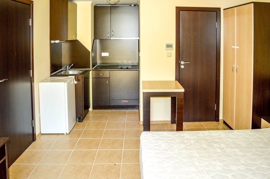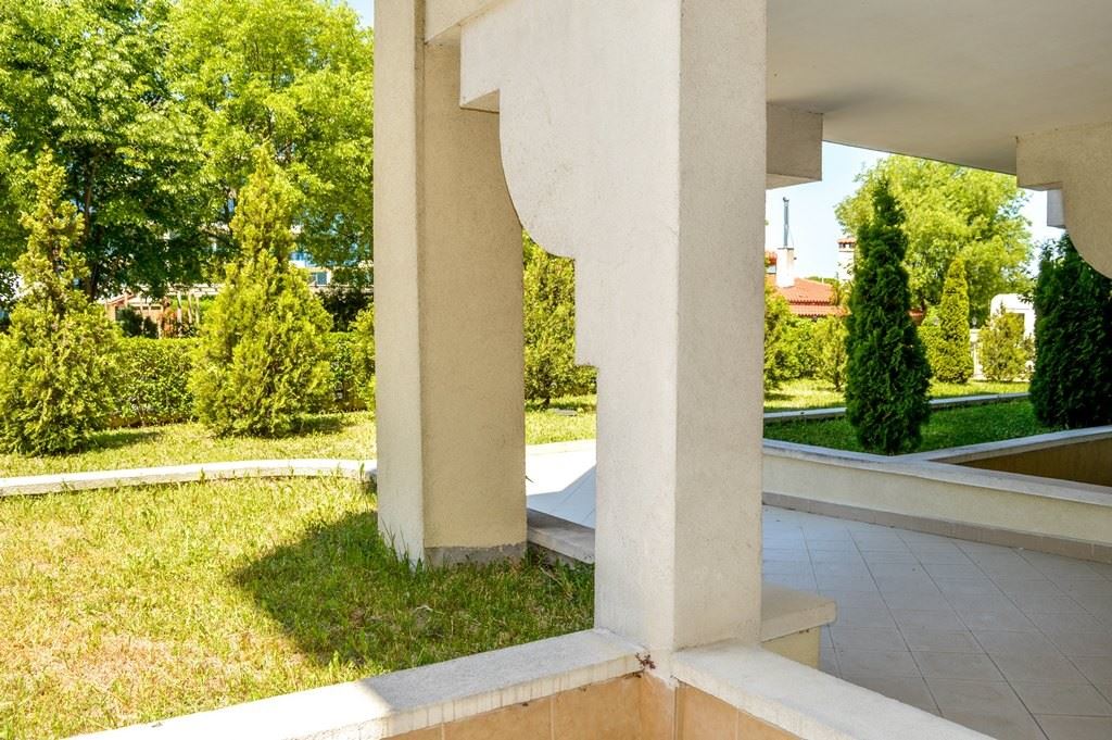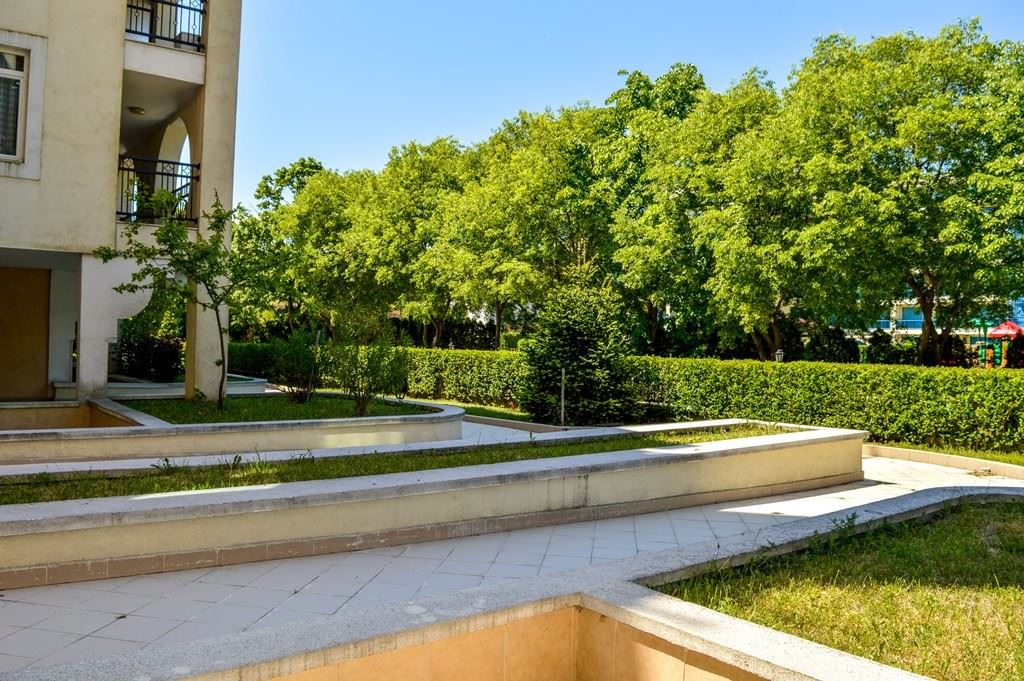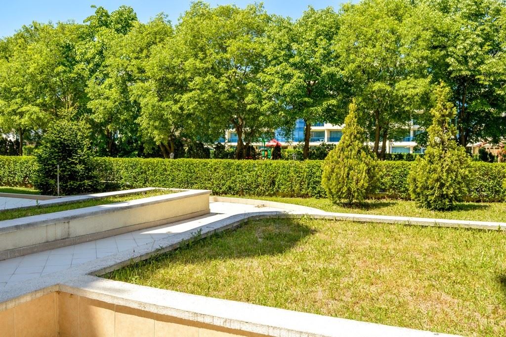We present you a unique opportunity to invest in a luxury studio located on the first line in the famous resort town of Pomorie. This is your chance to own the perfect vacation spot with a guaranteed return on investment. The studio covers an area of 33 m² and is located on the ground floor, providing easy access to all amenities and facilities in the complex. Fully furnished and equipped, the property is ready to be rented out or for your personal use. The spacious balcony offers views of the beautiful gardens, creating a peaceful and relaxing atmosphere.