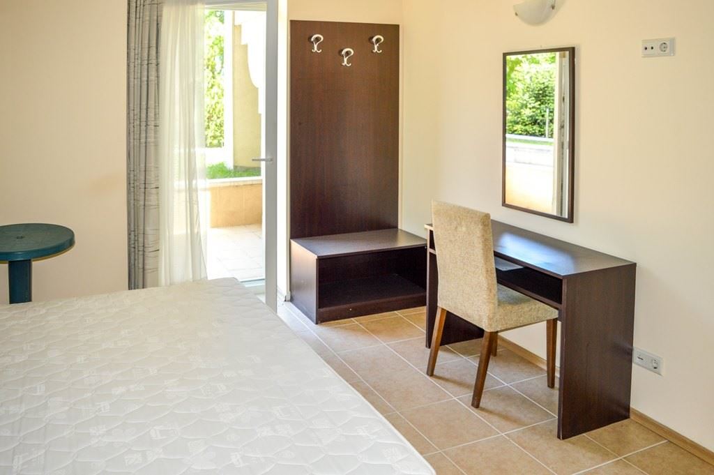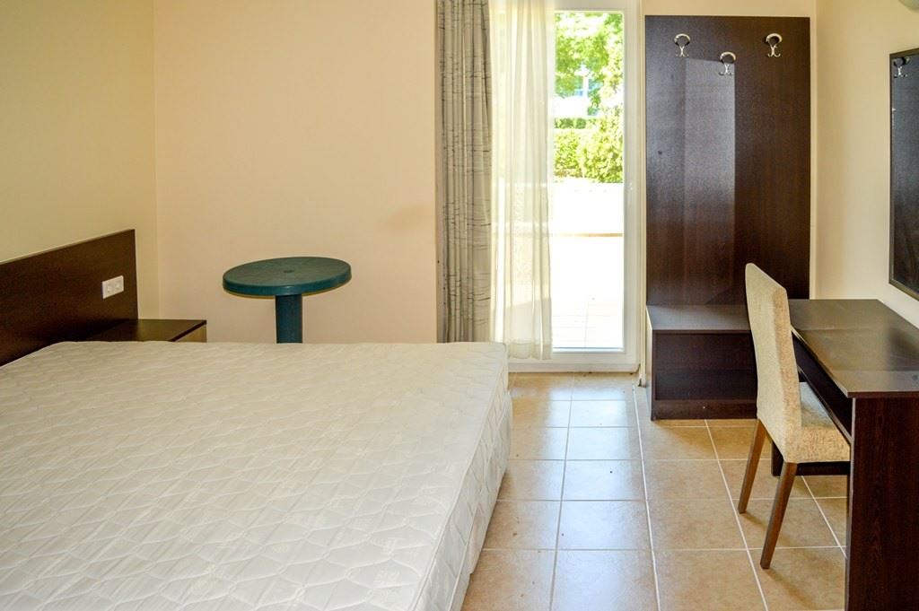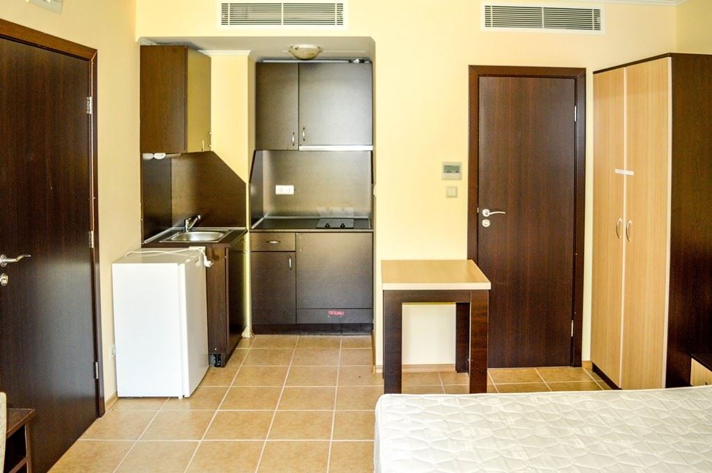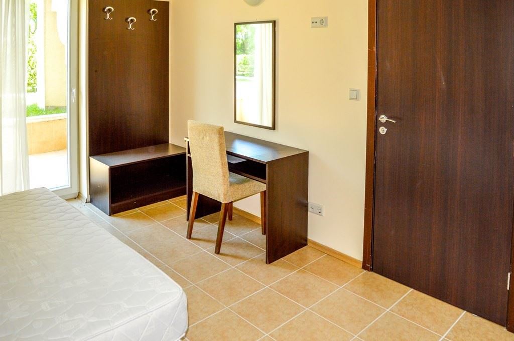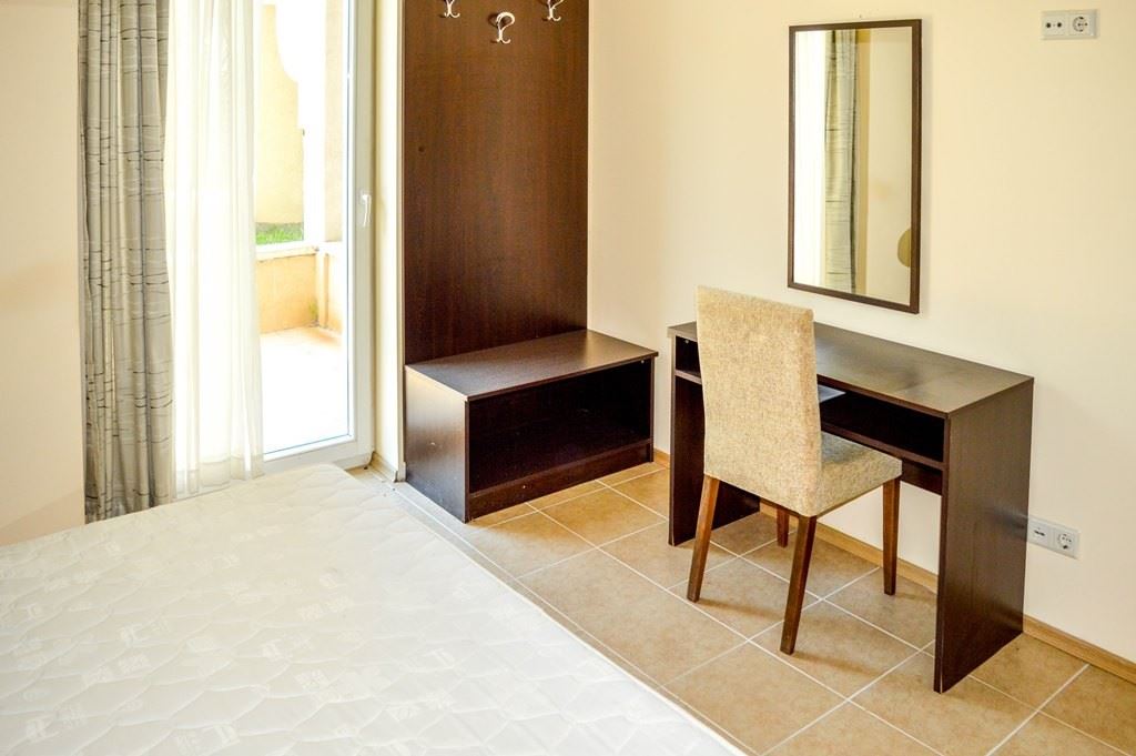 We present you a unique opportunity to invest in a luxury studio located on the first line in the famous resort town of Pomorie. This is your chance to own the perfect vacation spot with a guaranteed return on investment. The studio covers an area of 33 m² and is located on the ground floor, providing easy access to all amenities and facilities in the complex. Fully furnished and equipped, the property is ready to be rented out or for your personal use. The spacious balcony offers views of the beautiful gardens, creating a peaceful and relaxing atmosphere.