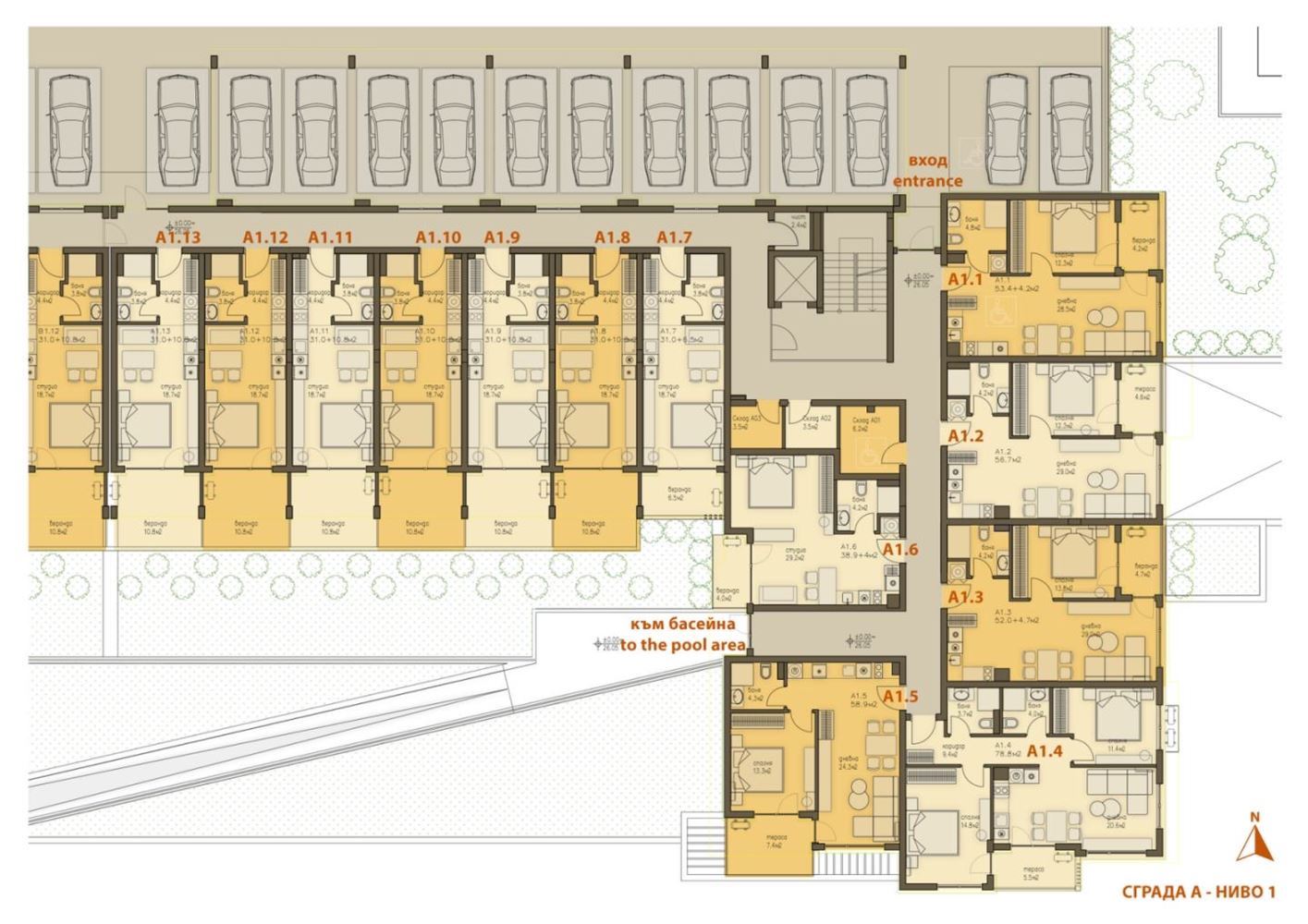 The complex offers a complete infrastructure ensuring comfort and prestige. Owners have access to a swimming pool, landscaped relaxation zones, and pedestrian alleys, creating a pleasant and calm living environment. Security is guaranteed through live security and 24/7 video surveillance, which provides peace of mind and protection at all times. For cars, covered garages and parking spaces are available for an additional fee, accessible only to residents of the complex, which is an additional convenience and guarantee of comfortable parking.