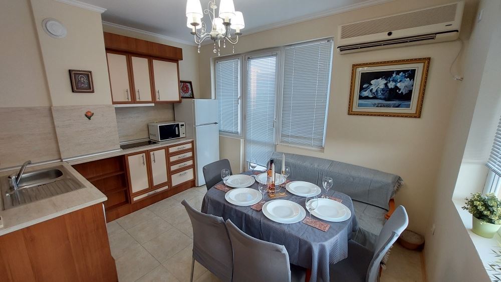 This apartment in Pomorie is a great place to live permanently or as an investment property on the seaside. Its convenient location, quality finishes and modern furnishings make it an attractive option for buyers.