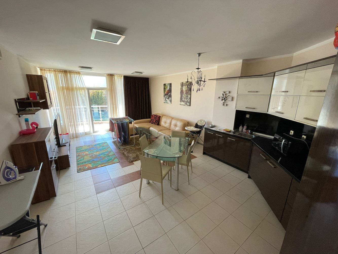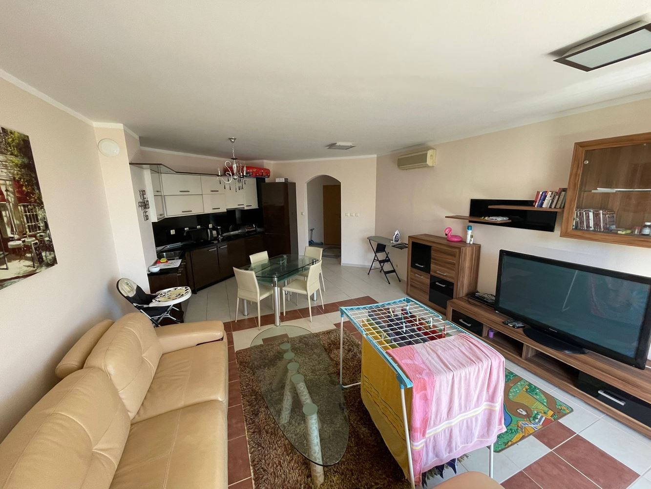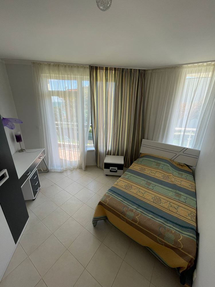 Splendid two-bedroom first line flat of 111 m2 is located on the first floor of the complex, built in the resort town of Nessebar. The flat has a large living room with kitchen, two bedrooms, two bathrooms and balconies. The infrastructure of the complex is very well developed. In addition to the indispensable swimming pool, there is a safe playground for children. There is a café where you can enjoy the Bulgarian cuisine. A parking space is available. The security system of the complex is available 24 hours a day.