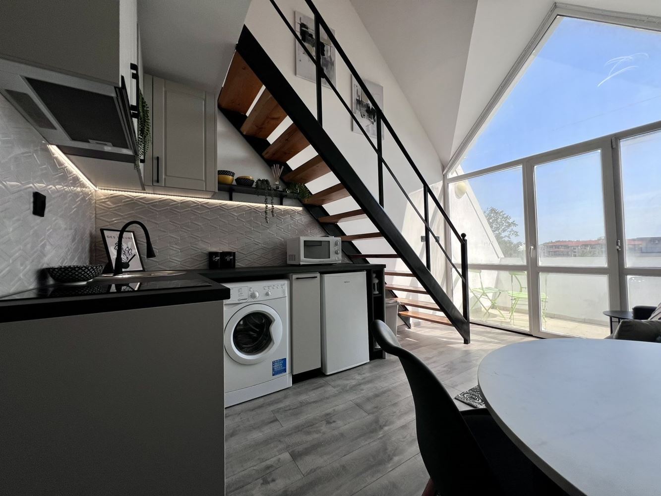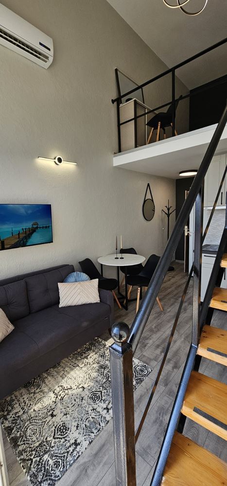 We offer you an exclusive penthouse located in the heart of the resort. Sunny Beach - the ideal offer for those who are looking for a combination of luxury and comfort. With a total area of 40 sq.m, this property offers comfort and functionality in a compact space. The apartment has one bright and spacious room, which is cleverly divided into two levels and combines living room and bedroom, providing you with comfort and convenience. The balcony offers a nice place to relax and enjoy the fresh air and picturesque setting of the complex. The bathroom is stylishly furnished, with modern and quality sanitary appliances.