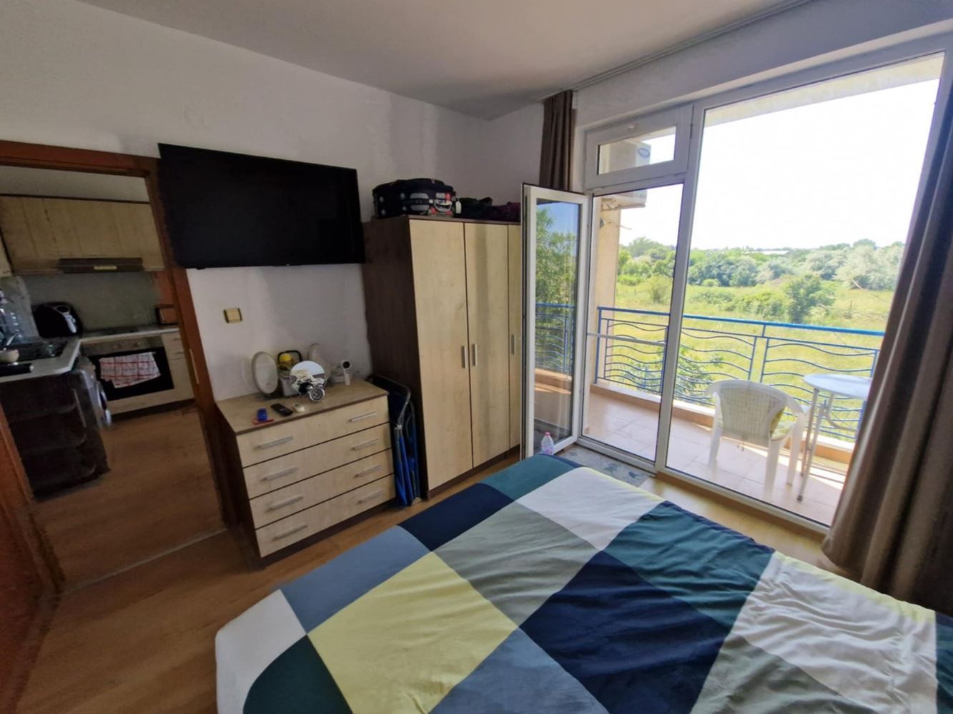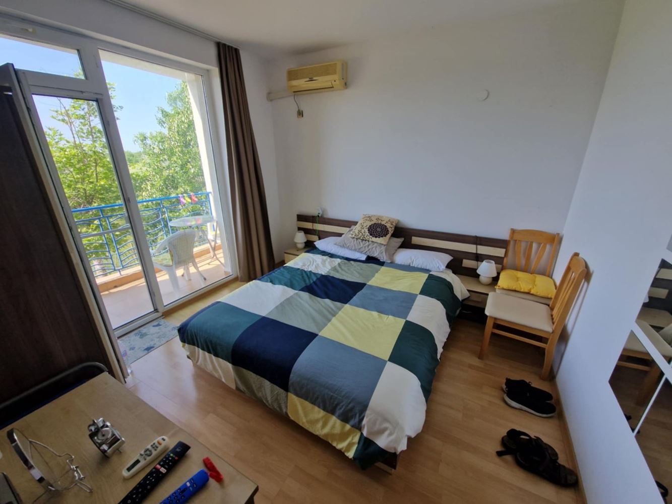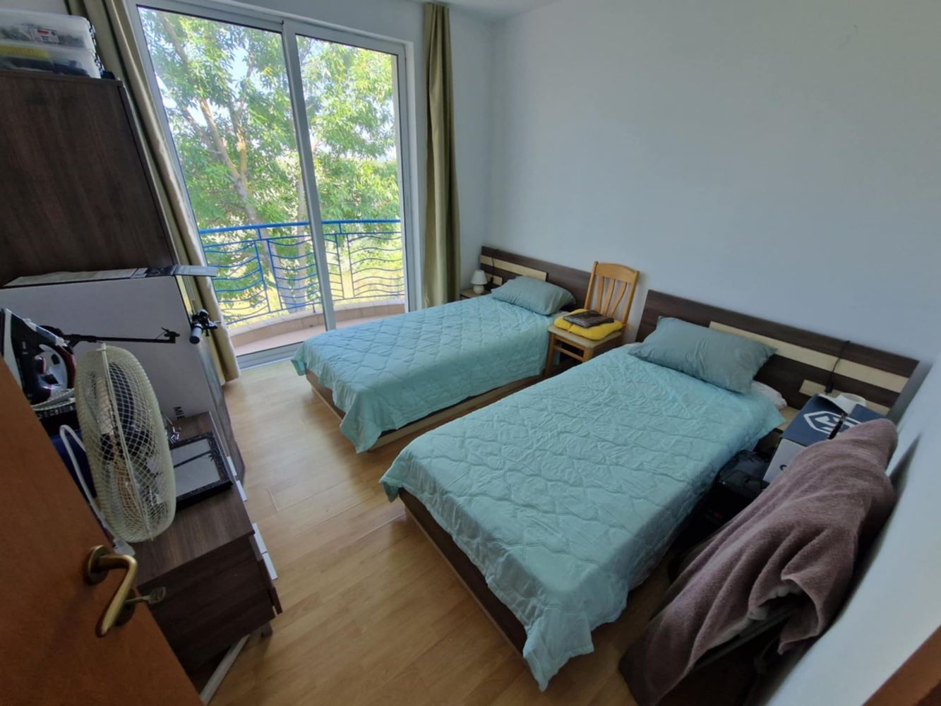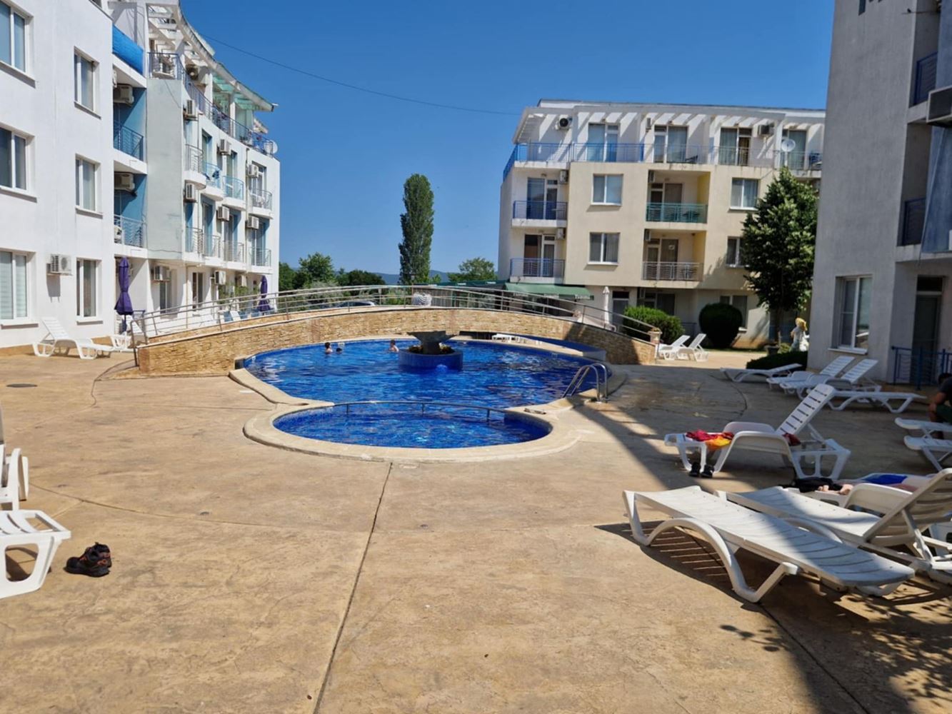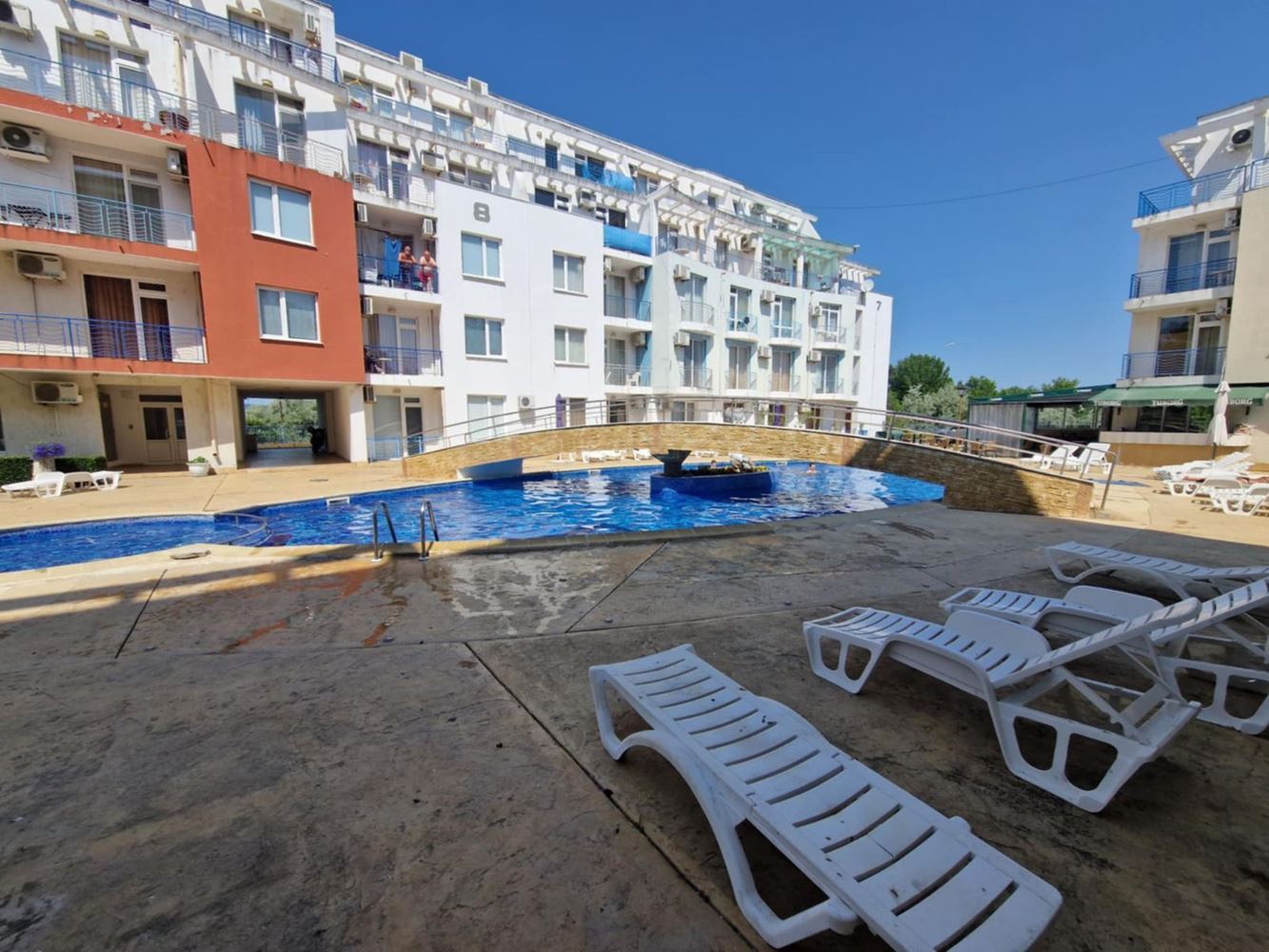 We present you a unique opportunity to buy a two bedroom apartment in the heart of one of the most popular seaside resorts in Bulgaria - Sunny Beach. This spacious apartment of 75 m2 is located on the second floor in an exclusive complex that combines comfort and convenience. The apartment has three spacious rooms, including two cozy bedrooms, which offer the perfect place to relax after a long day at the beach. The new owners also have a bright living room, perfect for family gatherings or entertaining friends. The current owners have ensured that the interior is functional and comfortable to make you feel at home. The condo has two balconies that offer the opportunity for morning coffee or an evening cocktail under the open sky while enjoying the views of the complex's green spaces. The bathroom is modern and fully equipped.