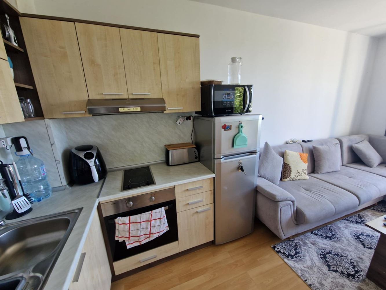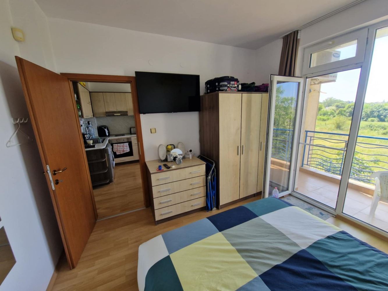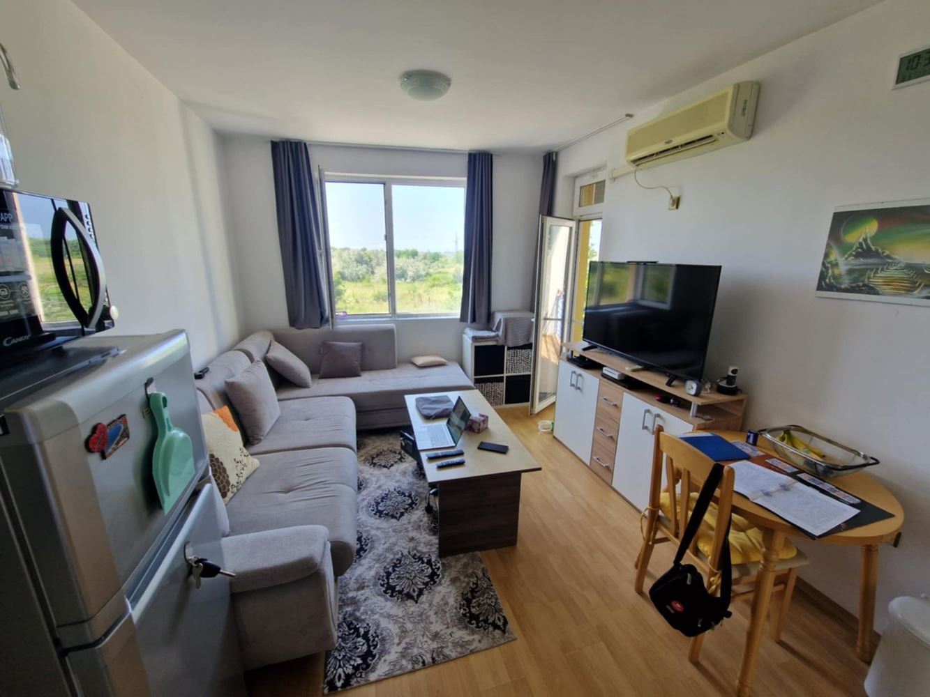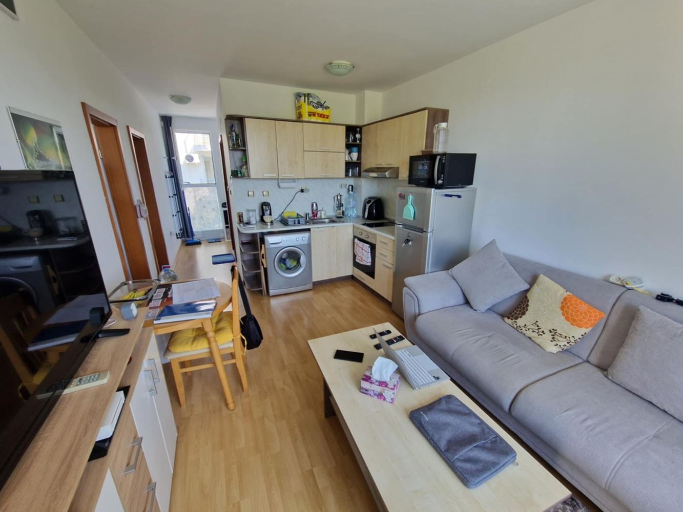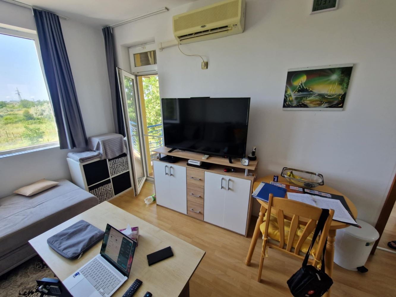 We present you a unique opportunity to buy a two bedroom apartment in the heart of one of the most popular seaside resorts in Bulgaria - Sunny Beach. This spacious apartment of 75 m2 is located on the second floor in an exclusive complex that combines comfort and convenience. The apartment has three spacious rooms, including two cozy bedrooms, which offer the perfect place to relax after a long day at the beach. The new owners also have a bright living room, perfect for family gatherings or entertaining friends. The current owners have ensured that the interior is functional and comfortable to make you feel at home. The condo has two balconies that offer the opportunity for morning coffee or an evening cocktail under the open sky while enjoying the views of the complex's green spaces. The bathroom is modern and fully equipped.
