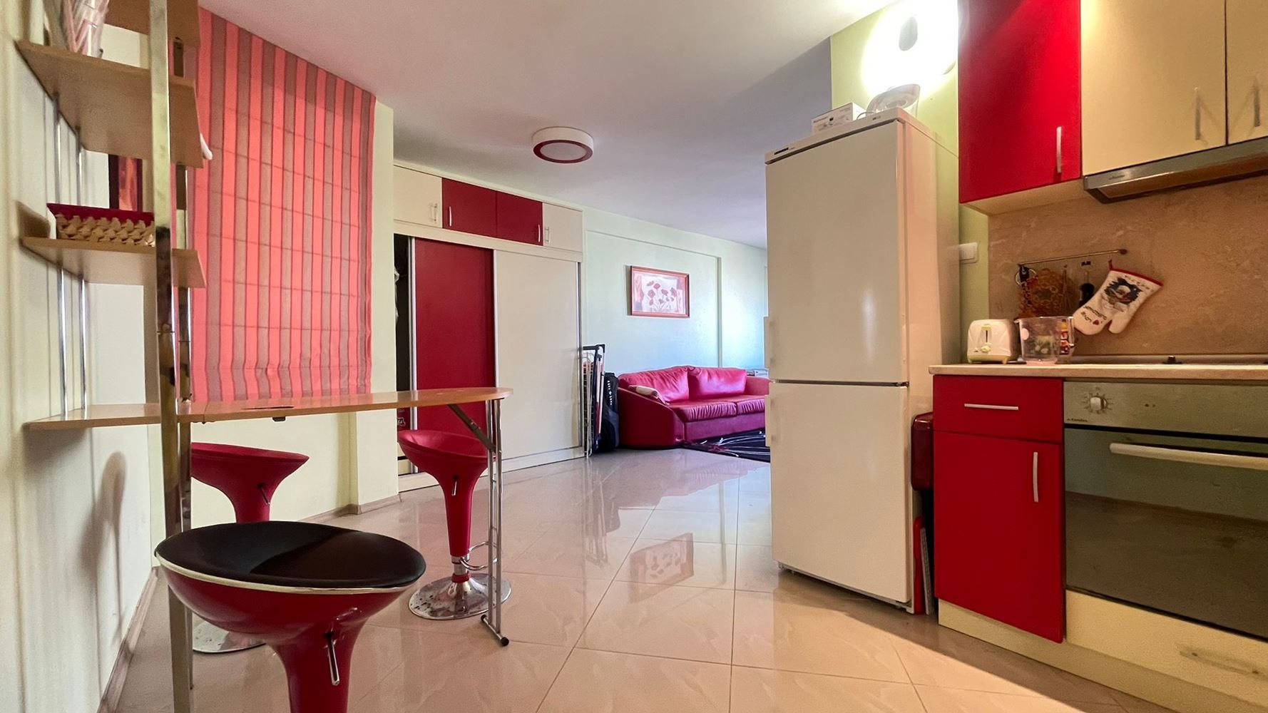 The apartment has a spacious living room, which is connected to a fully equipped kitchen, ideal for preparing your favorite meals. The bedroom is a private space offering comfort and relaxation after a long day at the beach. Additional amenities include a modern bathroom and a terrace overlooking the pool, where you can peacefully enjoy your morning coffee or the evening breeze.