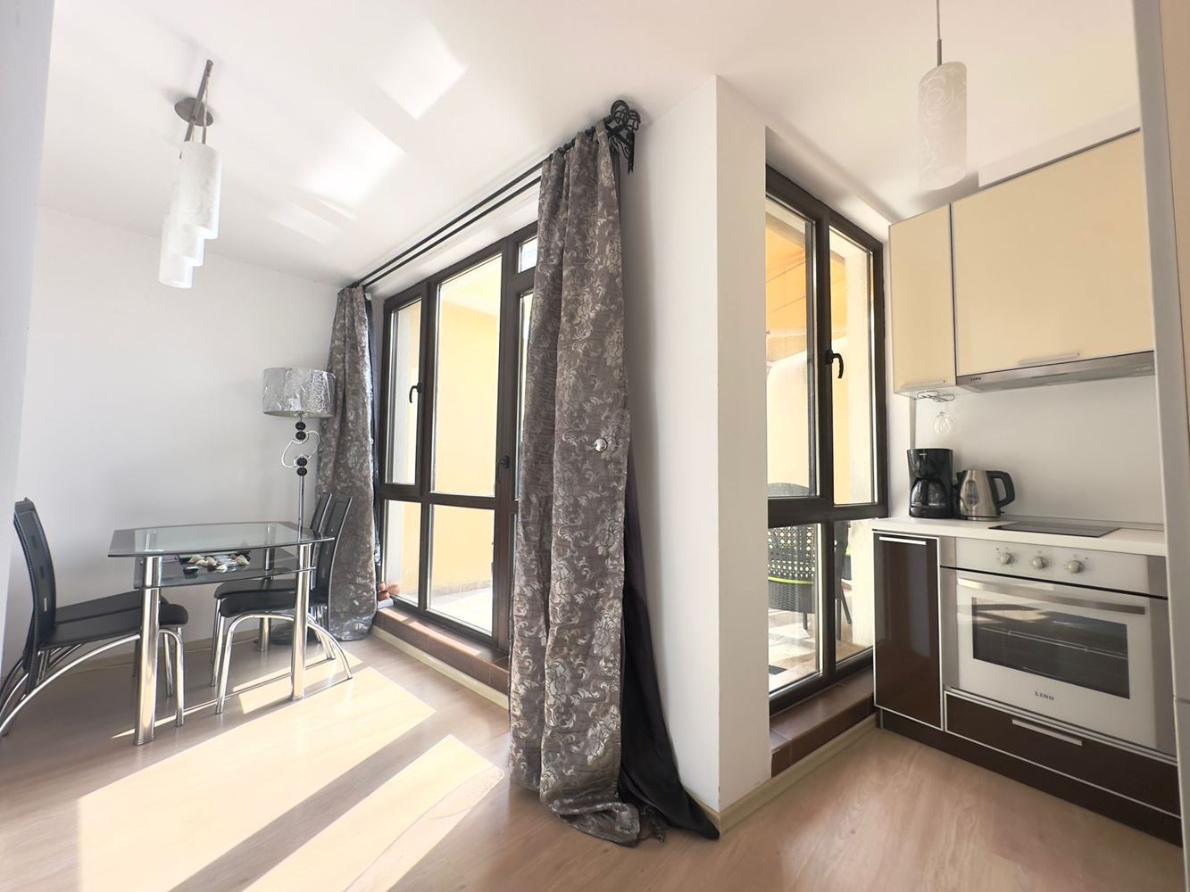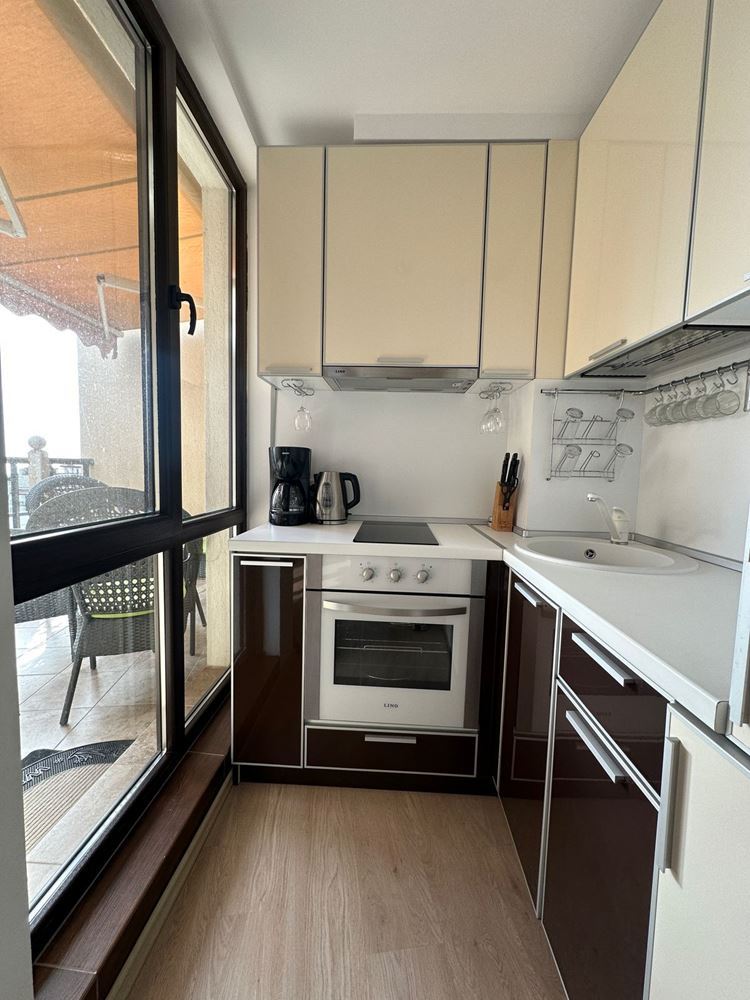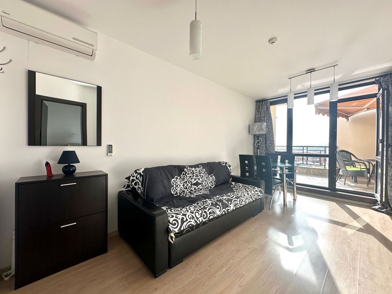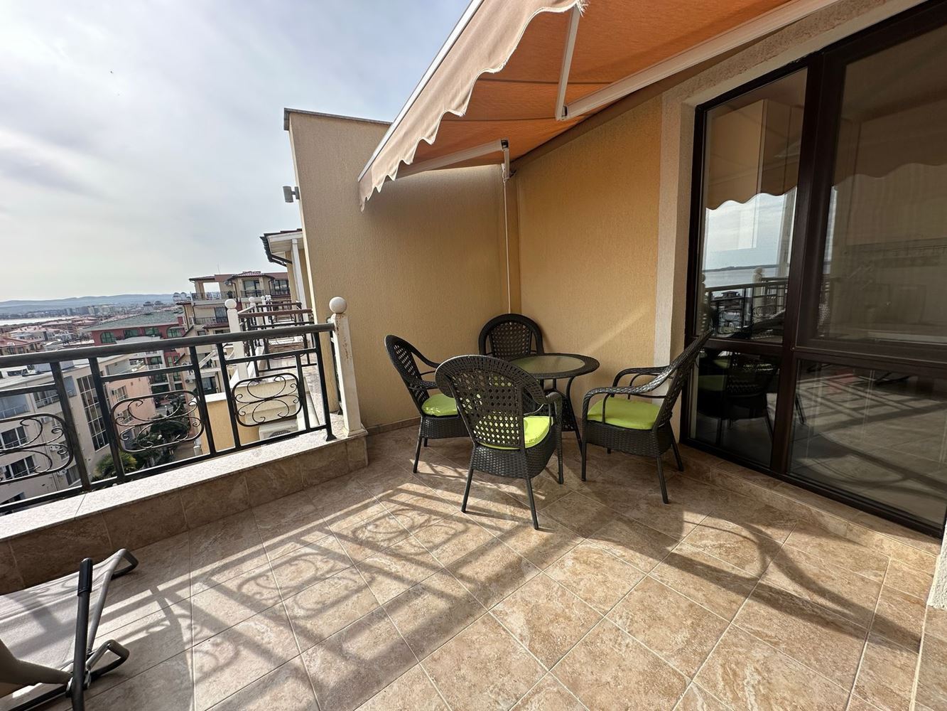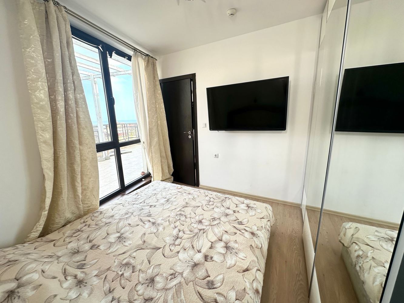 We present you an exclusive one bedroom apartment with amazing sea and mountain views, located in the beautiful town of Sveti Vlas. This property is a real gem on the top floor of the building and provides comfort and coziness on an area of 51,80 m². The apartment consists of an entrance hall, a spacious living room with a cosy kitchenette, one bedroom and a stylish bathroom with toilet. One of the highlights of this apartment is the chic terrace, where you can enjoy the stunning panoramic sea and mountain views - the perfect place for morning coffee or romantic evenings.