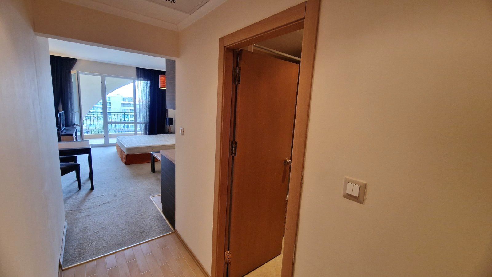 This modern beachfront studio in Sunny Beach is an excellent accommodation with a number of advantages. The studio is located on the seventh floor, which provides a wonderful view of the park and the surrounding area. Its beachfront location makes it ideal for fans of seaside vacations. With an area of 49 m2, the studio provides a cozy space consisting of a living room with a modern kitchen, a bathroom with toilet and a balcony. The efficient layout makes the accommodation comfortable to live in. The complex in which the studio is located offers a wide range of amenities, including luxurious grounds. There is everything you need for a comfortable vacation, including restaurants, swimming pools, beach activities and many other recreational activities. The studio is located in the upscale northern part of the resort, where there is a well-developed infrastructure. You will find stores, restaurants, cafes and other amenities in close proximity.