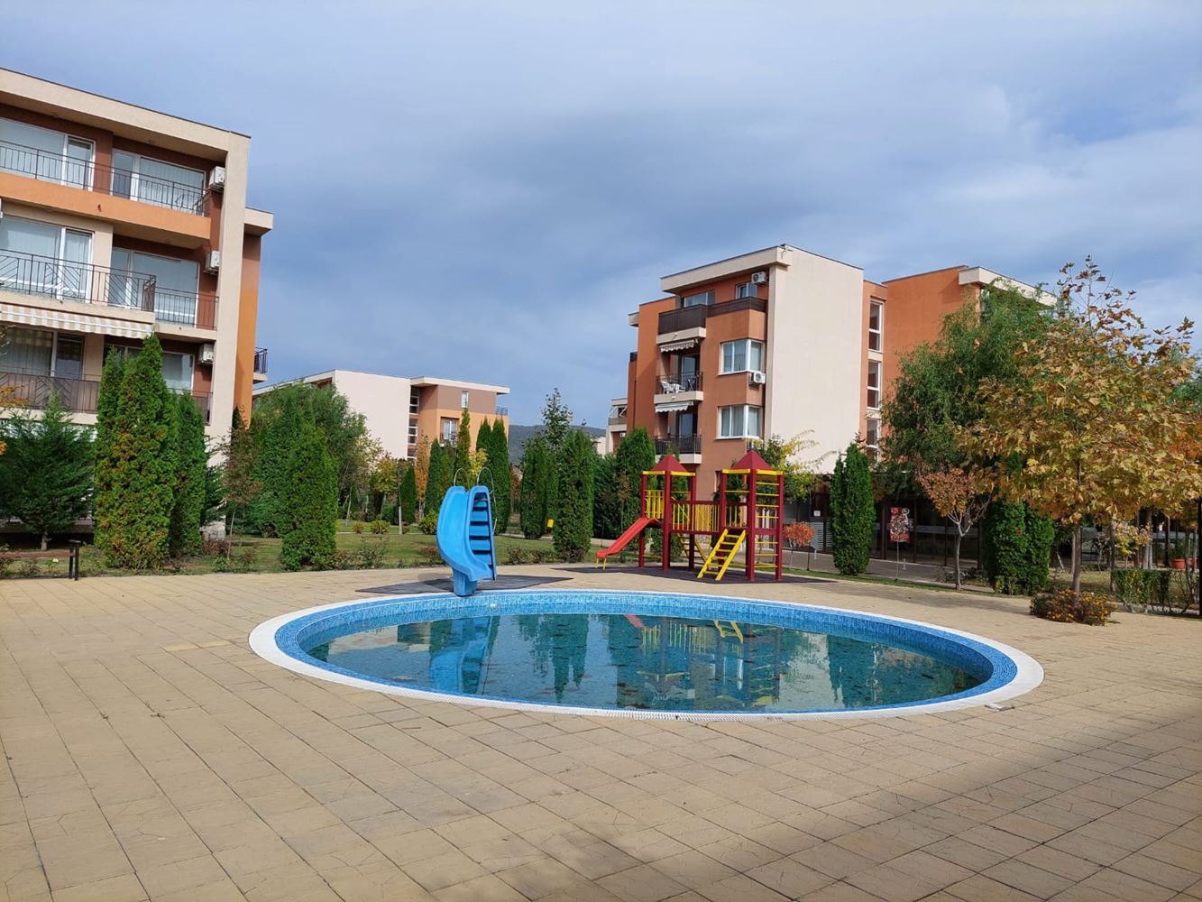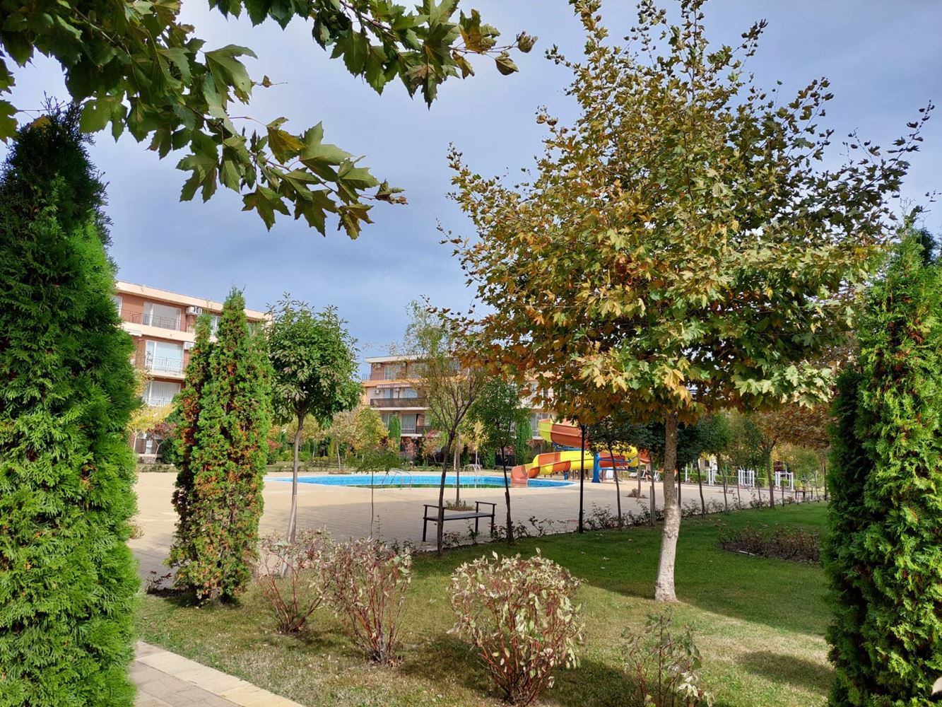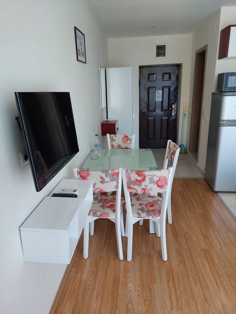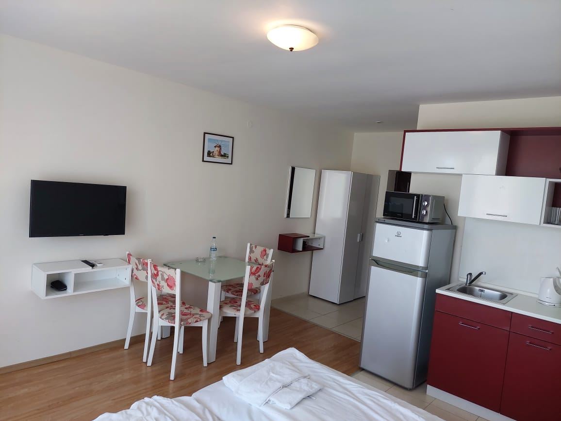 A cosy fully furnished studio in a gated complex in Sunny Beach provides ideal conditions for a comfortable stay just ten minutes walk from the sea. With an area of 40 square metres, this studio is ideal for permanent living. Placed on a parterre, the studio provides easy access and convenience of movement. The windows overlook a cosy courtyard, creating an atmosphere of privacy and tranquility. The accommodation is move-in ready, allowing you to instantly enjoy your time at the resort. The complex in which the studio is located provides extensive amenities for a variety of holidays. There are adult and children's swimming pools, water slides, two restaurants, a shop, spa, tennis court, golf course, playgrounds and laundry facilities. You will be able to enjoy outdoor activities right within the confines of your apartment complex. The complex also offers security with a gated community, which is especially important for family holidays. There is a large supermarket, cafes, Aqua Park nearby, making your stay as convenient and carefree as possible. All these factors make this studio an ideal place for a family holiday, where you can enjoy proximity to the sea, a variety of entertainment and the comfort of your own home.
