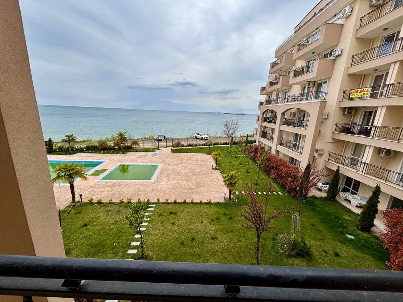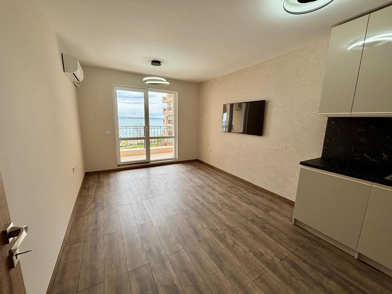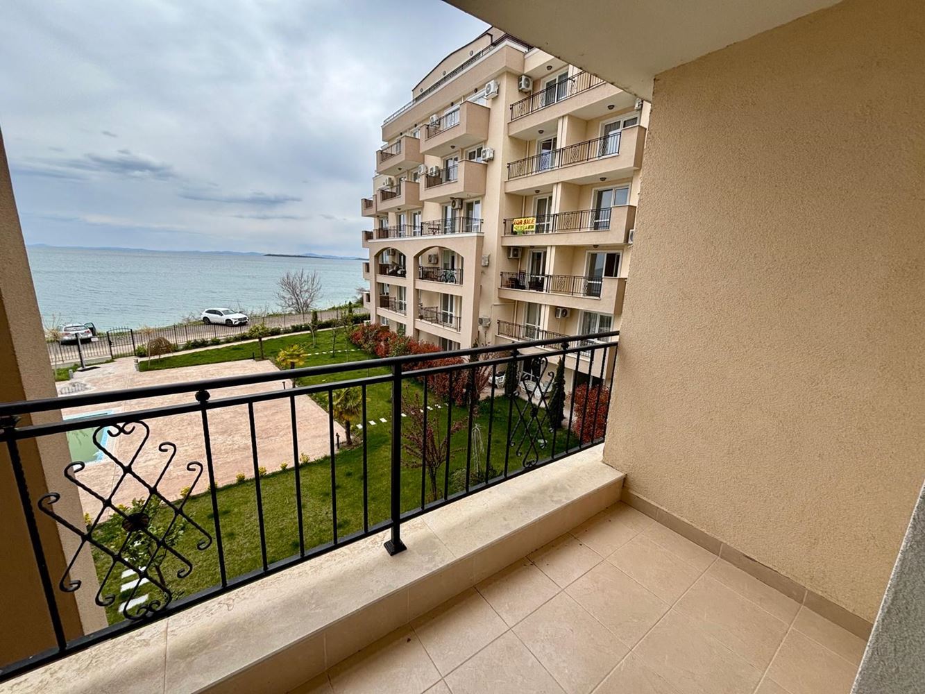 A new wonderful apartment with sea view is located in a luxury complex on the very seaside in the prestigious resort of Sveti Vlas and is the ideal place to live for those who appreciate comfort, luxury and unique nature. The apartment has an area of 58 sq. m and is located on the second floor, from where an excellent view of the endless blue of the Black Sea is revealed. The apartment is offered unfurnished, turnkey, with only a kitchenette.