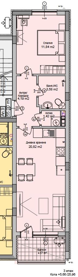 The apartment has a sea view, a total area of 66.41 sqm and is offered on a cap, giving you the opportunity to finish and furnish it to your taste and preference. Includes: spacious living room with kitchen, one cozy bedroom, bathroom, closet and balcony where you can enjoy the sea breeze and beautiful views.
