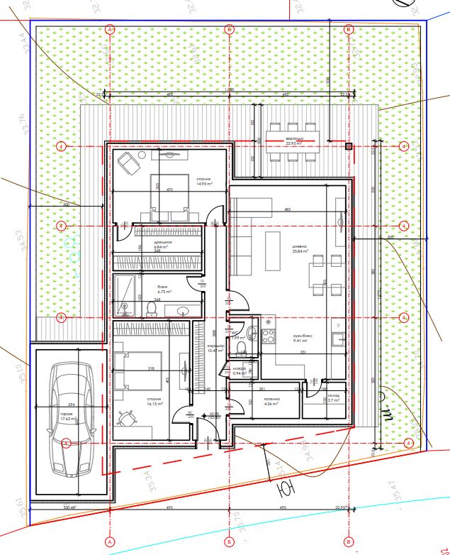 New detached house in the coastal area of Sozopol, in a quiet location with necessary infrastructure. The new house has a modern and concise design and consists of ground floor and first floor. The layout is practical and comfortable and provides enough space for a large family. The house layout is as follows: living room + kitchen with pantry, corridor, bedroom with wardrobe, another bedroom, bathroom with toilet, toilet, laundry room, utility room, garage. The water heater will be installed in the utility room. Internal doors are installed. Underfloor heating. Razvodka for air conditioning in the living room and bedrooms. The property offers 153m2 of living space, a garage of 21.58m2 and a basement of 84m2. The house has a plot of 319 m2.