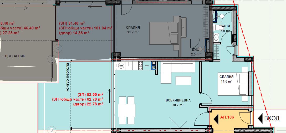 For sale is an exclusive one bedroom apartment on the ground floor in an innovative complex located in Sveti Vlas. With a total area of 62,78 m², this property offers comfort and elegance combined with amazing views. The property includes a spacious living room, a cozy bedroom, a bathroom and a terrace-loggia where you can enjoy the beautiful sea panorama. The apartment has a private courtyard of 22,78 m² - the perfect place for outdoor relaxation.