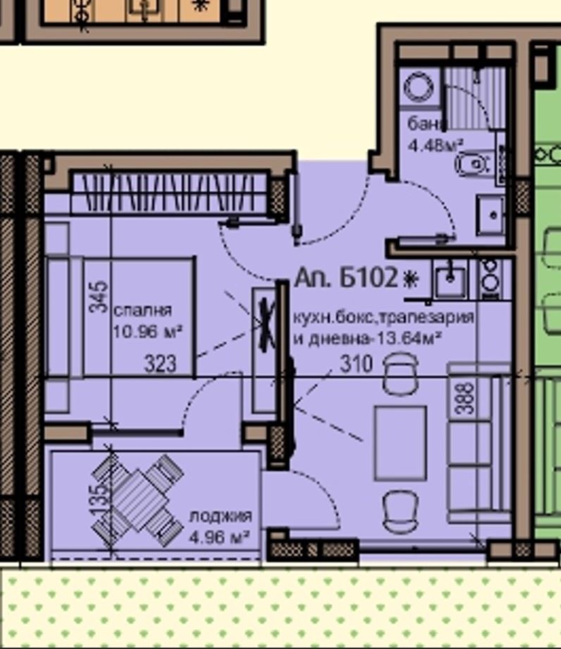 Within this modern complex, we offer a one-bedroom apartment with an area of 45.88 m², situated on the ground floor, which makes it a particularly convenient and practical choice. The property features a functional and well-thought-out layout, including an entrance hall, a bright living room with a kitchen area, a separate bedroom, a bathroom with toilet, and a loggia, which provides a connection to the outdoor space and contributes to a sense of comfort and coziness.