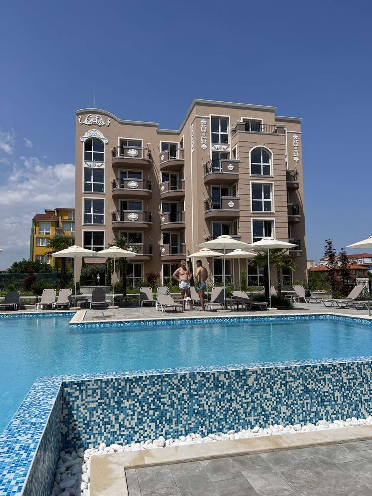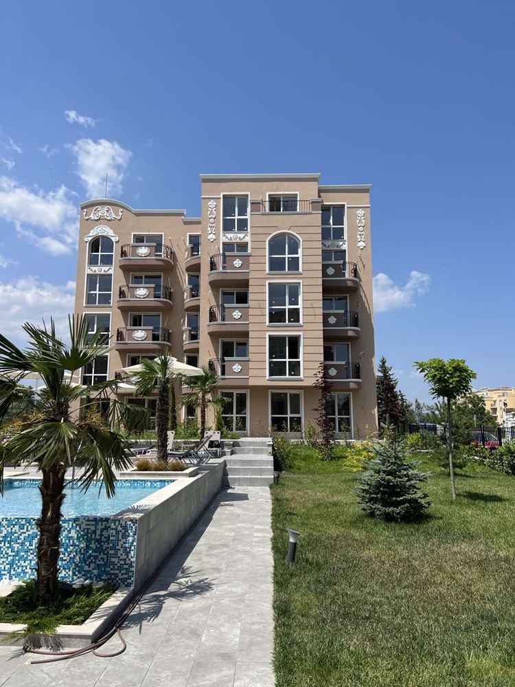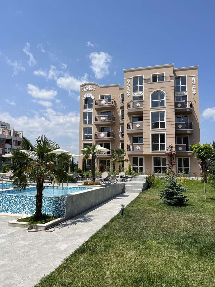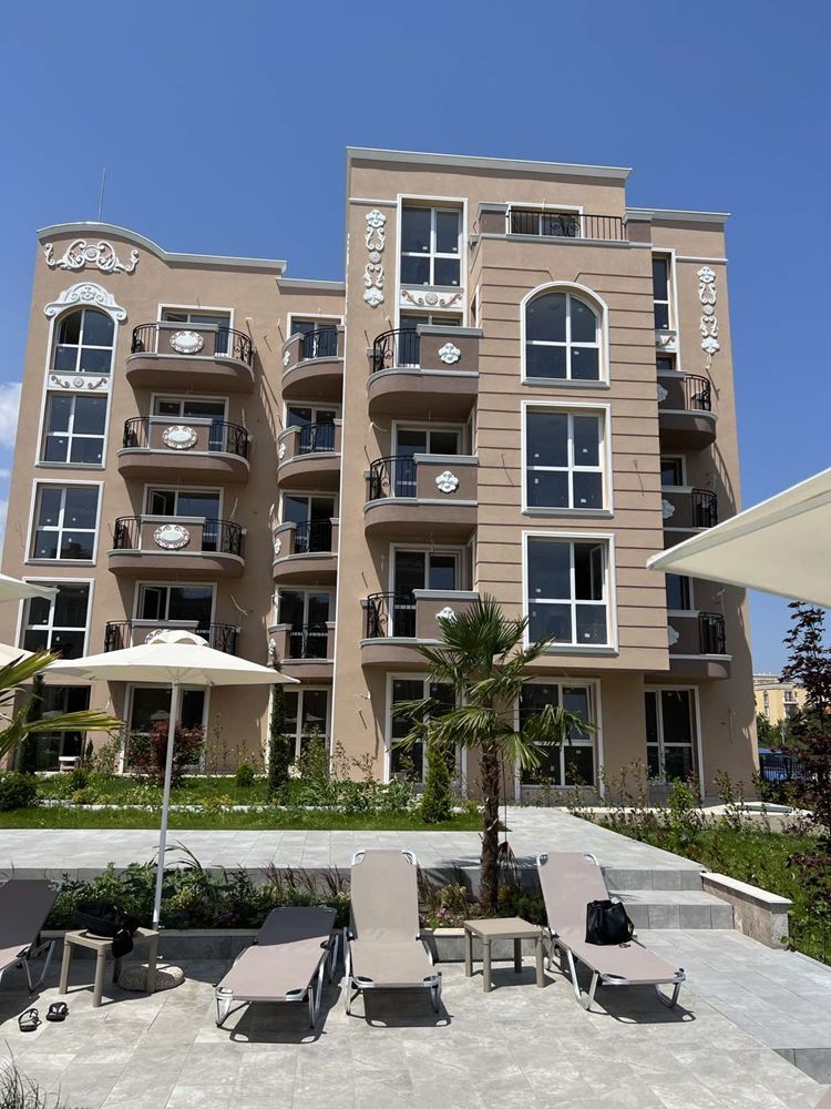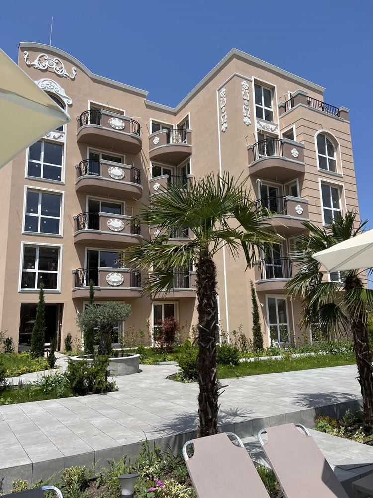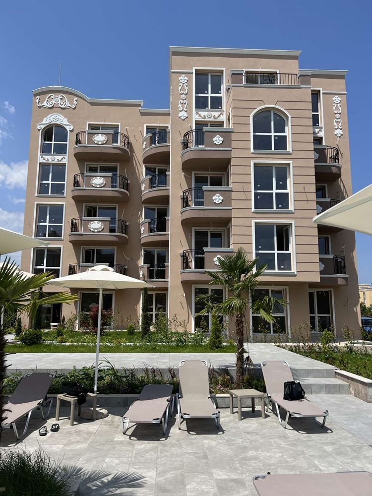 New one bedroom apartment with sea view in the newest luxury complex in the resort Ravda. The complex is built by a construction company with a brilliant reputation and is located five minutes walk from the sea and a wide beach. The apartment with an area of 51,64 m2 consists of a spacious hall with a kitchen part, a bedroom, a combined sanitary unit, and a terrace. Residents in this complex are safely protected from the noise and bustle of the center. The complex is located in a quiet street with new houses, and a large plot with a magnificent garden creates a sense of peace and isolation. The complex has a luxurious swimming pool with sun loungers, a playground, a gazebo and places for walking.