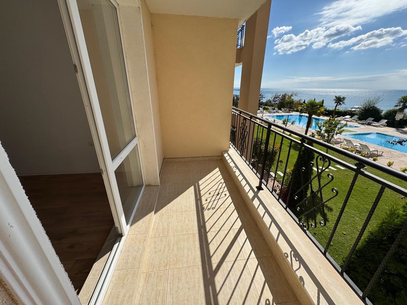 We present a wonderful first-line offer in Sveti Vlas – a new, unfurnished three-bedroom apartment with a total area of 88.20 m², located on the ground floor. The apartment offers peace, style, and everyday comfort in close proximity to the sea, with a beautiful view of the blue waters and the beach just meters from the property. The layout is functional: spacious living room with space for a kitchenette and dining area, two separate bedrooms, two bathrooms/WC, and two balconies. The two terraces provide pleasant outdoor space, and the sea view makes mornings and sunsets a true experience. The “unfurnished” condition gives you the freedom to design the interior entirely according to your taste and standards.
