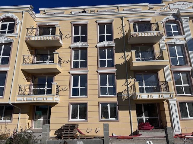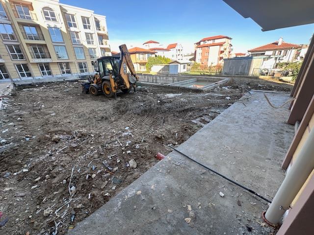 We present a brand-new two-bedroom apartment in a modern residential complex located just 300 meters from the sea and sandy beach, and the same distance from the center of Ravda. Nearby you will find year-round restaurants, supermarkets, and cafés. The complex is part of a well-established development chain and offers an impressive recreational area with a swimming pool, landscaped gardens, and walking alleys designed by a professional landscape architect. The entire territory is fenced and beautifully decorated with greenery, gazebos, and elegant streetlights.
