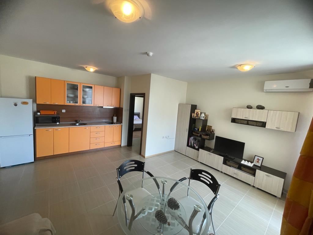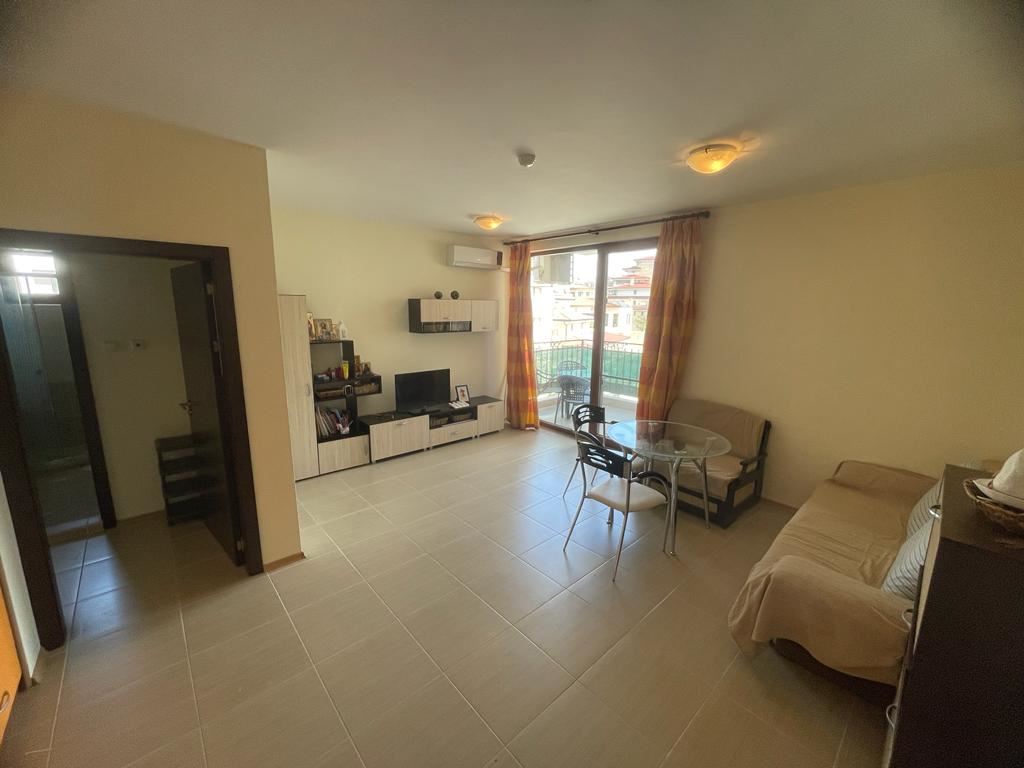 Attractive one bedroom apartment in a complex in the town of Nessebar is a very attractive offer for living or investment. The apartment is located on the fourth floor and has a view to the territory of the complex. The location of this apartment brings you closer to the sea and the beautiful Bulgarian coastline. The apartment has an area of 64 m2 and includes a spacious living room with kitchen and dining area, a corridor, one bedroom, a bathroom with shower cabin and a balcony. It is a functional space that can be used for both permanent living and renting. The apartment is sold with furniture and appliances, making it ready for living or renting at no extra cost. The complex offers extensive facilities including swimming pools with children's section, restaurants, cafes, minimarket, spa center, tennis courts, children's playground and free parking. These amenities will enrich your vacation during your stay or make the property more attractive to rent. The apartment is in perfect condition and frees you from the worry of renovation.
