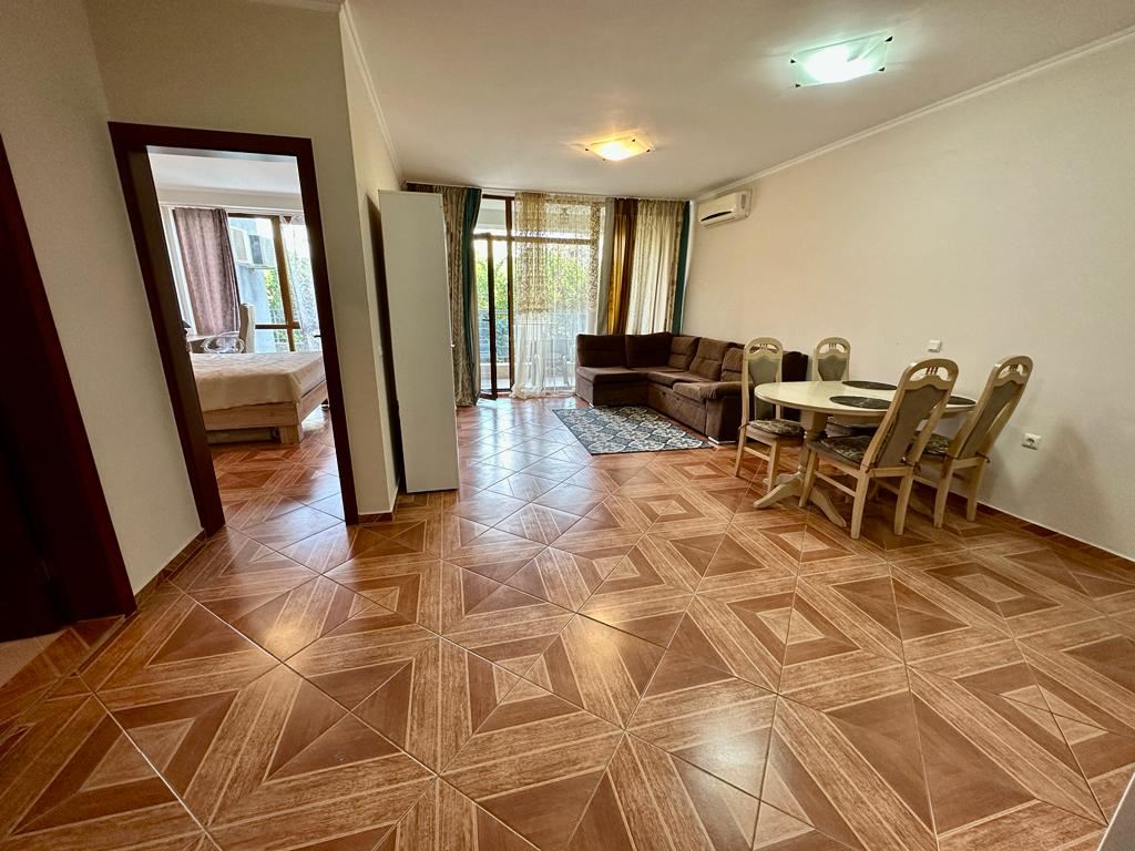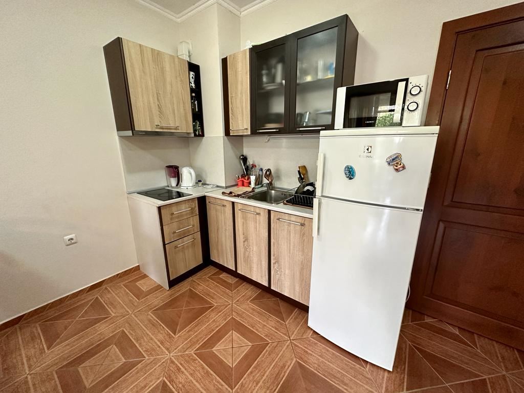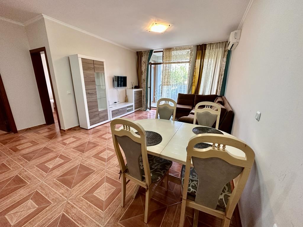 Offered is a one bedroom apartament in a modern complex by the sea, which stands out for its impressive architecture and high quality of construction. The flat is located in a complex by the sea, which allows you to enjoy the beautiful sea and mountain views. The flat is decorated with style and quality. All rooms are individually decorated, creating cosiness and comfort. The large windows are French style, providing good natural light and views. The balcony offers beautiful views, allowing you to enjoy the harmony of the mountain air and the sounds of the sea waves. The accommodation is sold furnished and equipped, making it ready to live in.