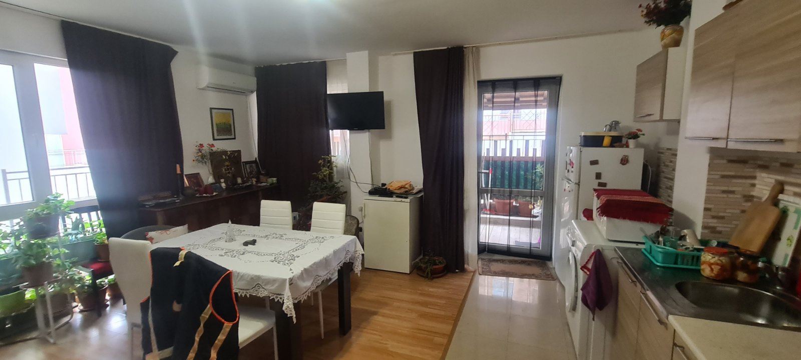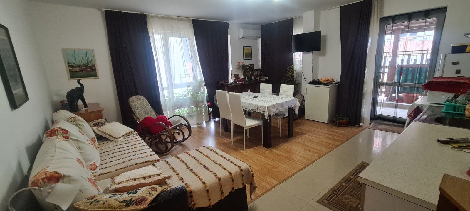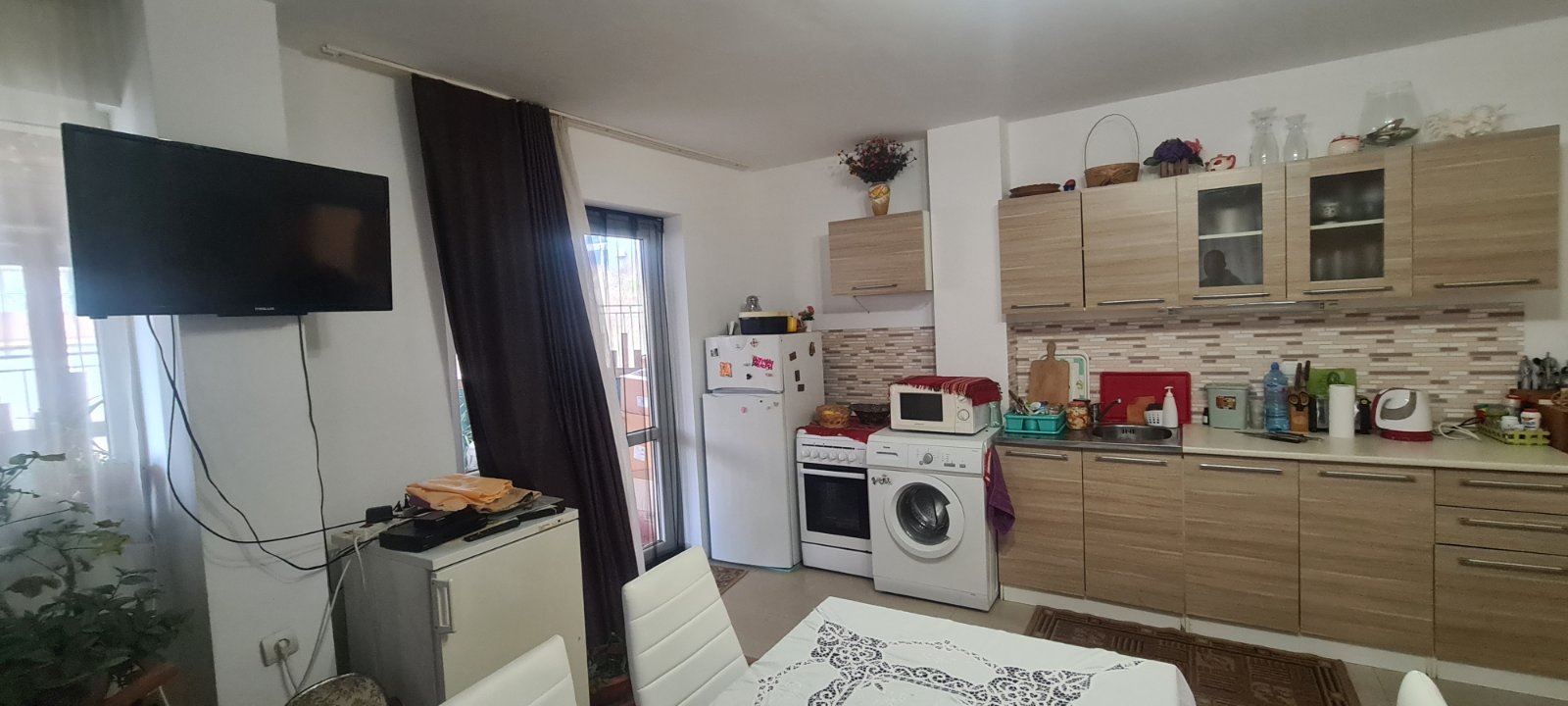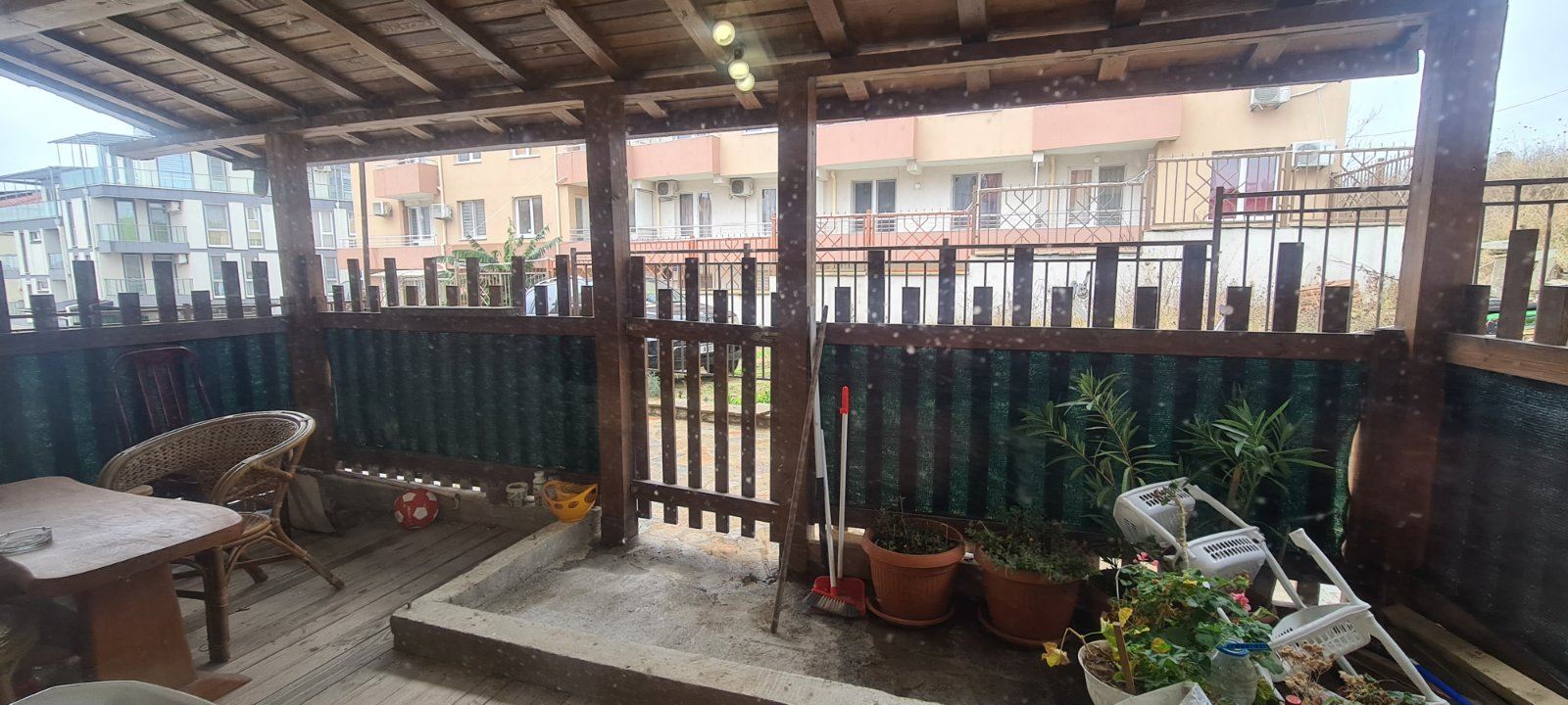 This one bedroom apartament in a residential building with no service tax is a comfortable and functional accommodation. Located on the ground floor, it provides easy access. The building is also equipped with a lift, which is convenient for residents. The apartament has two non-transitional rooms, providing a cosy division of space. From the living room there is direct access to the courtyard, where there is a spacious enclosed veranda of about 20 square metres. This veranda serves as a private courtyard for the apartament and can be continued in front of the bedroom, creating an additional space for outdoor relaxation. From the veranda there is access to the courtyard which also provides access to the street. The cul-de-sac provides a tranquil setting and has space for parking. An important element of the courtyard is the communal barbecue for use by all neighbours. The building is maintenance free which is an attractive factor. It is located in a new part of Sozopol with year-round access. The area is already equipped with necessary infrastructure including supermarkets, cafes, restaurants, shops, clubs, pharmacies and banks. The proximity to Harmani beach makes it ideal for lovers of seaside holidays. It is important to note that the neighbourhood is also attractive for tourists who prefer peace and quiet. New public buildings, a hospital, a library and a bus station add to the comfort of the neighbourhood.