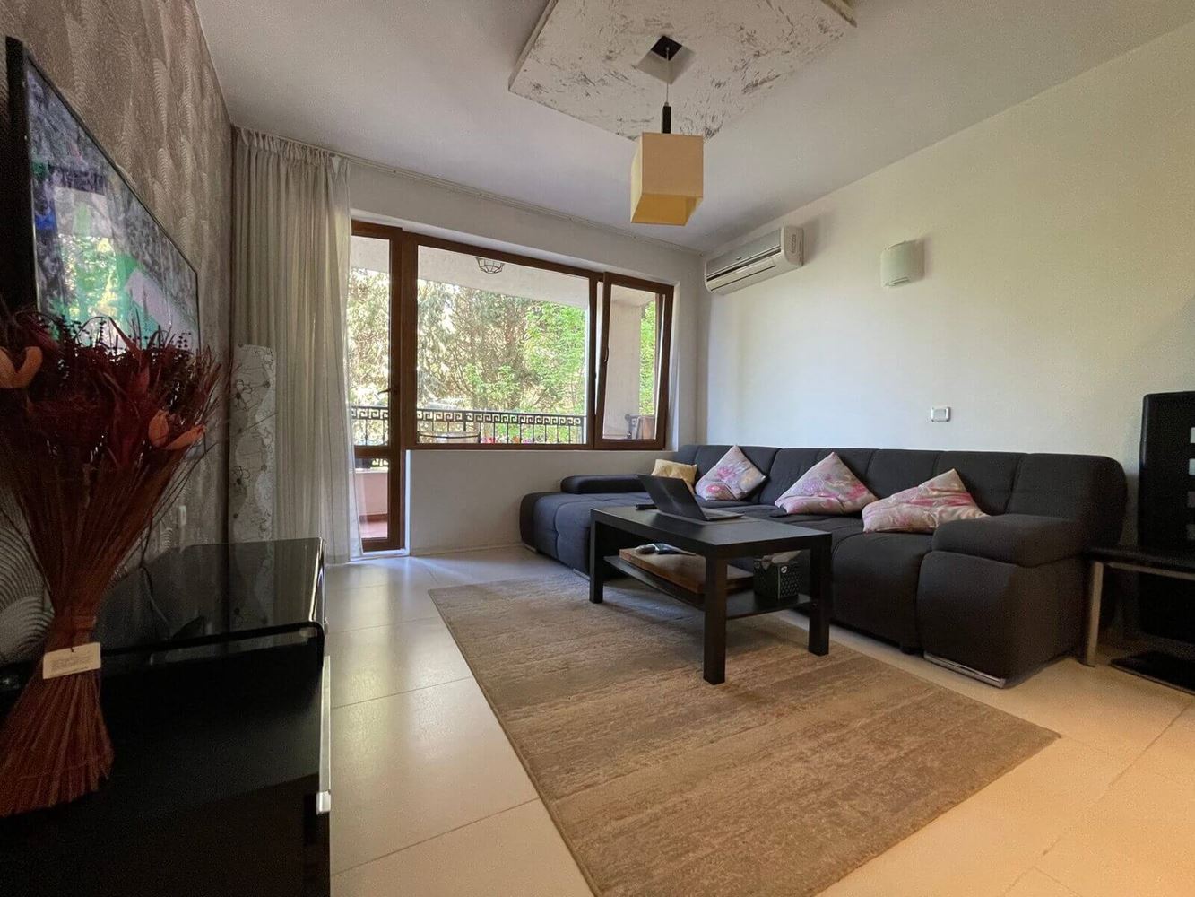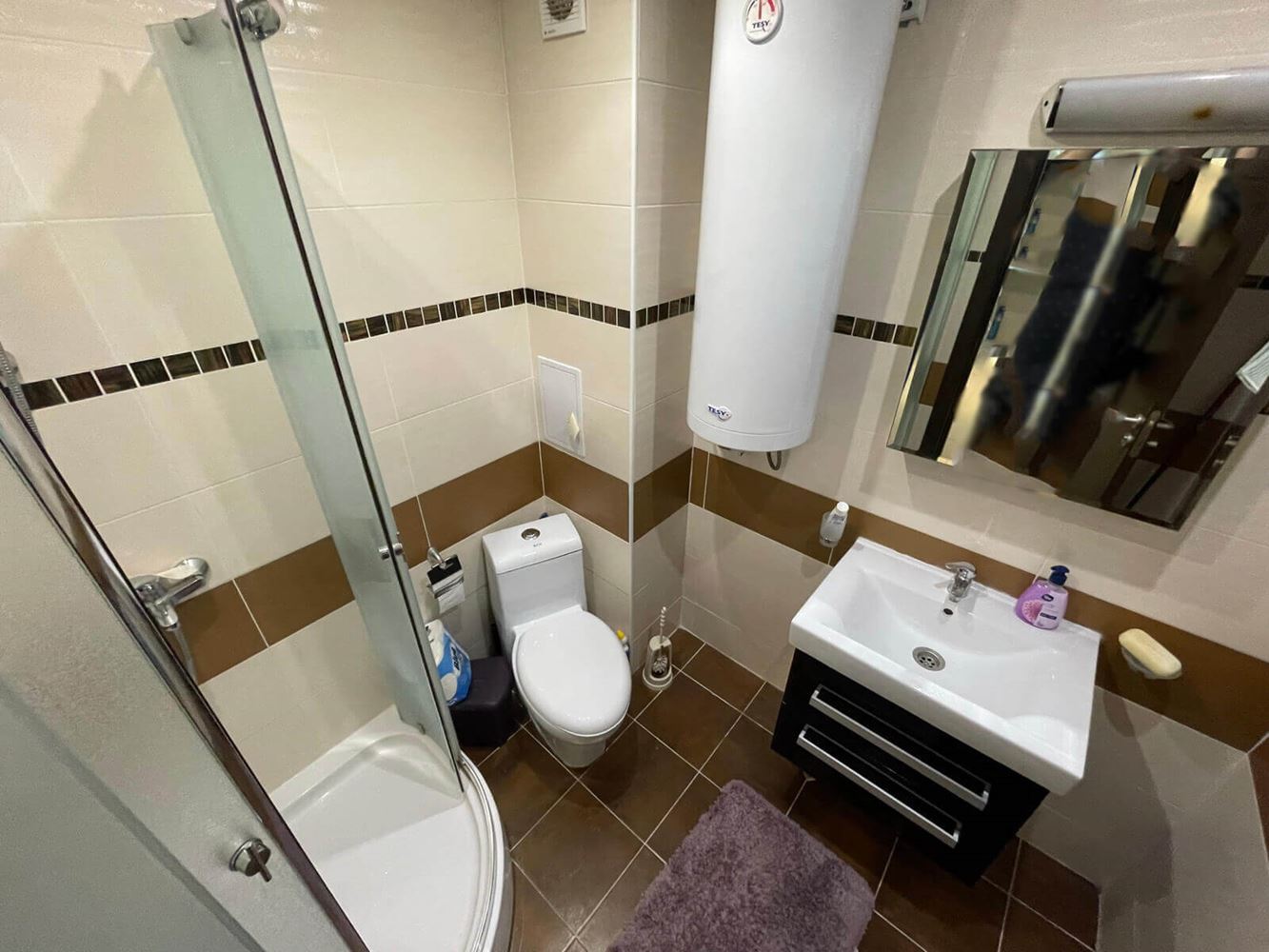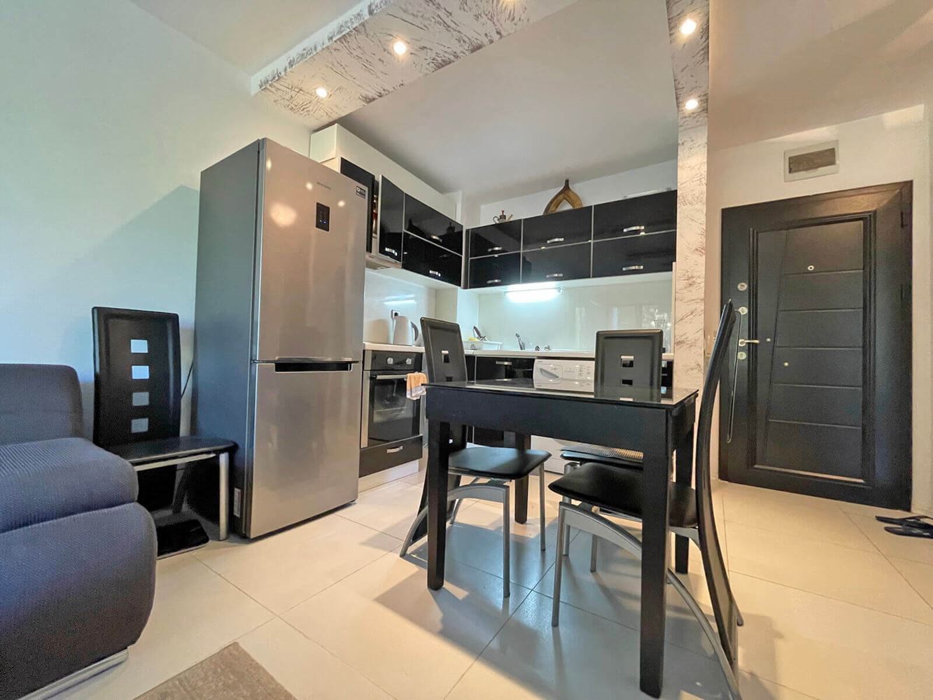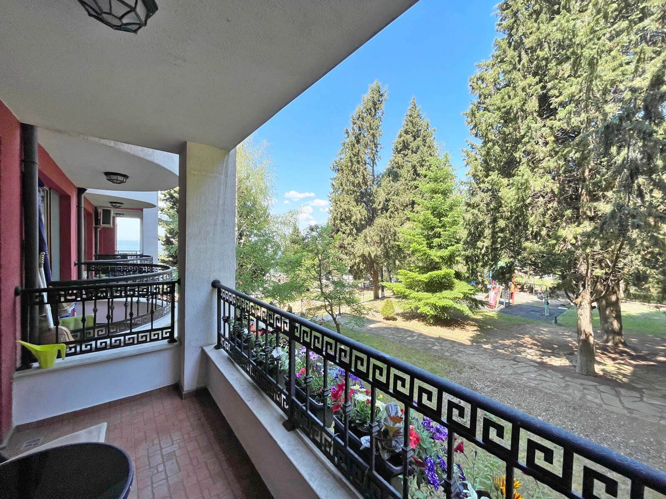 One bedroom apartment on the first line of the sea in the town of Nessebar. The 61 m2 flat is located on the third floor of a building with a lift. The flat consists of living room with kitchenette, bathroom with WC, bedroom, balcony overlooking the park and the sea. The distance to the sea is just 50 m and the beach is strewn with fine sand and the entrance to the sea is shallow. The complex offers such facilities as a swimming pool with comfortable sun loungers; security; children's playground; recreational areas; restaurant; cafe; year-round maintenance of the complex. The resort is famous for its rich sports facilities. In summer various competitions and classes of surfing, rowing, swimming are held here. There is all necessary infrastructure for comfortable rest and residence: supermarkets and all kinds of shops, building and furniture hypermarkets, drugstores, post offices and banks, restaurants, bars. Transport links are excellent.