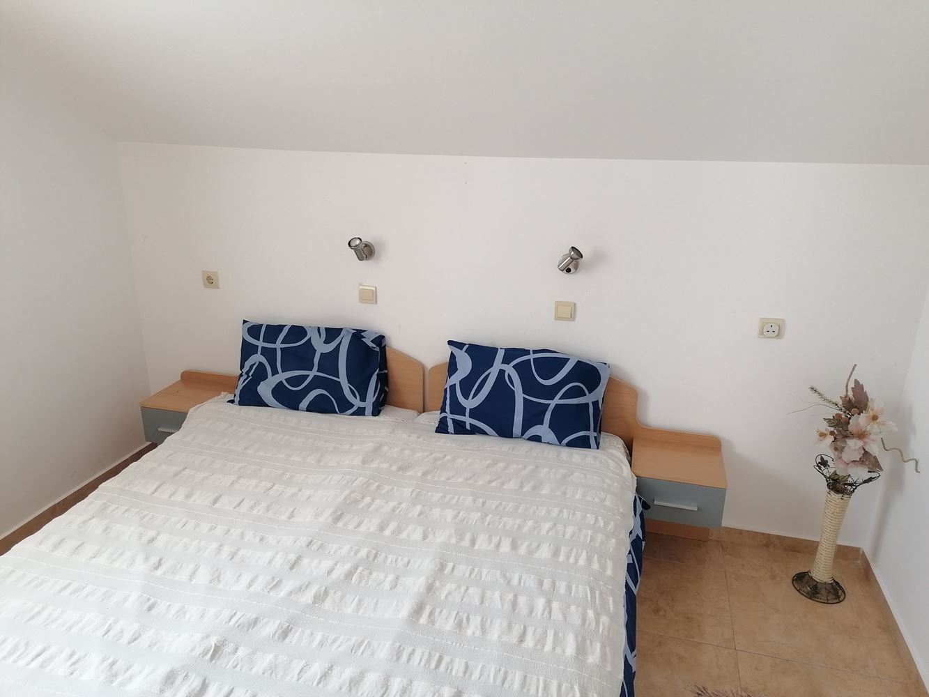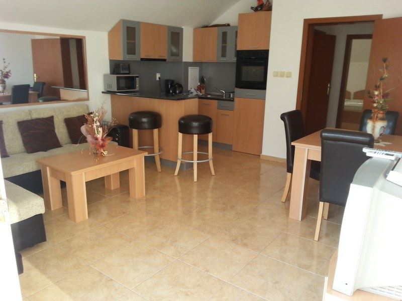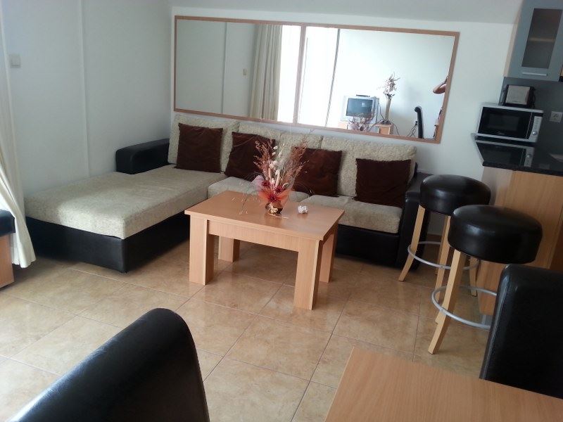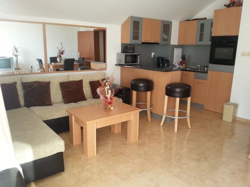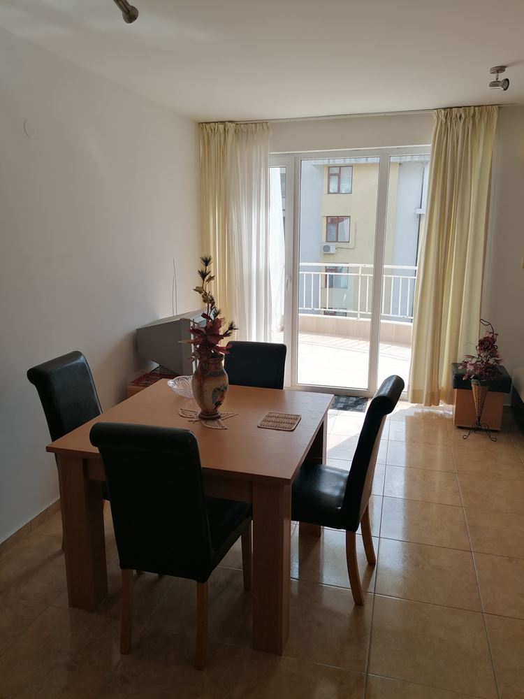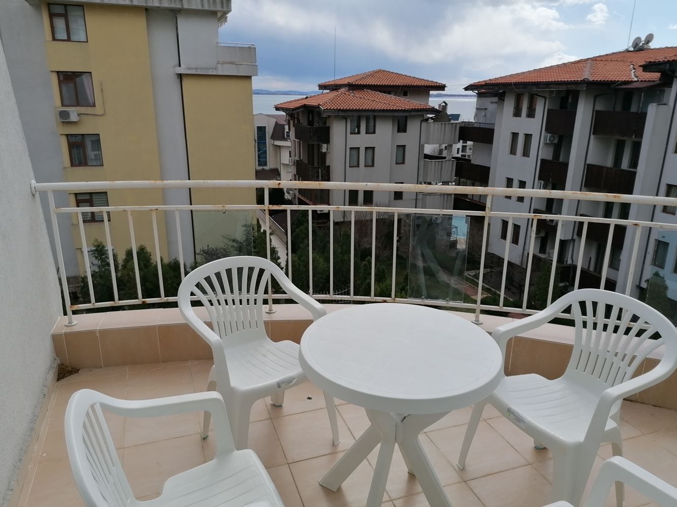 We offer for sale one-bedroom flat with sea view in a small apartment house in the resort Sveti Vlas. The offered flat with sea view has a total built-up area 59.25m2 and is located on the fourth floor of the building. The house is suitable for permanent living. The flat is delivering fully furnished and equipped. The flat layout is as follows - entrance hall, living room with kitchen area, bedroom, bathroom with shower unit, balcony with sea view. The house is located in the area of Sveti Vlas, where all amenities are available all year round. The beach can be reached on foot in three to five minutes.
