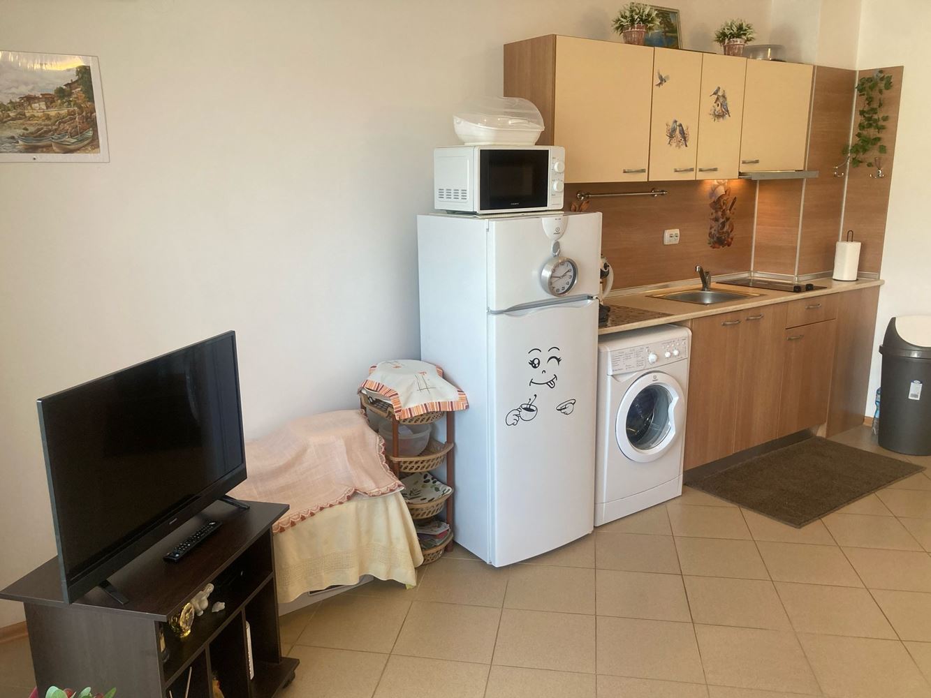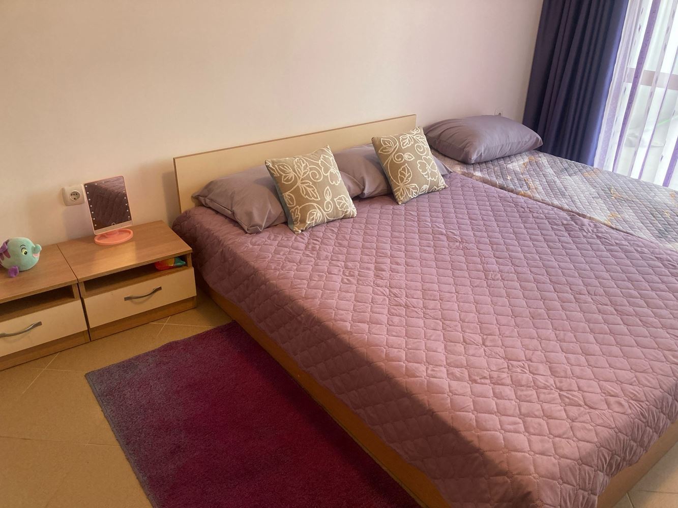 One bedroom apartment in a complex in the area of Sunny Beach offers unique advantages for comfortable living and rest. The apartment has an area of 67 sq. m and is located on the ground floor. This guarantees easy access to the pool and territory of the complex, as well as a feeling of space and coziness. The apartment consists of entrance hall, living room with kitchenette, bedroom, bathroom and terrace. The complex is located at the foot of the mountain and close to the beaches of Sunny Beach. The place is characterized by picturesque green slopes and wonderful sea views, making it ideal for rest and relaxation. The complex has a restaurant, swimming pool, landscaped area, playground, reception, parking, barbecue area, as well as year-round security and video surveillance. All this creates a comfortable environment for living and relaxation. This apartment provides an excellent opportunity to enjoy the beautiful views and amenities of Sunny Beach living. Maintenance fee - 9 euro per m2.