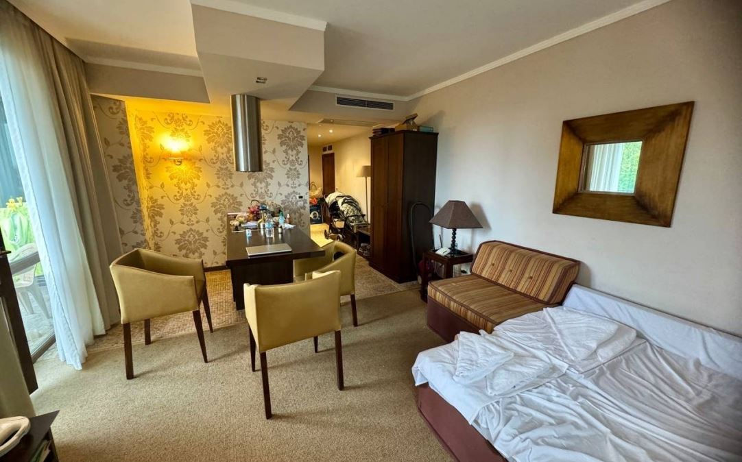 The property is located in a five-star luxury aparthotel, impressive with its scale and well-maintained 9,000 m² territory. The complex offers an exceptional variety of amenitiesthree outdoor and one indoor pool, spa center, fitness room, restaurants and bars, as well as children’s playgrounds and entertainment areas. For added comfort and security, the complex provides a conference hall, underground parking, and 24-hour security.