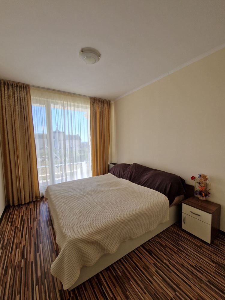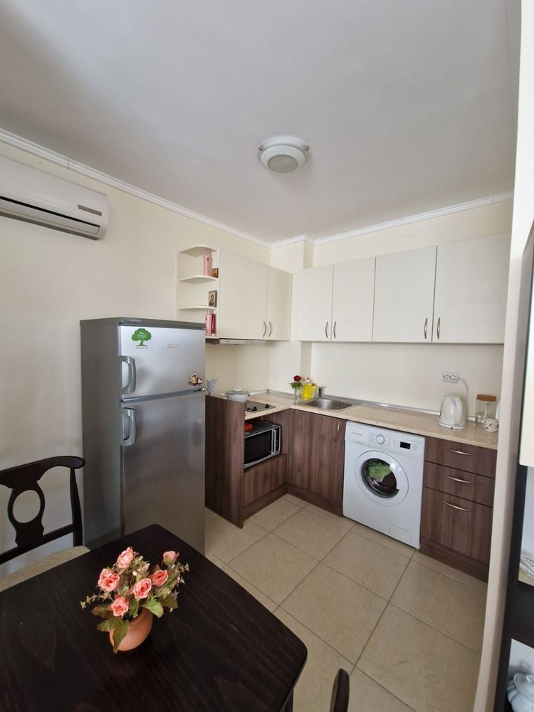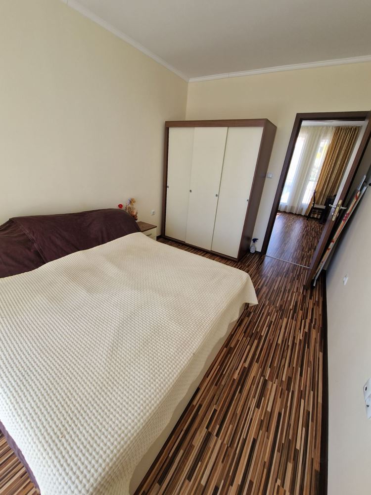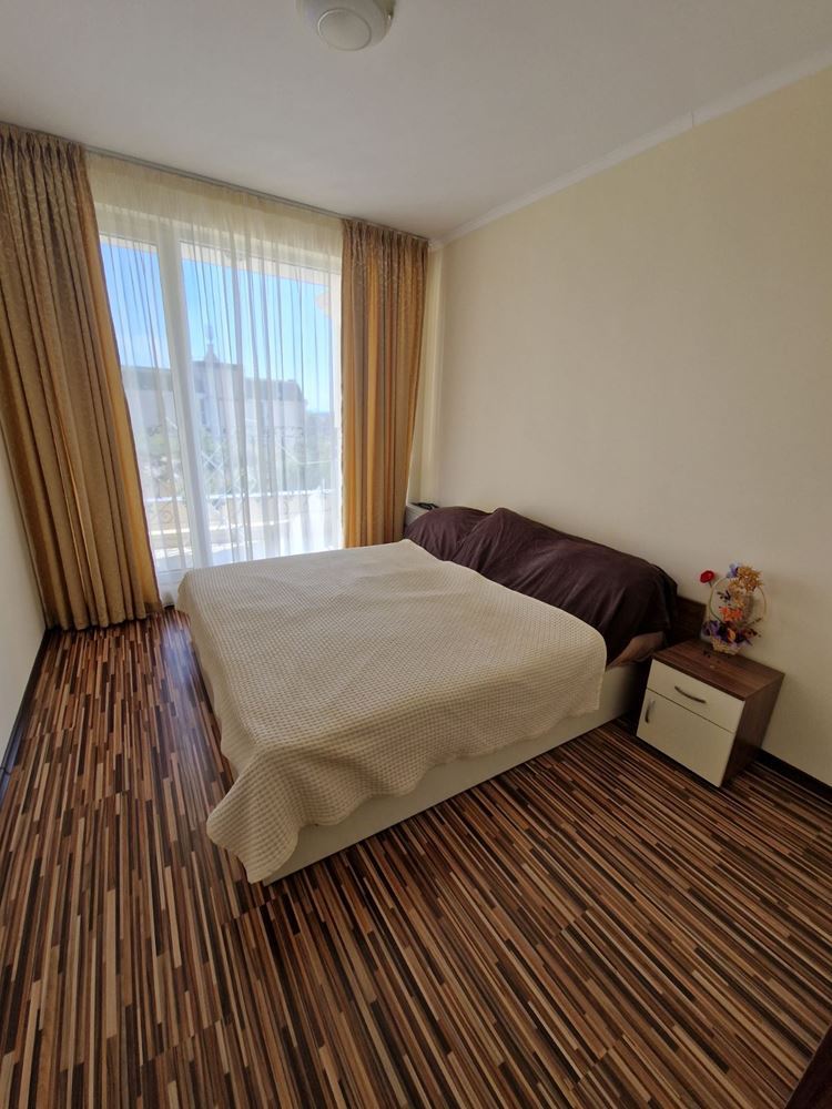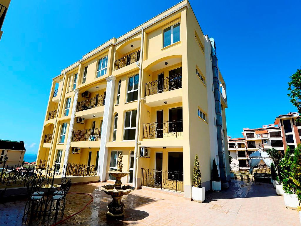 One bedroom apartment in a magnificent residential complex with all amenities, which is located in a quiet picturesque location in the resort town of Sveti Vlas, 500 meters from the sea and sandy beach and 1.5 km from the yacht harbor. It consists of two five-storey buildings of modern architecture with elevators. The roof of the building is exploited, with a cafe and solarium. In walking distance from the complex is located all the necessary urban infrastructure: stores, restaurants, green areas, kindergarten, playgrounds, a beautiful promenade and other amenities. The apartment, which is offered for sale, has an area of 60 m2, located on the second floor. Fully furnished and equipped, ready to move in.