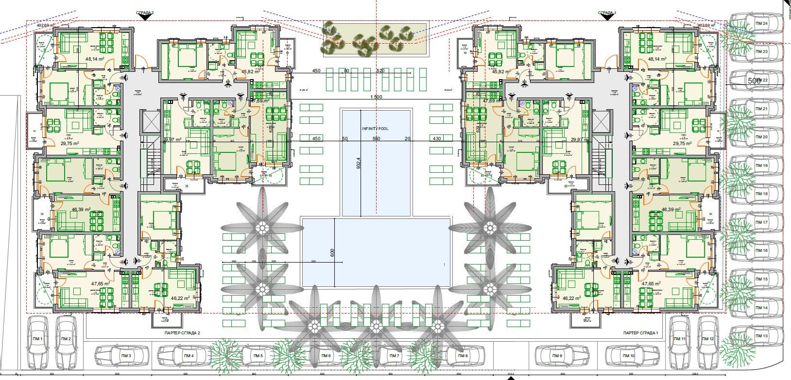 A modern four-storey residential building with elevator, designed for maximum comfort. The complex offers a swimming pool as well as underground and above-ground parking. Its proximity to the sea and the quiet location make the property suitable both for personal use and for investment with high rental potential.