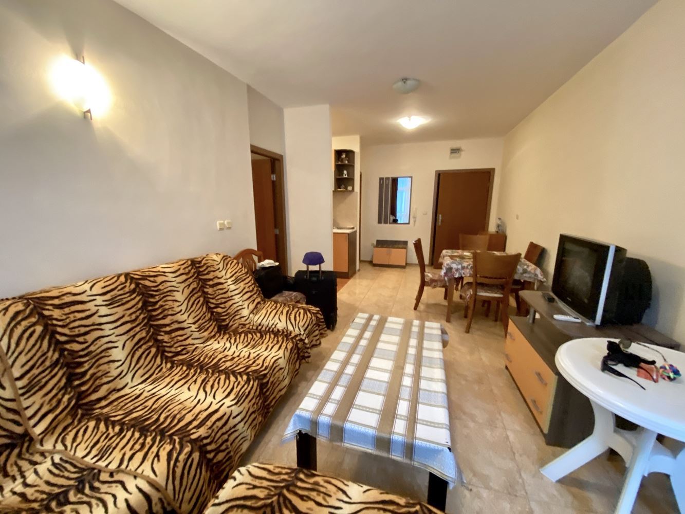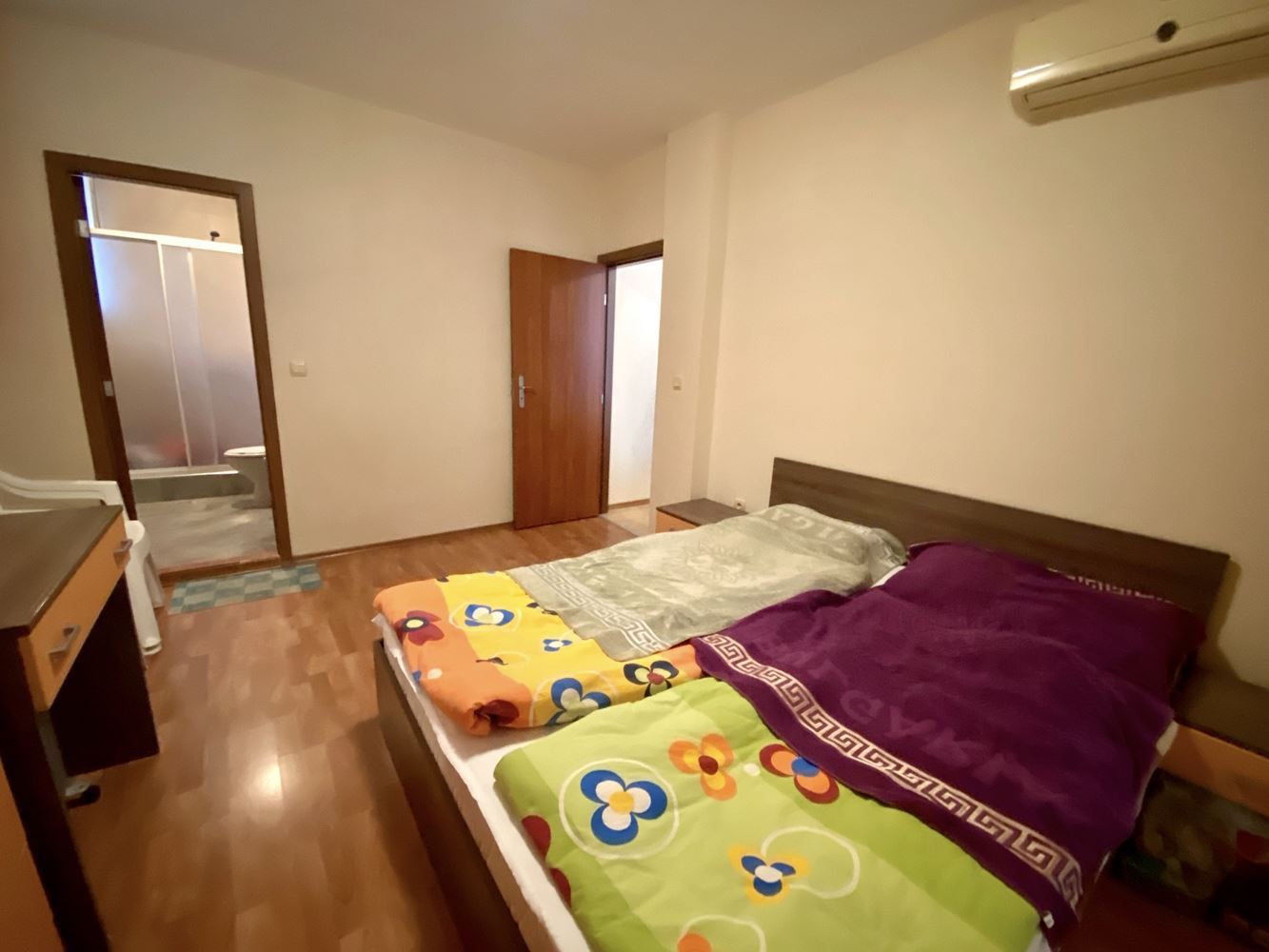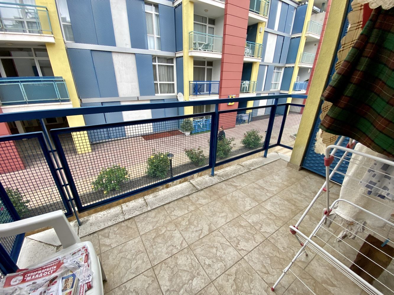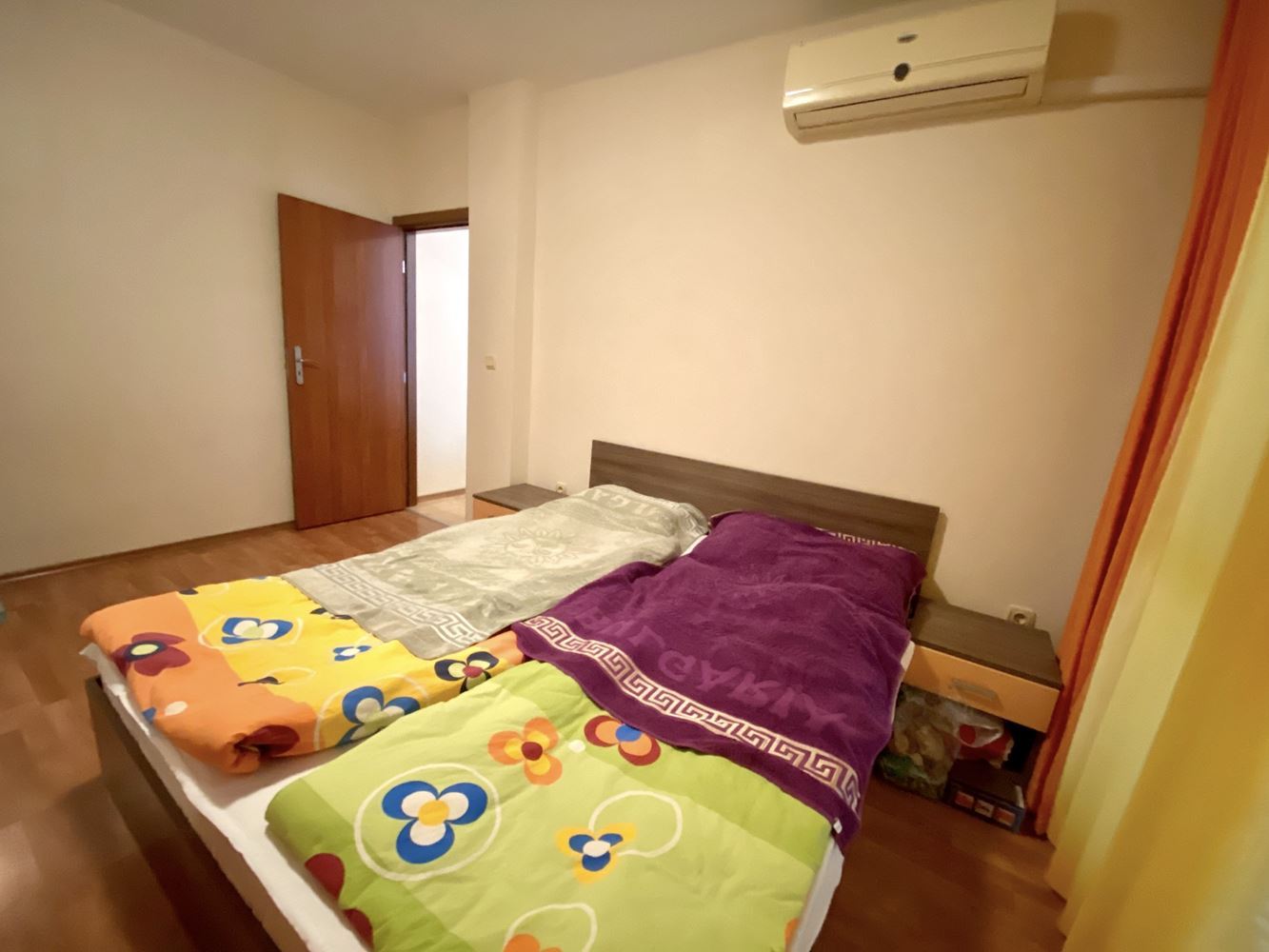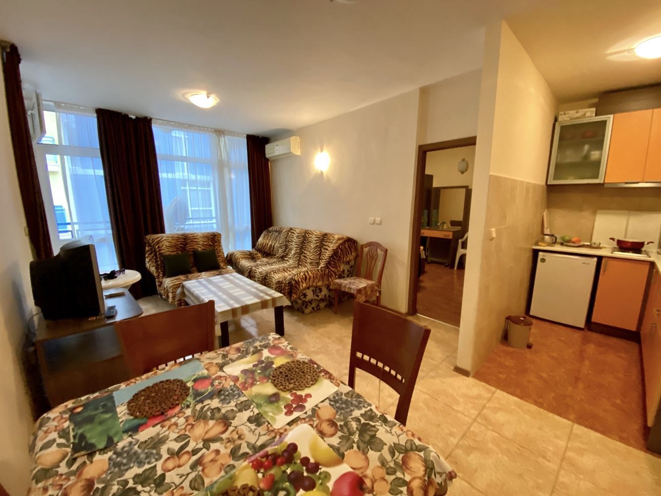 We offer one-bedroom flat in a closed-type complex located 400 m from the beach in Sunny Beach. The location of the complex is very good as it is a short walk to the famous Cacao Beach and also just a couple of kilometres from the town of Nessebar - an ancient museum city, a UNESCO World Heritage Site. Due to this proximity tourists often choose these flats for rent. The flat with total space of 67 m2 is located on the first floor. It consists of a living room with kitchenette, sleeping area, bathroom with shower unit and WC, separate WC and a balcony. The flat is sold fully furnished and equipped. The complex has a large swimming pool, children's playground, fitness room, restaurant, pool bar, year round security, underground parking.