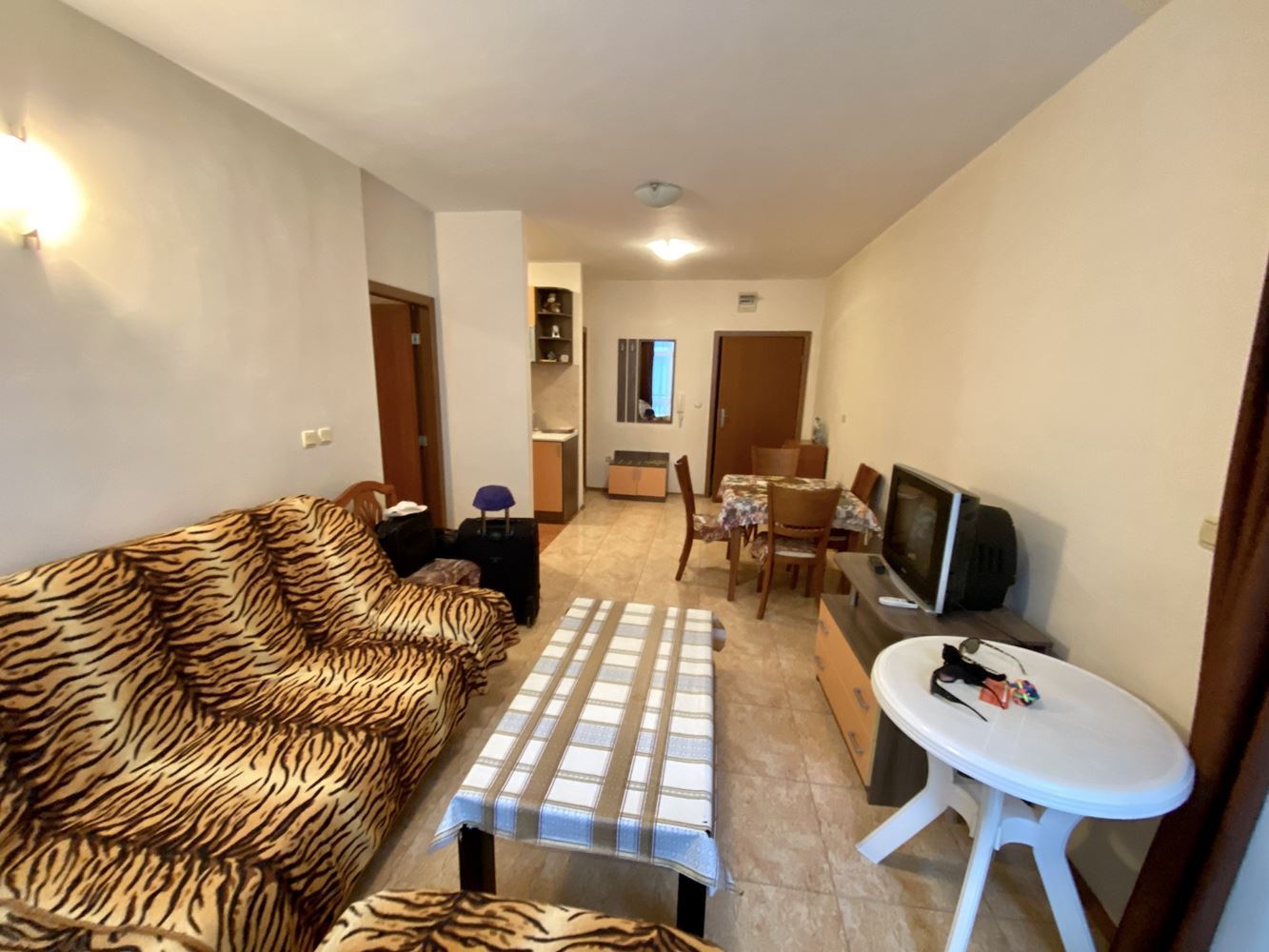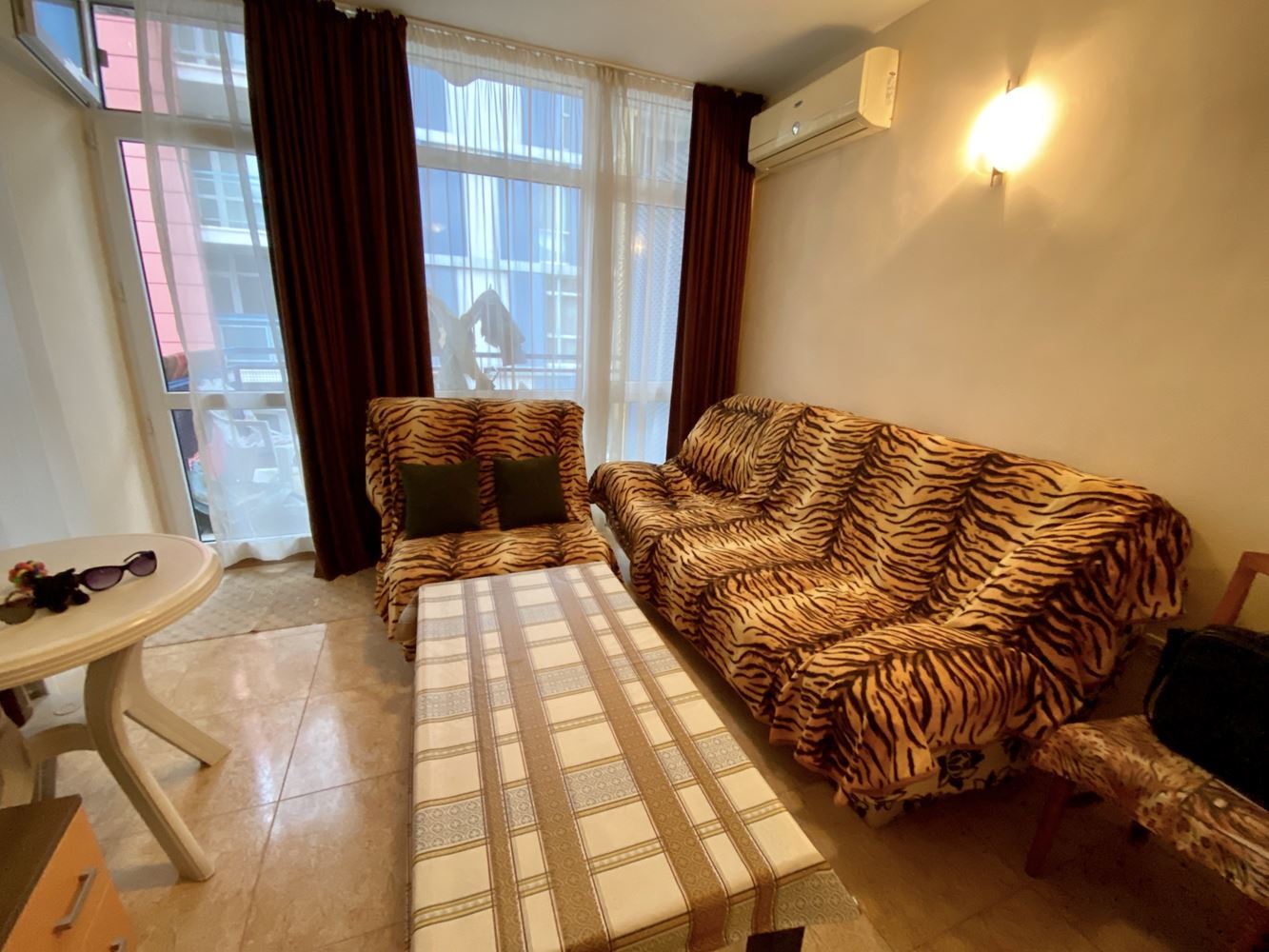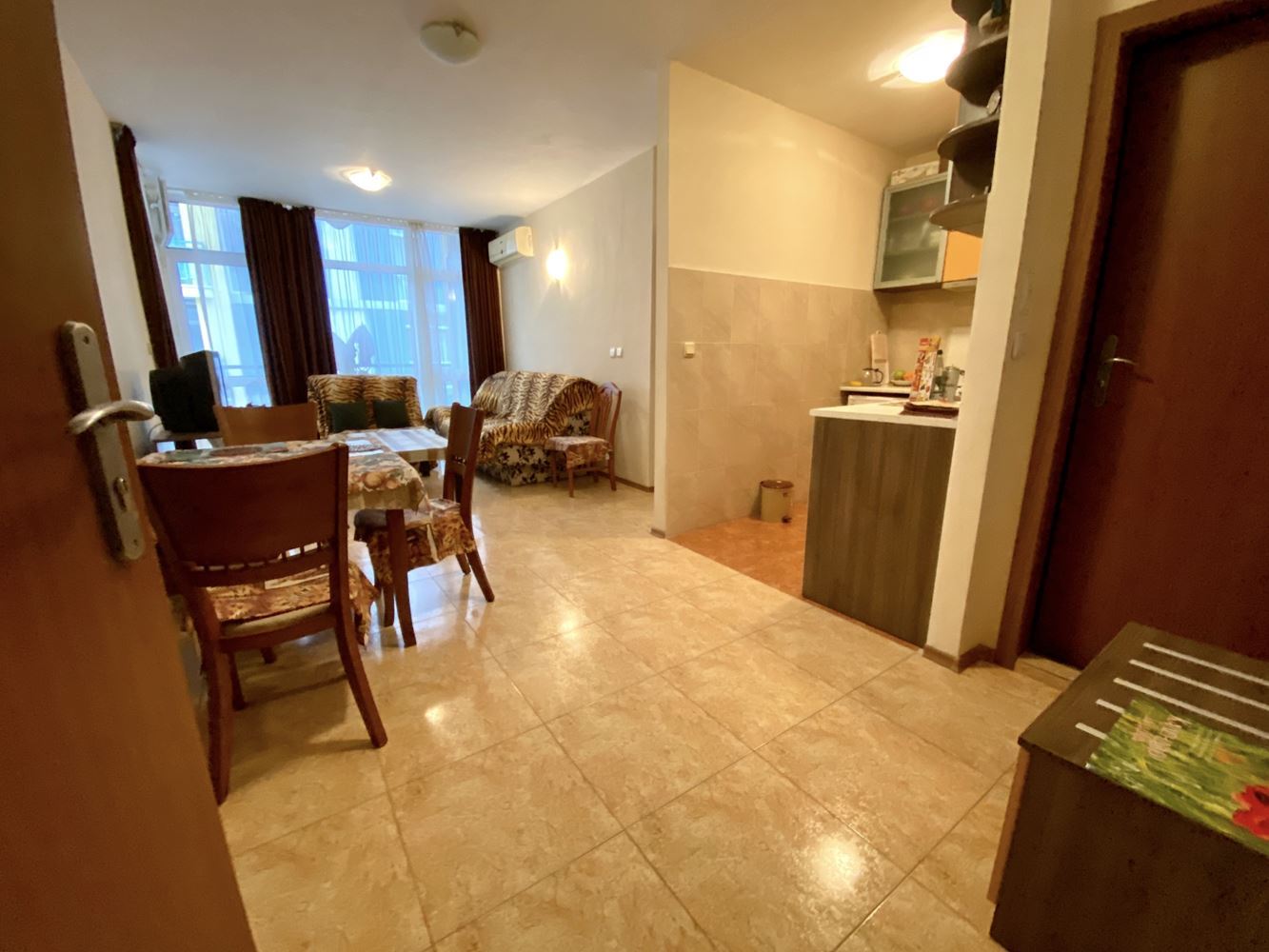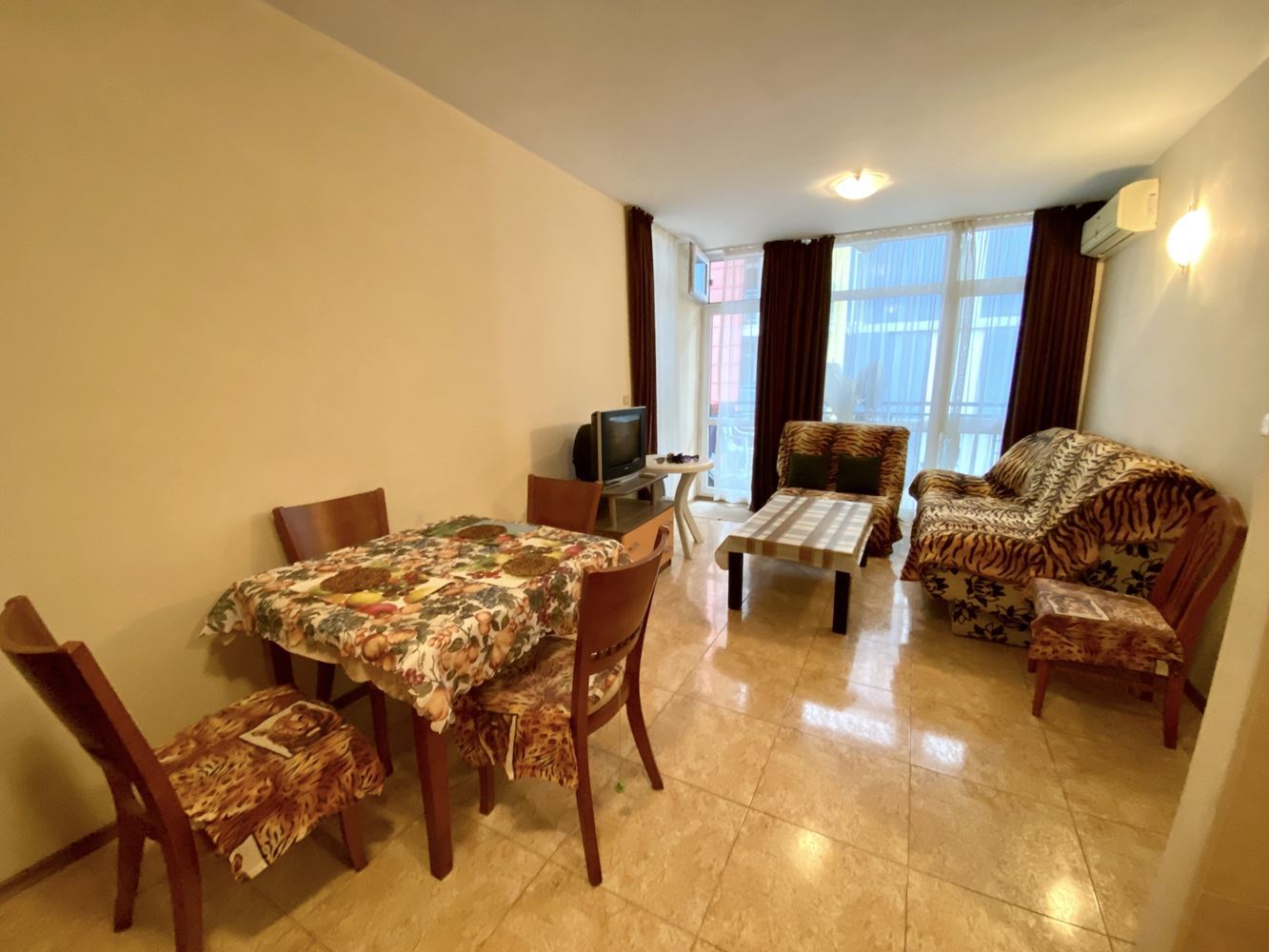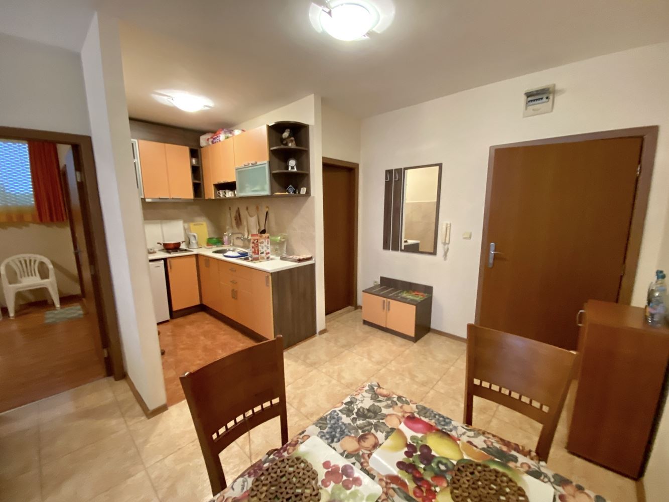 We offer one-bedroom flat in a closed-type complex located 400 m from the beach in Sunny Beach. The location of the complex is very good as it is a short walk to the famous Cacao Beach and also just a couple of kilometres from the town of Nessebar - an ancient museum city, a UNESCO World Heritage Site. Due to this proximity tourists often choose these flats for rent. The flat with total space of 67 m2 is located on the first floor. It consists of a living room with kitchenette, sleeping area, bathroom with shower unit and WC, separate WC and a balcony. The flat is sold fully furnished and equipped. The complex has a large swimming pool, children's playground, fitness room, restaurant, pool bar, year round security, underground parking.