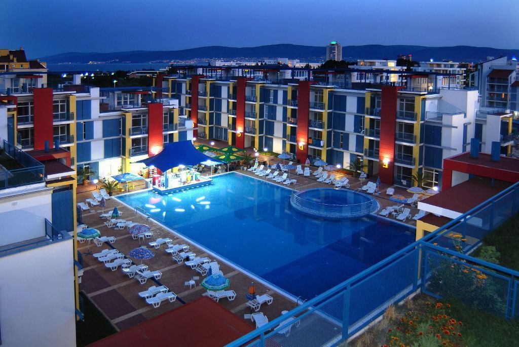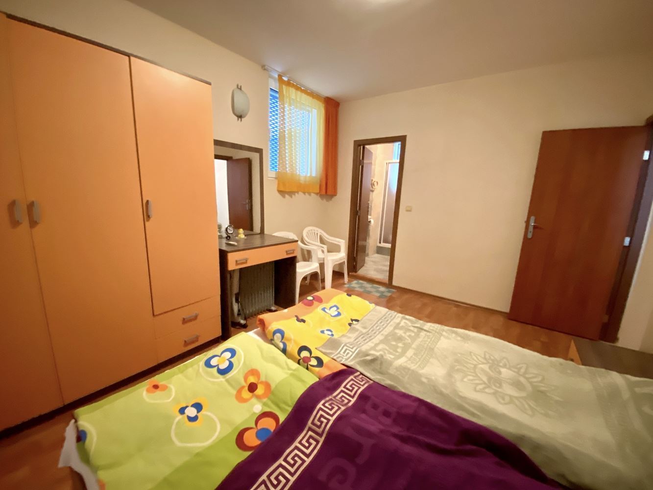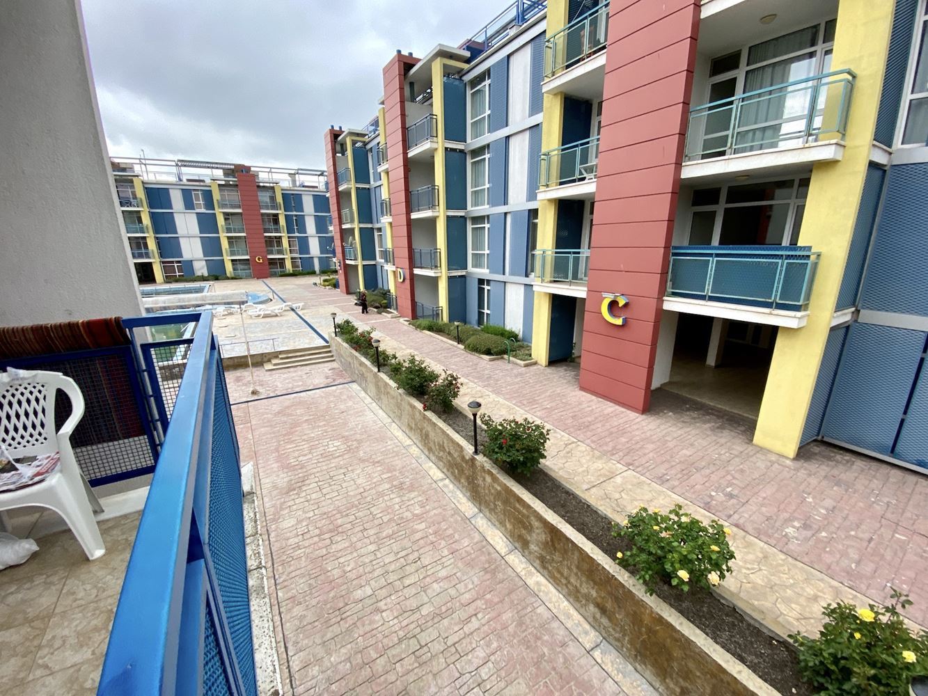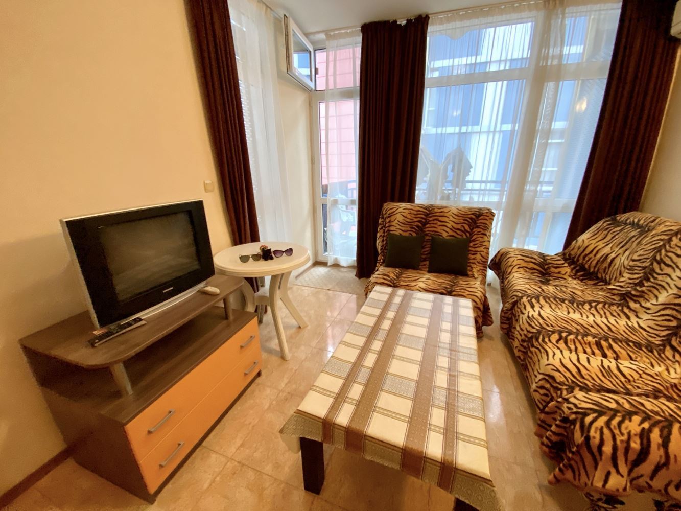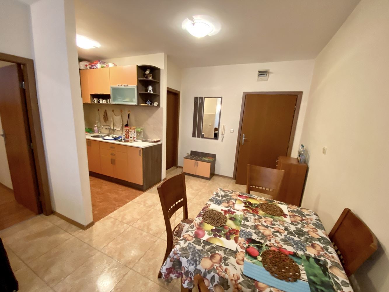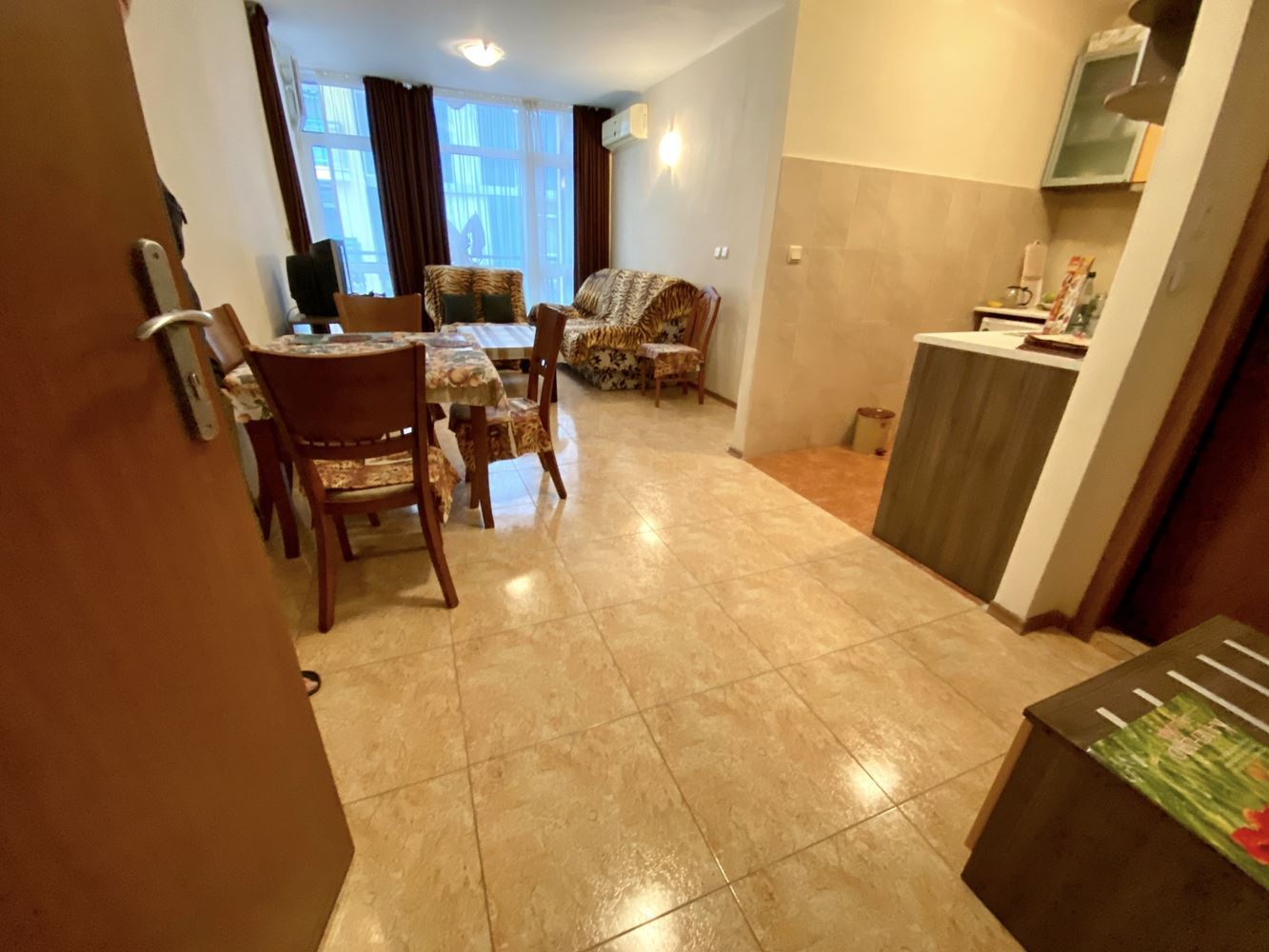 We offer one-bedroom flat in a closed-type complex located 400 m from the beach in Sunny Beach. The location of the complex is very good as it is a short walk to the famous Cacao Beach and also just a couple of kilometres from the town of Nessebar - an ancient museum city, a UNESCO World Heritage Site. Due to this proximity tourists often choose these flats for rent. The flat with total space of 67 m2 is located on the first floor. It consists of a living room with kitchenette, sleeping area, bathroom with shower unit and WC, separate WC and a balcony. The flat is sold fully furnished and equipped. The complex has a large swimming pool, children's playground, fitness room, restaurant, pool bar, year round security, underground parking.