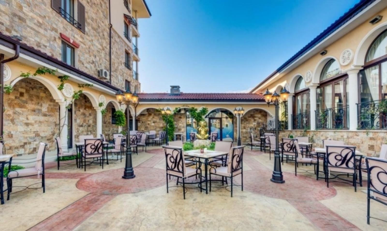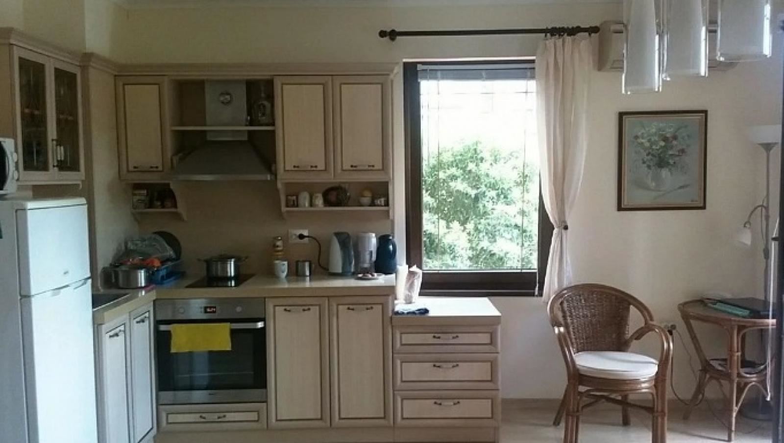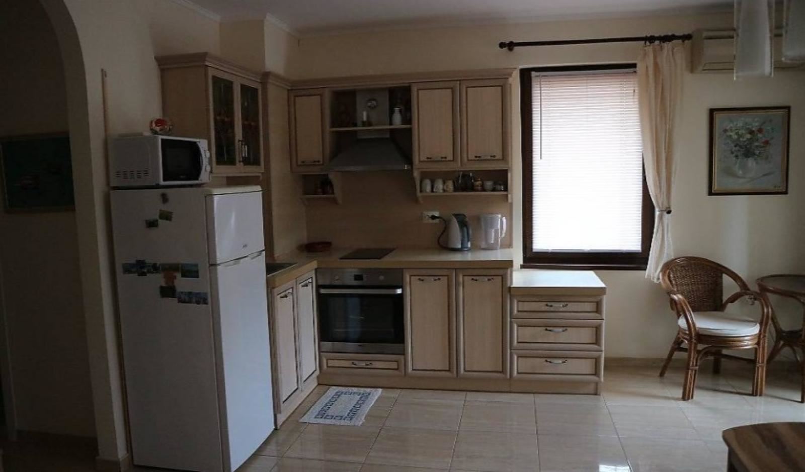 One bedroom apartment in an elite complex in the resort town of Nessebar, Aurelia quarter. The elite residential complex can be considered a benchmark of modern construction and architecture. The complex is immersed in greenery and has a convenient infrastructure. In the use of residents modern SPA center, gym, three swimming pools - including salt water and heated, barbecue area, tennis court and sports fields, restaurant with summer veranda, underground and outdoor parking, reception, security, video surveillance and more. The unique apartment is located on the second floor of the building and consists of a corridor, a living room with a kitchen, a sanitary unit, a bedroom and two terraces. The apartment is equipped with all necessary appliances and furniture - come and live! Everything is in excellent condition.