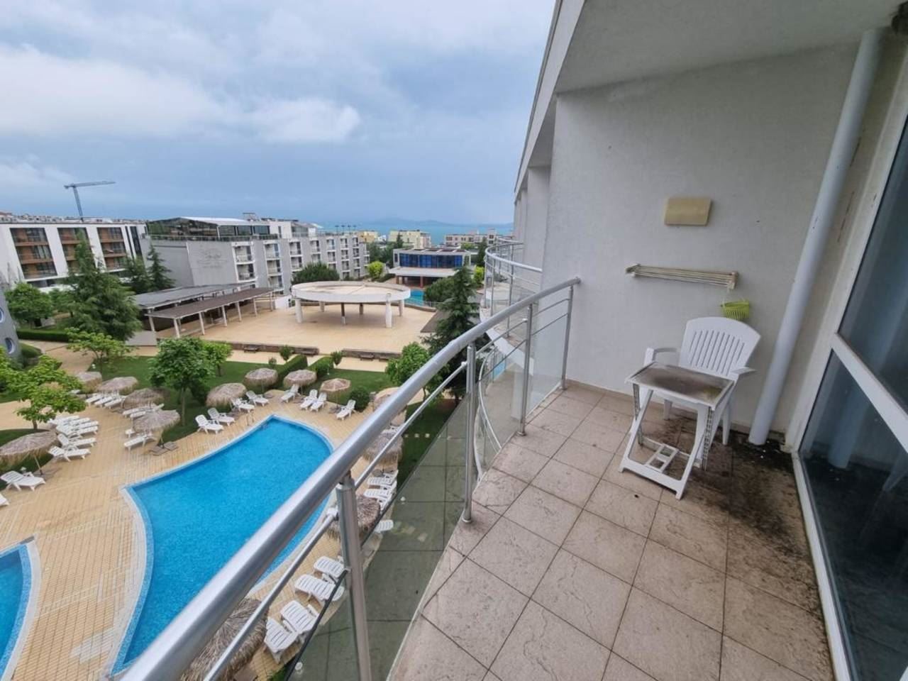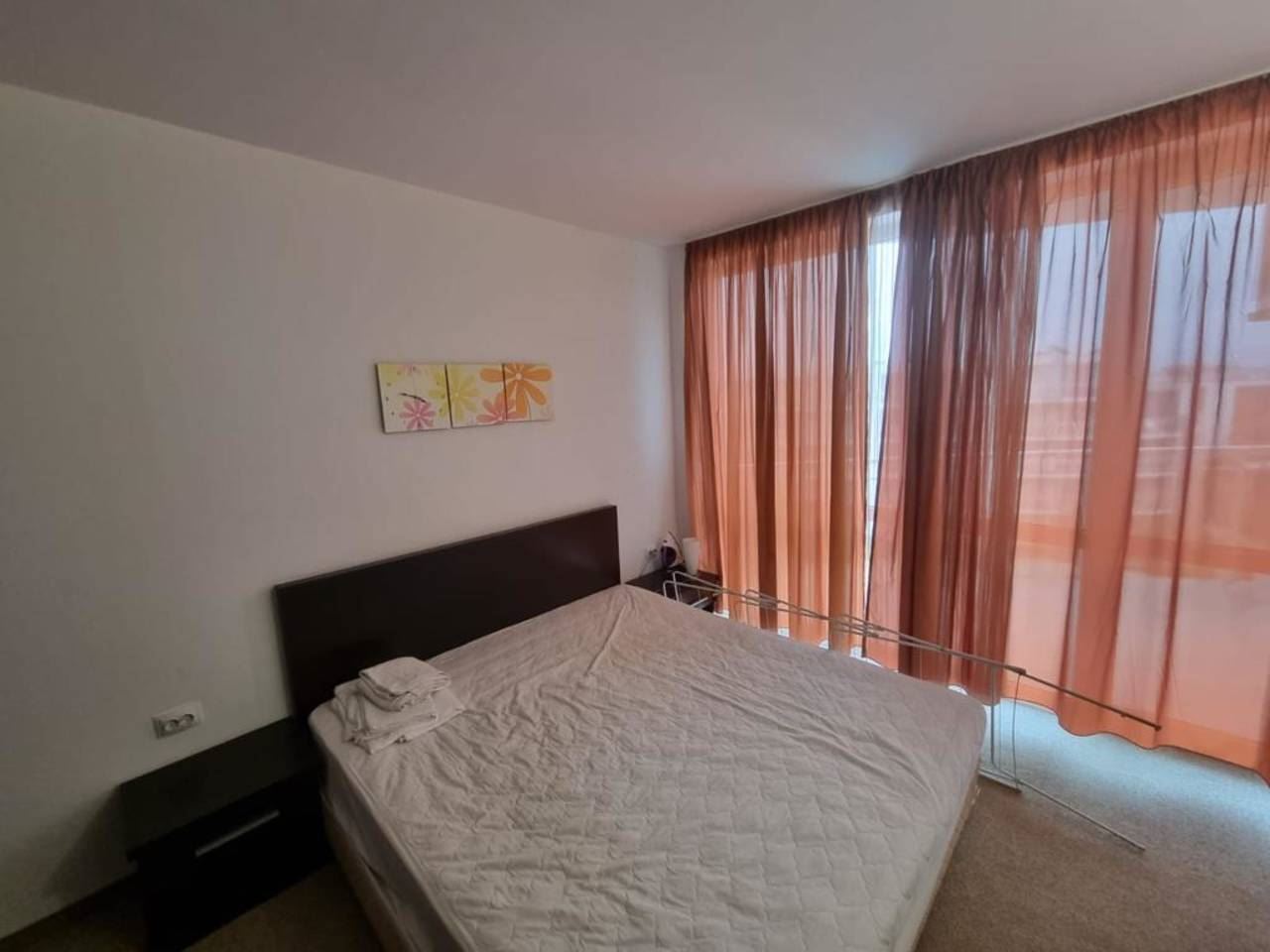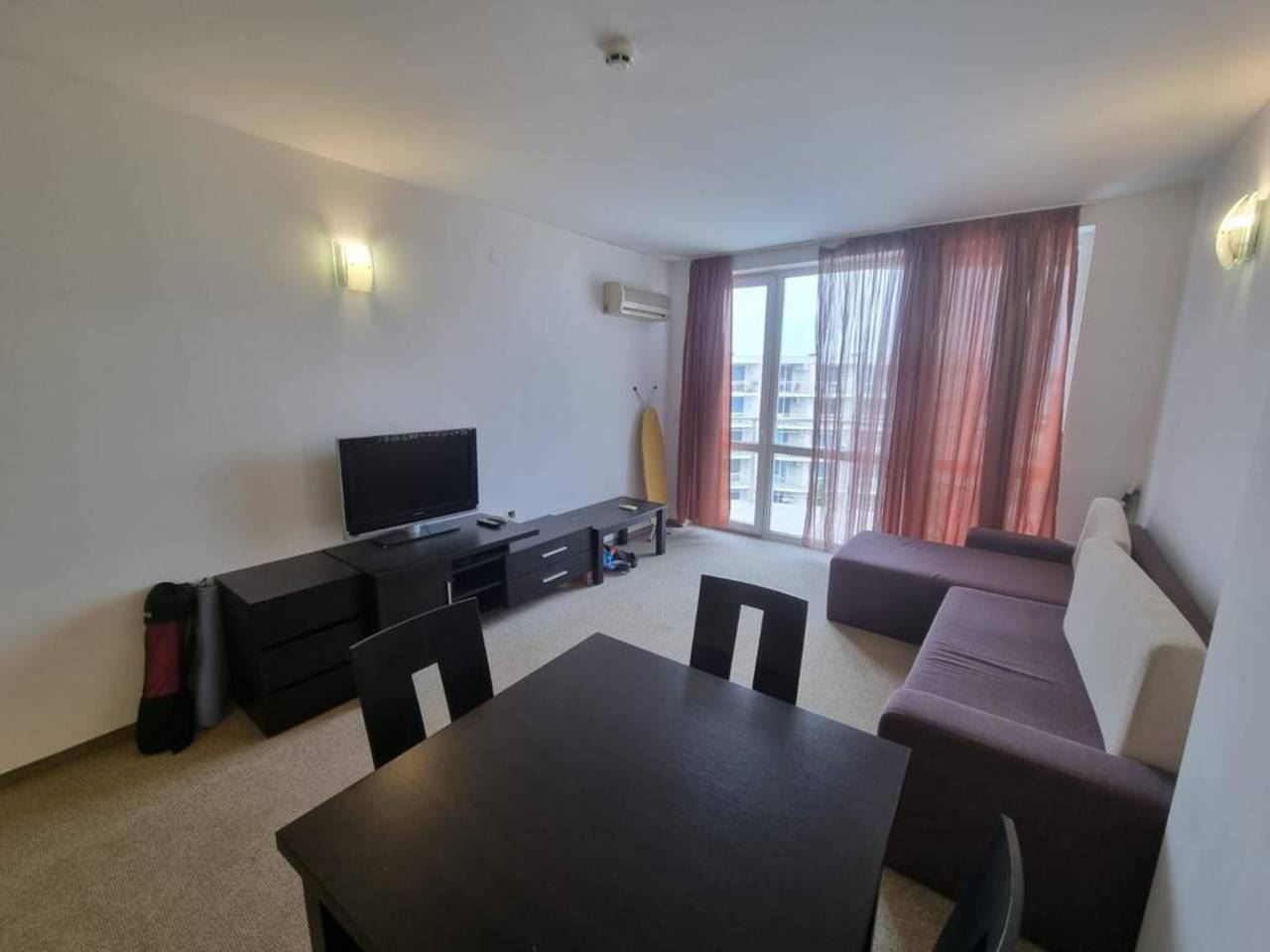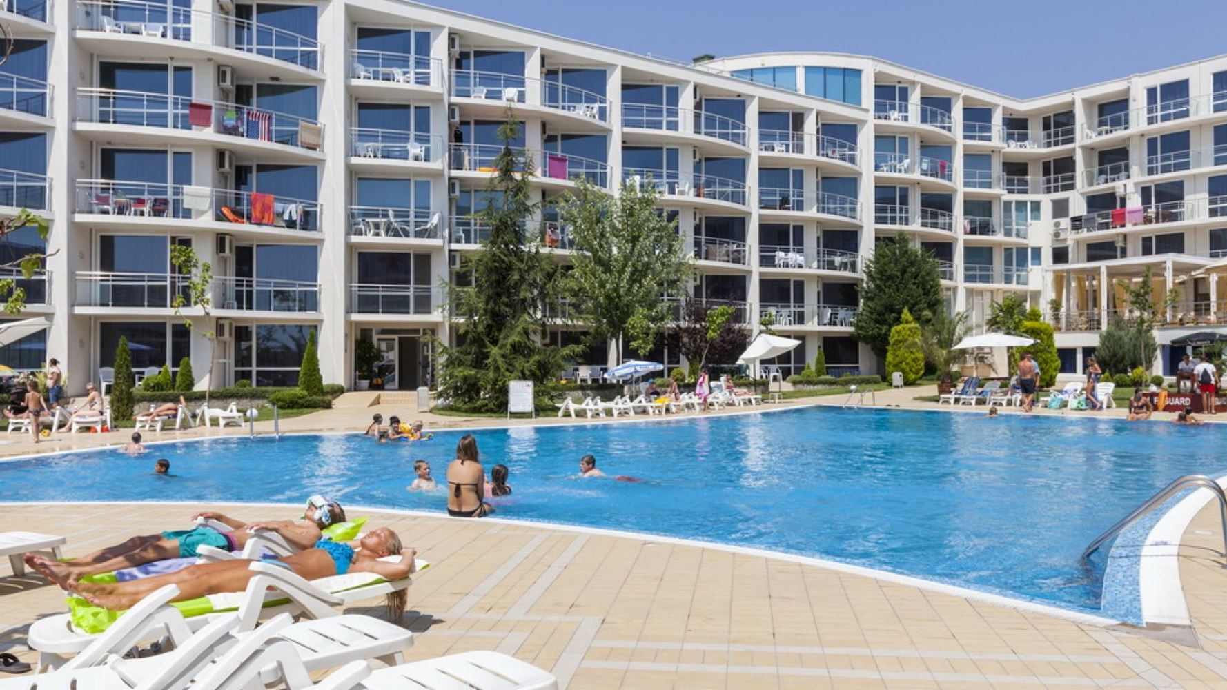 Fully furnished one-bedroom flat in a luxury complex located in the prestigious area of Burgas - Sarafovo. The complex consists of separate buildings, has a large area and developed infrastructure inside. It is situated away from the urban bustle and only 200 m away from the Black Sea coast. The following amenities and entertainments are rendered in the complex: open air swimming pools; children swimming pools; indoor swimming pool; billiards; health centre with sauna, massage and SPA; two restaurants with different cuisines; shop; fitness gym; night club and disco; playgrounds for children; pool bar; bowling; permanent security; medical service and quality service. This 70m2 flat is located on the fourth floor. It consists of living room with kitchen area, separate bedroom, bathroom with WC, balcony with beautiful sea and pool view. The price of the flat includes furniture and equipment.