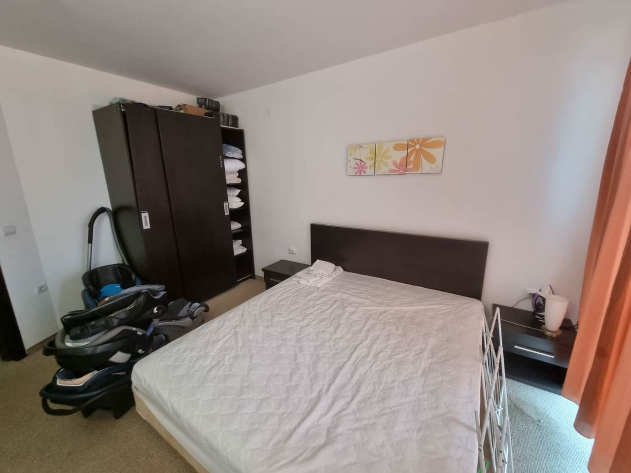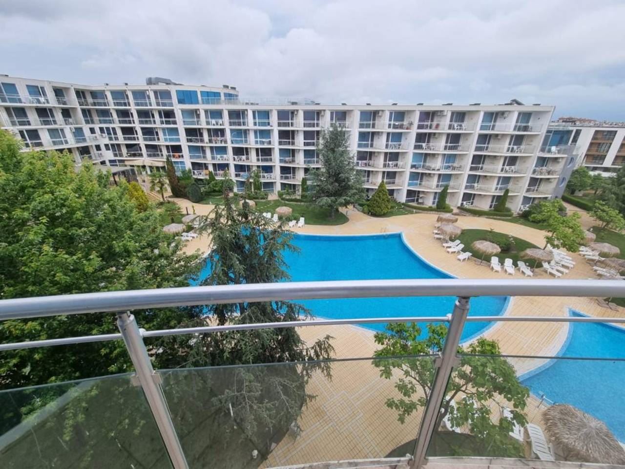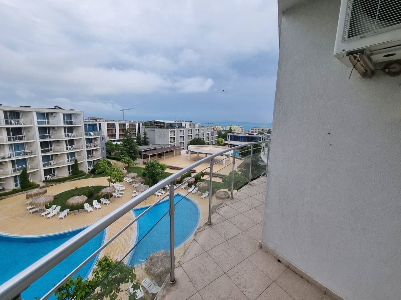 Fully furnished one-bedroom flat in a luxury complex located in the prestigious area of Burgas - Sarafovo. The complex consists of separate buildings, has a large area and developed infrastructure inside. It is situated away from the urban bustle and only 200 m away from the Black Sea coast. The following amenities and entertainments are rendered in the complex: open air swimming pools; children swimming pools; indoor swimming pool; billiards; health centre with sauna, massage and SPA; two restaurants with different cuisines; shop; fitness gym; night club and disco; playgrounds for children; pool bar; bowling; permanent security; medical service and quality service. This 70m2 flat is located on the fourth floor. It consists of living room with kitchen area, separate bedroom, bathroom with WC, balcony with beautiful sea and pool view. The price of the flat includes furniture and equipment.