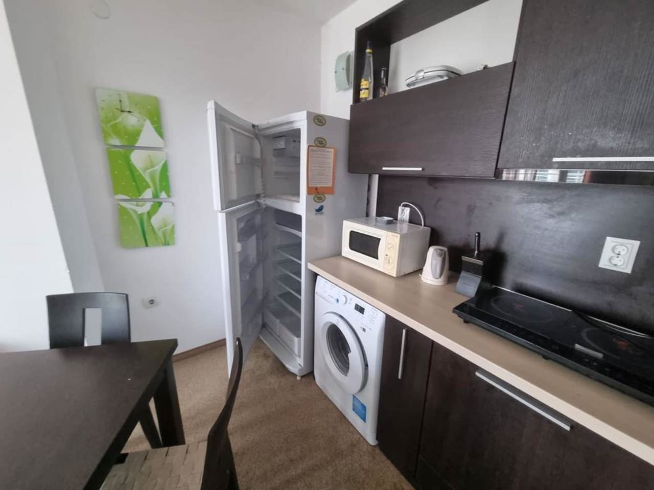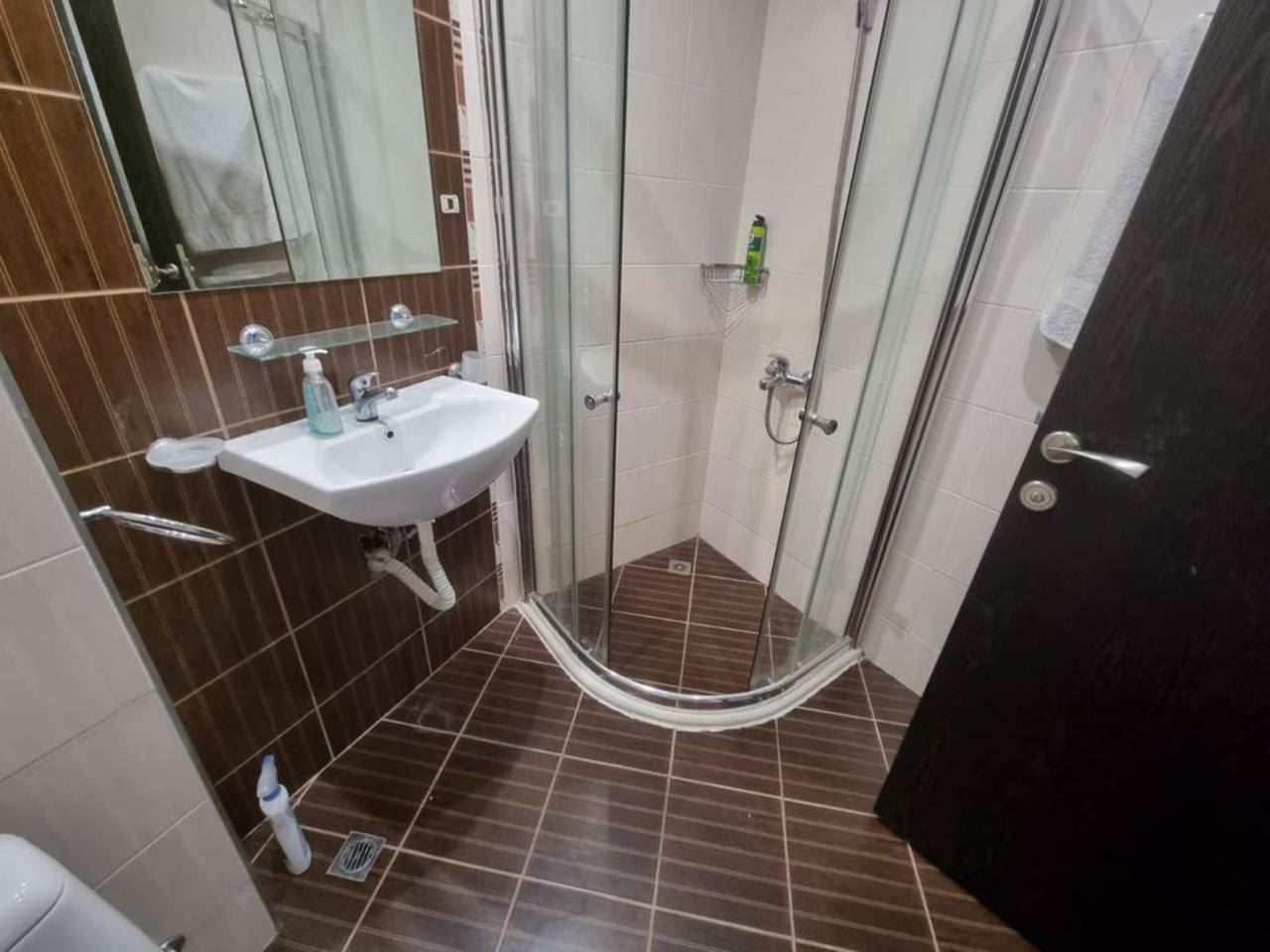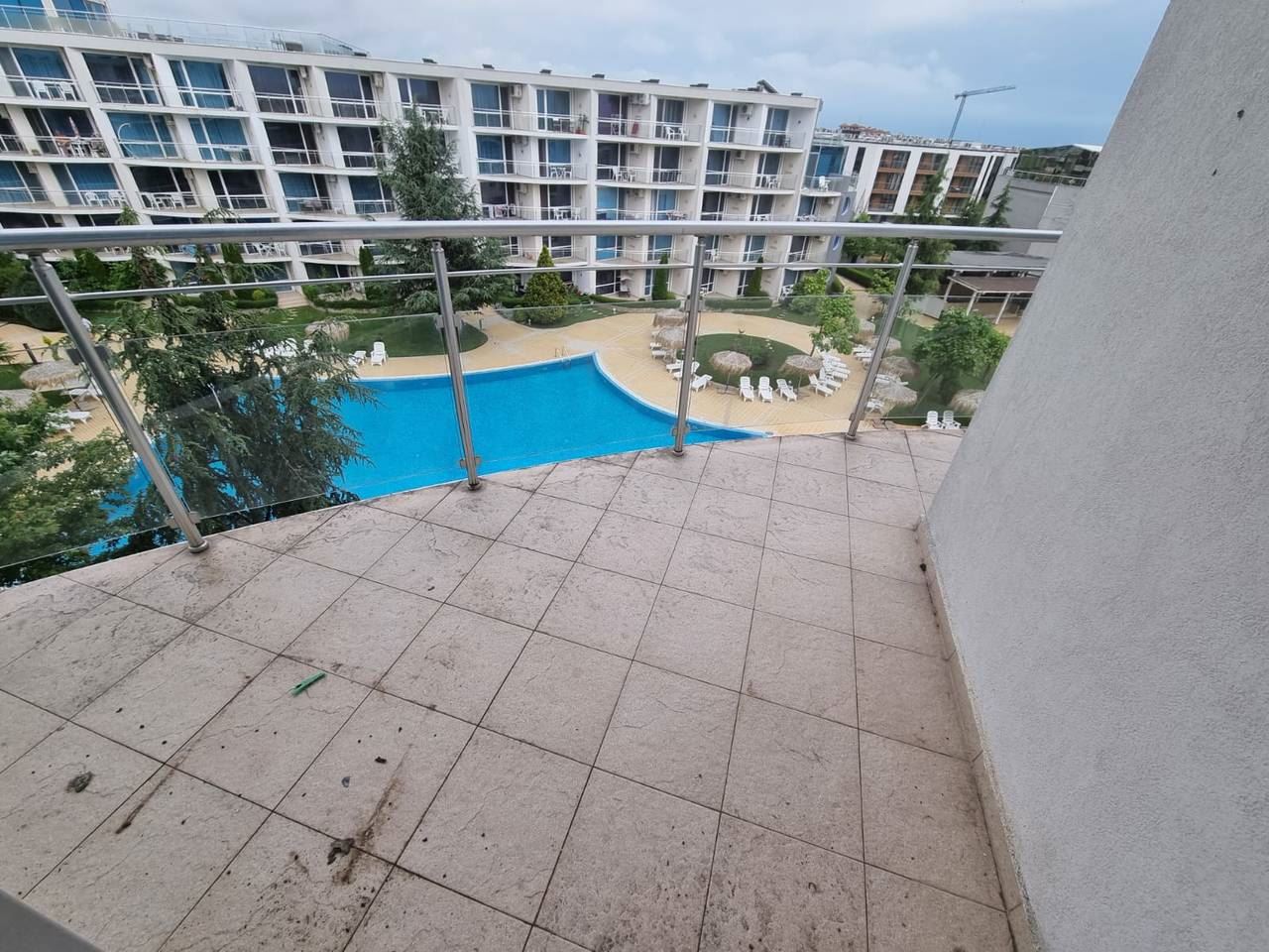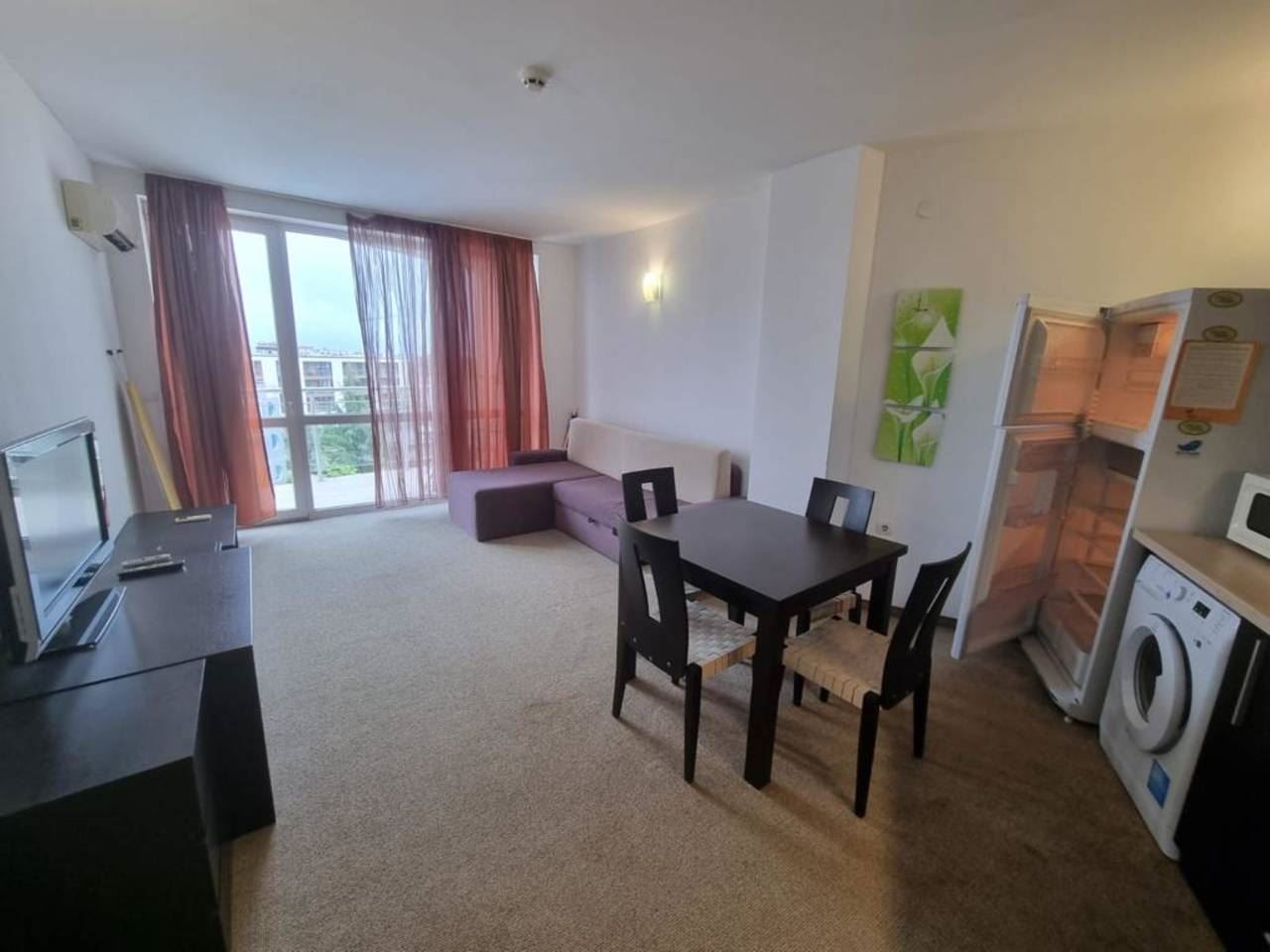 Fully furnished one-bedroom flat in a luxury complex located in the prestigious area of Burgas - Sarafovo. The complex consists of separate buildings, has a large area and developed infrastructure inside. It is situated away from the urban bustle and only 200 m away from the Black Sea coast. The following amenities and entertainments are rendered in the complex: open air swimming pools; children swimming pools; indoor swimming pool; billiards; health centre with sauna, massage and SPA; two restaurants with different cuisines; shop; fitness gym; night club and disco; playgrounds for children; pool bar; bowling; permanent security; medical service and quality service. This 70m2 flat is located on the fourth floor. It consists of living room with kitchen area, separate bedroom, bathroom with WC, balcony with beautiful sea and pool view. The price of the flat includes furniture and equipment.