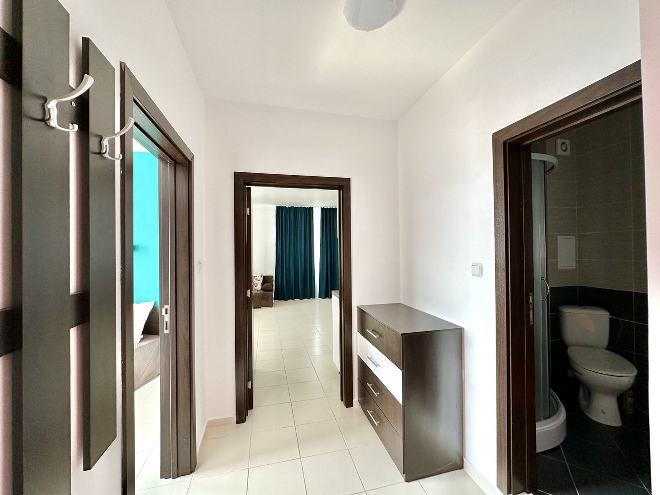 One bedroom apartment in a residential building in the resort town of Pomorie. The beautiful modern seaside town is located 15 km away from the regional center of Bourgas and 10 minutes drive from the international airport. Pomorie is characterized by a good infrastructure, which allows you to live fully all year round. The town has schools, kindergartens, hospital, polyclinic, banks, notaries, library, park areas and of course beautiful beaches. The new residential building is literally a few minutes from the center. It is a well-appointed residential area with all communications. The six-storey building consists of a parterre level and five residential floors. The offered apartment with size 62,79 m2 is located on the third floor (not the last one, there is an elevator). There is Act 16, low service tax. The sunny apartment is located at the beginning of the Old Town, next to the Salt Museum and close to the promenade. It is sold fully furnished.