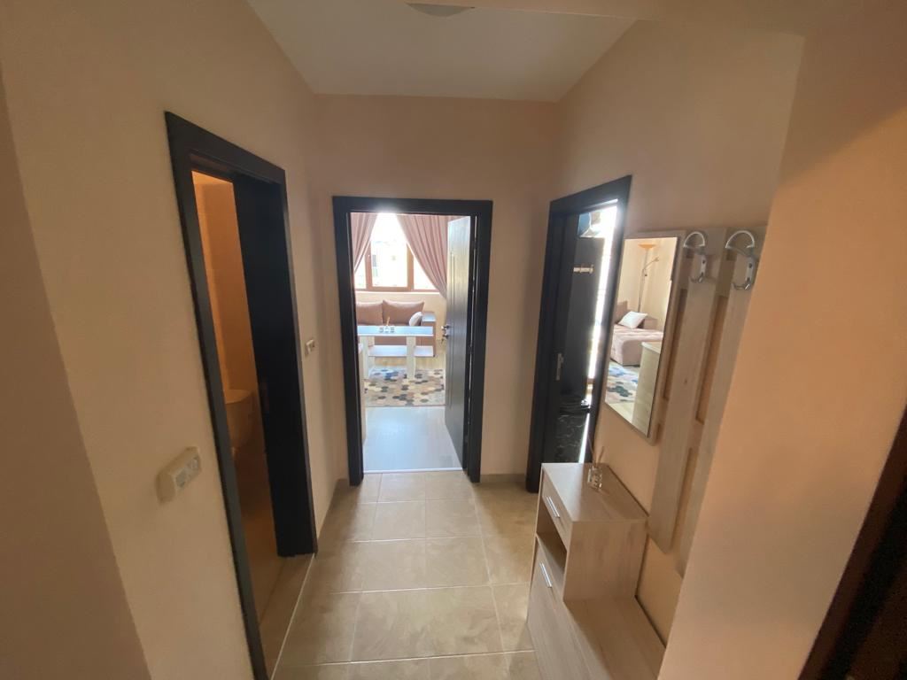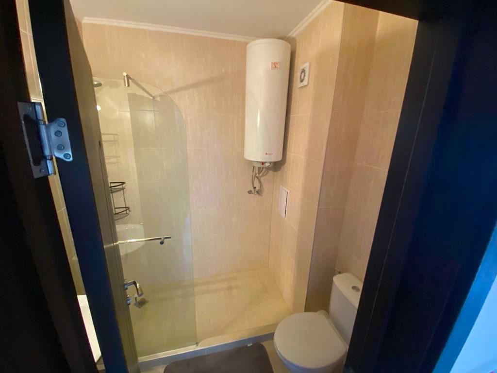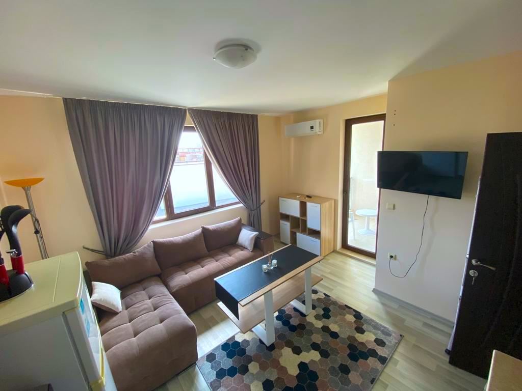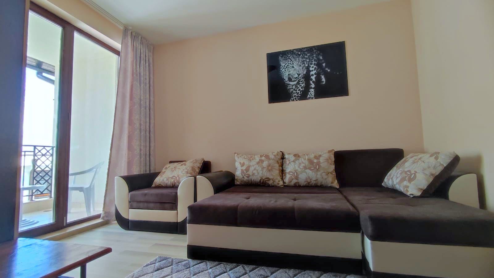 One bedroom flat in Nessebar in a luxury gated complex. The complex is only 300 m away from the beautiful sandy beach and 300 m away from Aqua Park. There are shops, cafes, restaurants, places of amusement and a public transport stop near the complex. The offered flat is located on the fifth floor and has a size of 55 m2. It consists of a living room with open plan kitchen area, bedroom, bathroom with WC and a balcony overlooking the city. The flat is being sold fully finished, furnished and equipped. The complex has swimming pools, restaurants, fitness centre, tennis court, Russian billiards, children's room, children's and sports playgrounds, security, parking, gated community.