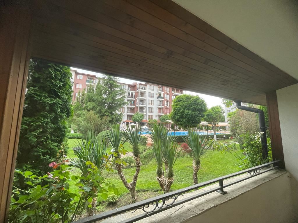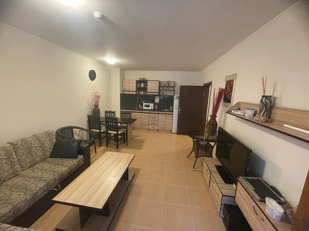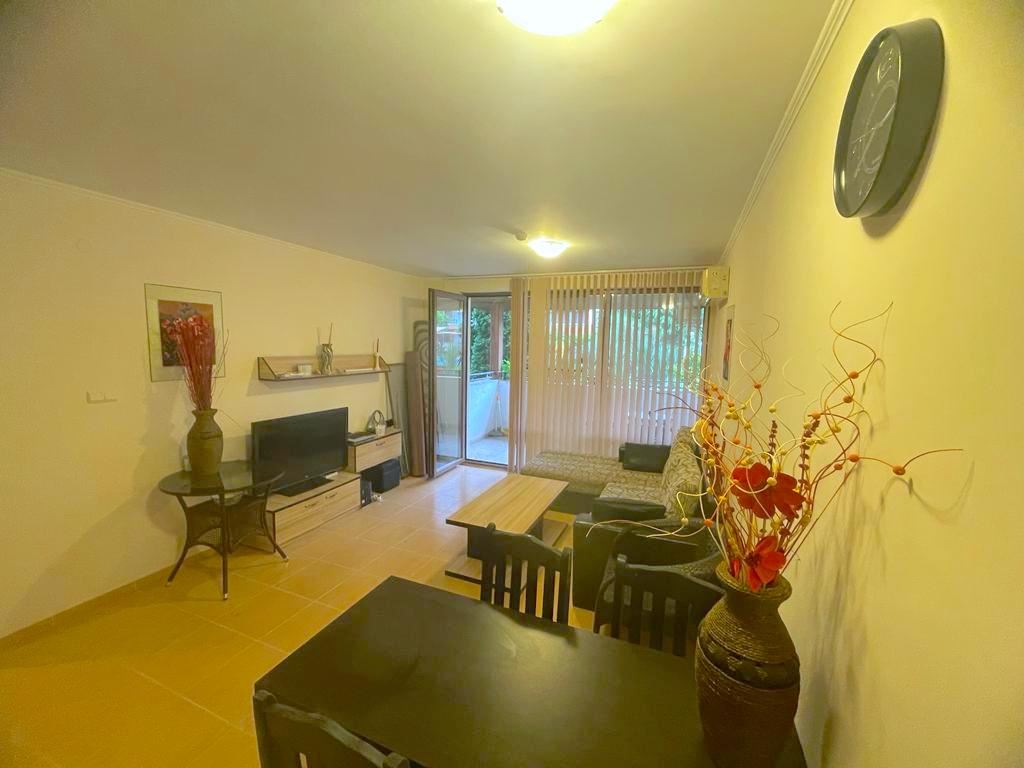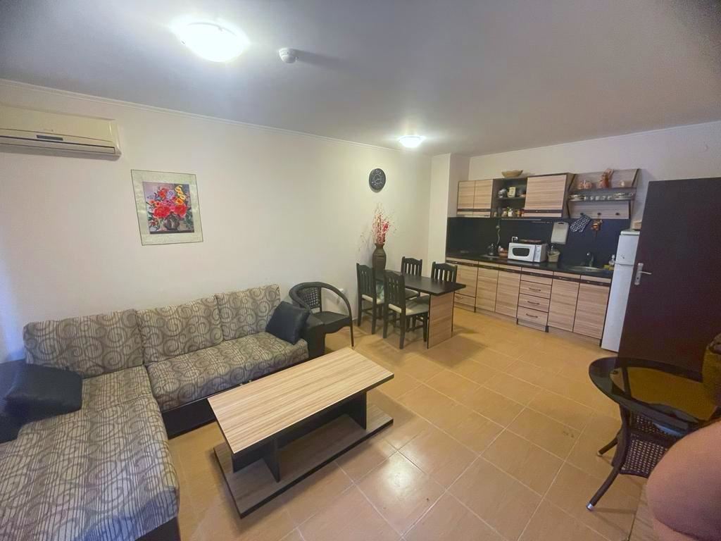One bedroom apartment in the new area of Nessebar in a luxury gated complex. The complex is located 300 m away from the beautiful sandy beach and 300 m away from the Aqua Park. There are stores, cafes, restaurants, places of amusement and a public transport stop near the complex. The offered apartment is located on the first floor with size 70m2. It consists of living room with open plan kitchen area, bedroom, bathroom with WC and a balcony overlooking the pool. The apartment is sold fully finished, furnished and equipped. Complex amenities include swimming pools, restaurants, fitness center, tennis court, billiards, children's room, children's and sports playgrounds, security, parking, closed territory.