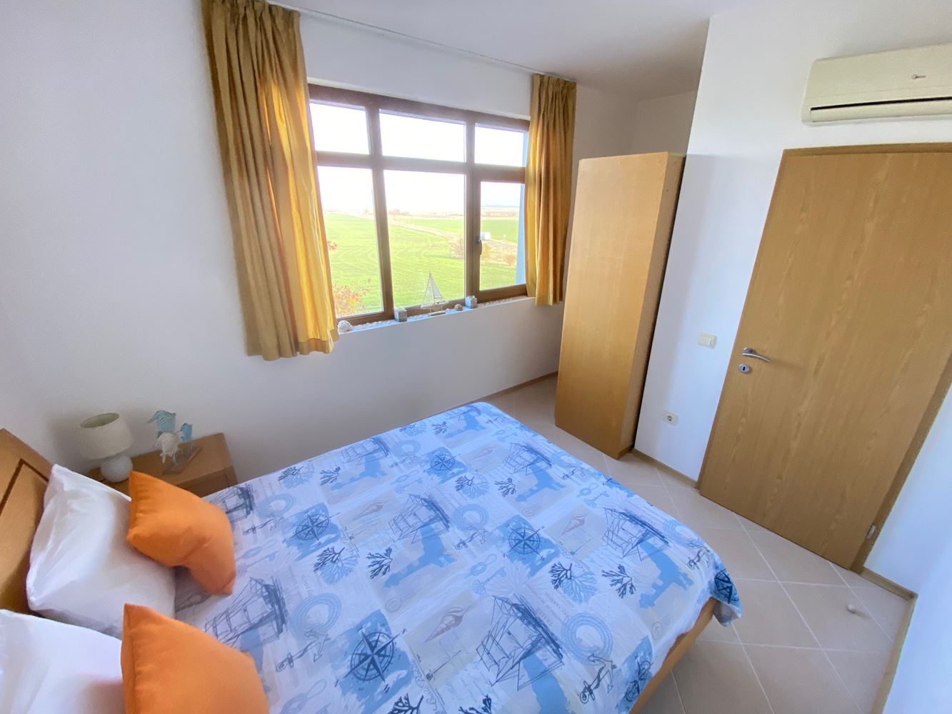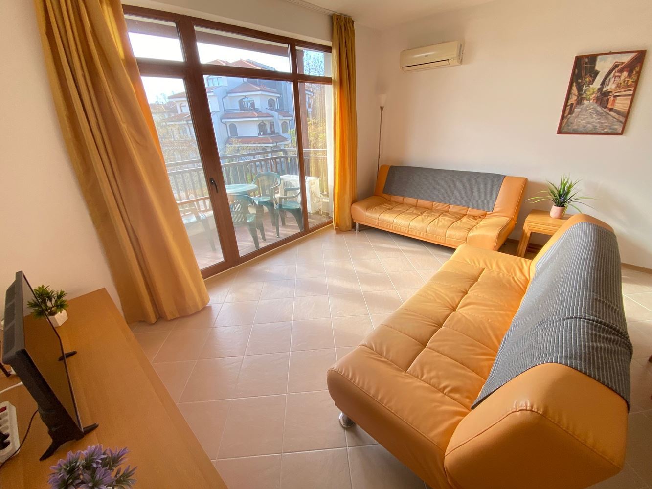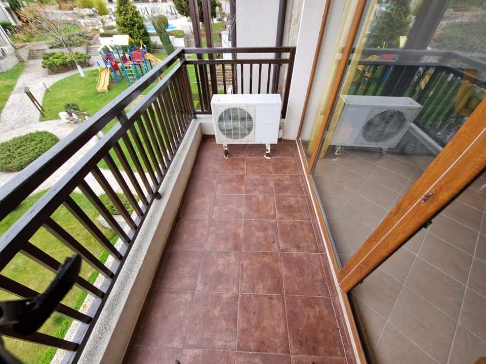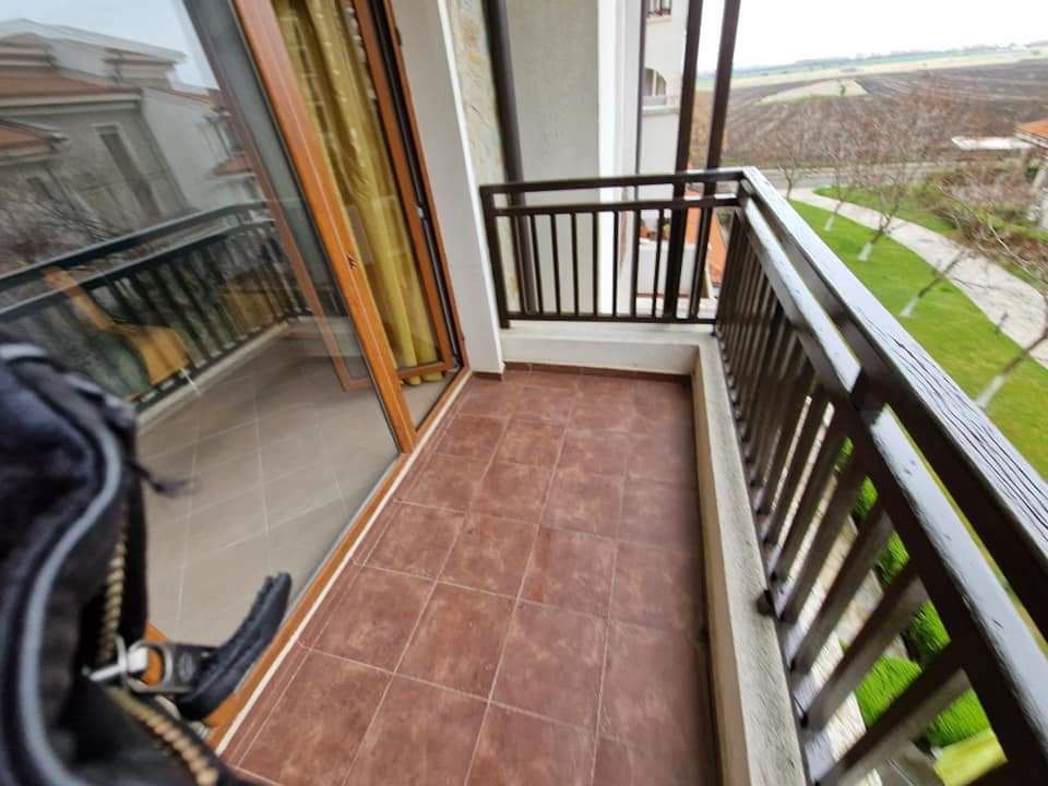 Furnished one-bedroom apartment in an interesting gated complex, which is situated among vineyards and lush green meadows, with beautiful panoramic views of the mountains, the sea and the surrounding nature. The complex is built in a unique architectural style. Located away from the bustling city environment, just a few minutes drive from the famous resort towns. The building is situated in a lovely hilly area in the valley of the Aheloy River and has an incredible panoramic view of the sea. There are many facilities for sport, recreation and entertainment, restaurants and swimming pools. The offered flat is located on the first floor and has a living area of 68 m2. The apartment is for sale with furniture and white goods.