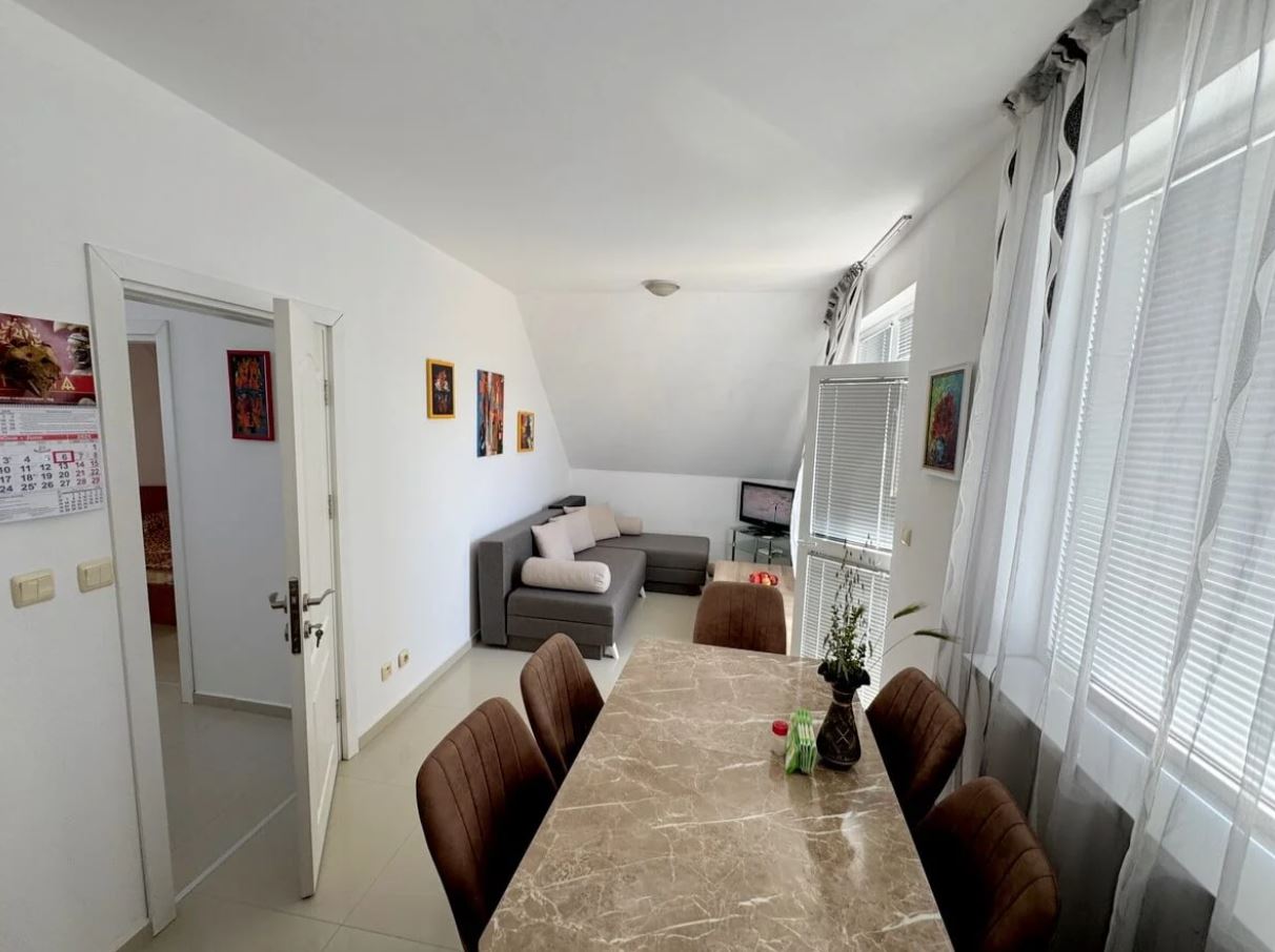 Elegant one-bedroom apartment for sale in Ravda with incredible sea views! This peaceful retreat is located on the top floor and offers a total area of 70 m2. The apartment is located in a quiet and peaceful area, ideal for rest and relaxation. The layout includes a corridor, a spacious living room with a modern kitchen, a cosy bedroom, a bathroom and a lovely balcony from which you can enjoy the magnificent sea panorama. The property is sold fully furnished, so the new owners can move in immediately and start enjoying their new home.