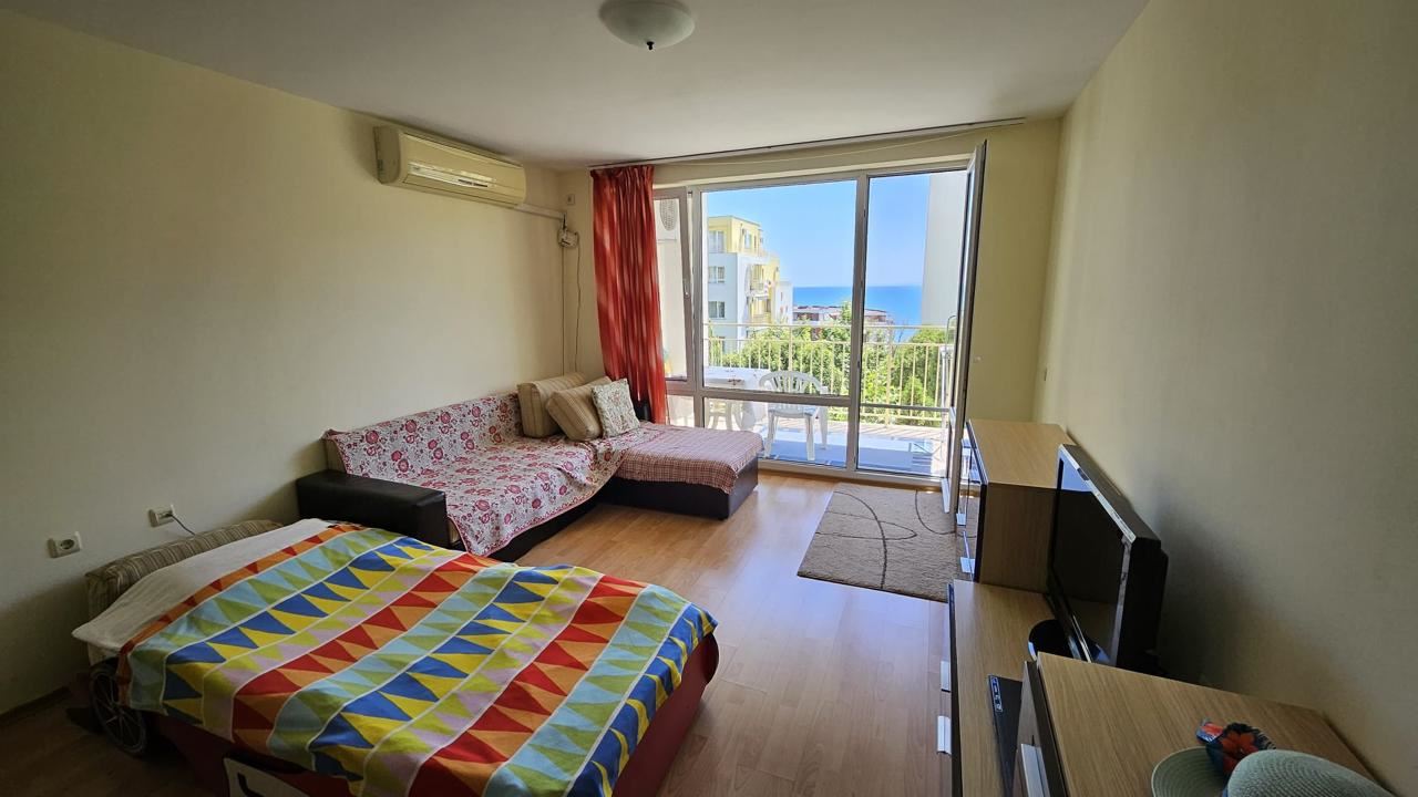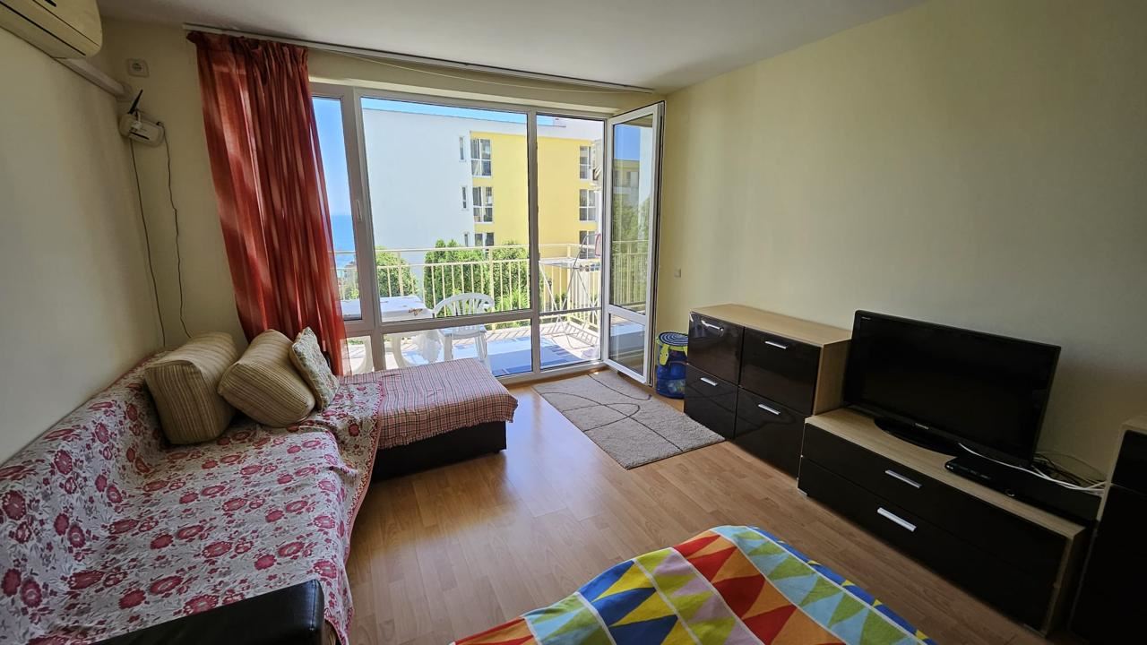 Great one bedroom apartment with sea view is located in the resort town of Sveti Vlas and is an ideal place for vacation or living in an elite complex located at the foot of the mountain, close to the beach. The complex is considered one of the most prestigious in Sveti Vlas, providing a high level of comfort and amenities for its residents.