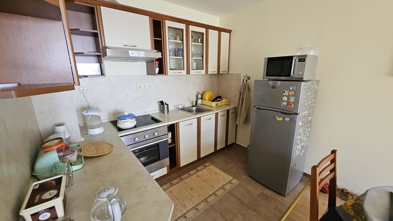 The apartment has an area of 70 m2 and is located on the second floor in a building with elevator. From the windows and balcony there is a wonderful view of the sea and the complex, which creates a unique atmosphere of peace and coziness. The apartment is fully furnished and equipped with all necessary appliances, making it ready for immediate occupancy. It consists of an entrance hall, living room with kitchenette, bedroom, bathroom and balcony.