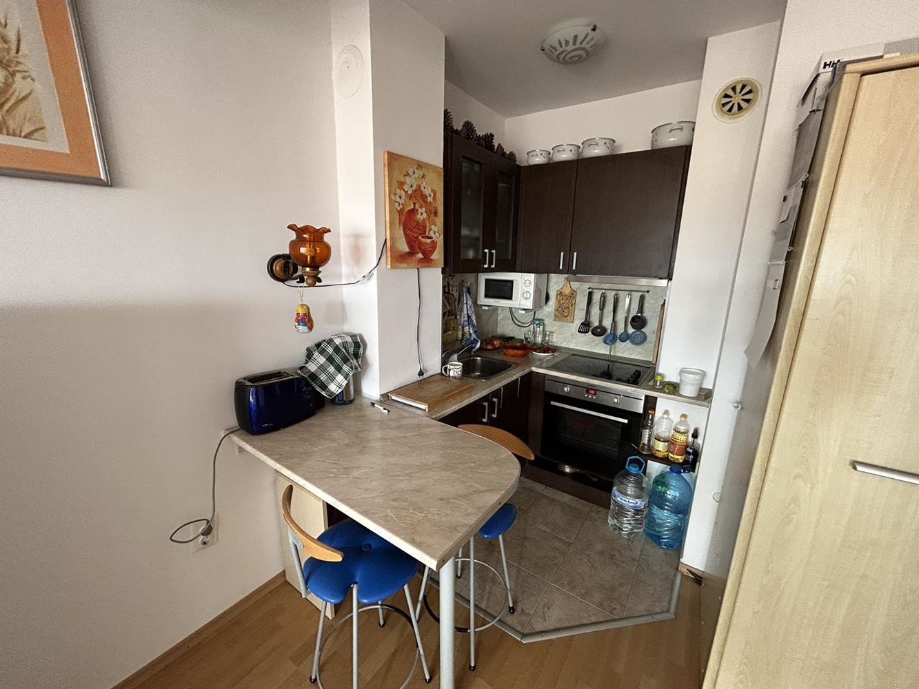 One bedroom apartment with an excellent location in the resort town of Pomorie. The house is located in a well-maintained area, 300 meters from the sea, within walking distance from the central part of the old town. This is a very comfortable place for permanent residence. Nearby is the City Hall, supermarket, bus station, stores, pharmacy. Walking promenade with bars, restaurants and attractions is within walking distance. The apartment we offer for sale is in a building already put into operation. The apartment is located on the fifth floor. Area of the apartment is 62 m2. The apartment layout includes an entrance hall, living room with kitchenette, bedroom, bathroom with toilet and a panoramic balcony. The apartment is sold with furniture, appliances and equipment.
