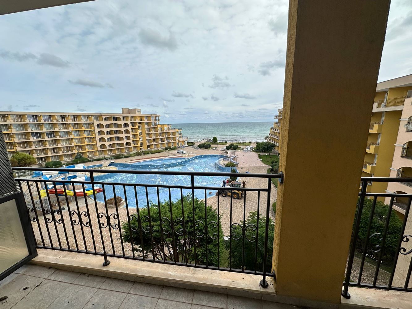 The property is located in a modern, well-maintained first-line complex consisting of two buildings with a ground floor and six residential floors, facing southeast. Here you will find everything necessary for quality living and relaxation by the sea: two large swimming pools, a restaurant, a pool bar, a shop, a hair salon, a fitness center, a convenient parking area, car rental, and a concierge. The green areas are perfectly maintained, the atmosphere is peaceful, and the contemporary design adds to the sense of style and space. The building has an elevator. The property has residential status, Act 16, and domestic electricity – guaranteeing trouble-free operation and year-round use. The layout includes 2 rooms, 1 bedroom, 1 bathroom, and 1 balcony – the ideal balance between space and functionality.
