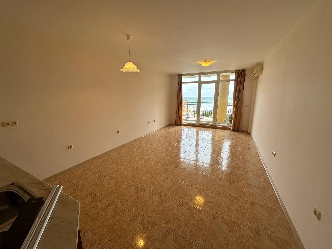 We present to you an exceptional one-bedroom apartment on the first sea line in Aheloy – spacious, bright, and offering an impressive panoramic sea view. The property is ideal both for a full holiday and year-round living, as well as a secure investment with excellent rental potential. The apartment has a total area of 100 m² and a functional layout: a convenient entrance hall, a spacious living room with a kitchen and dining area, a large bedroom, a bathroom with toilet, and a wide balcony revealing an endless sea horizon. The layout ensures comfort and privacy, while the large windows fill the rooms with natural light and a sense of openness.
