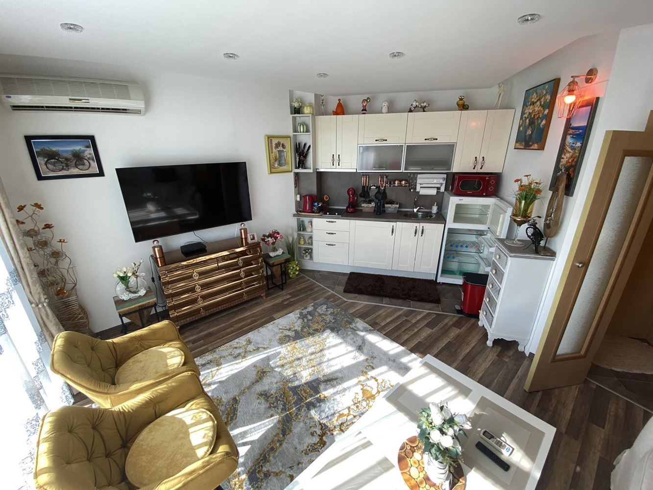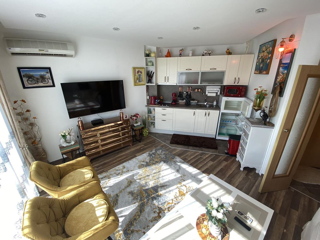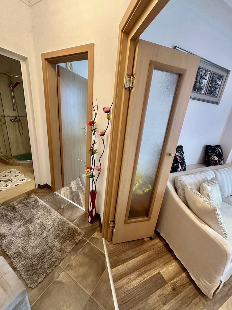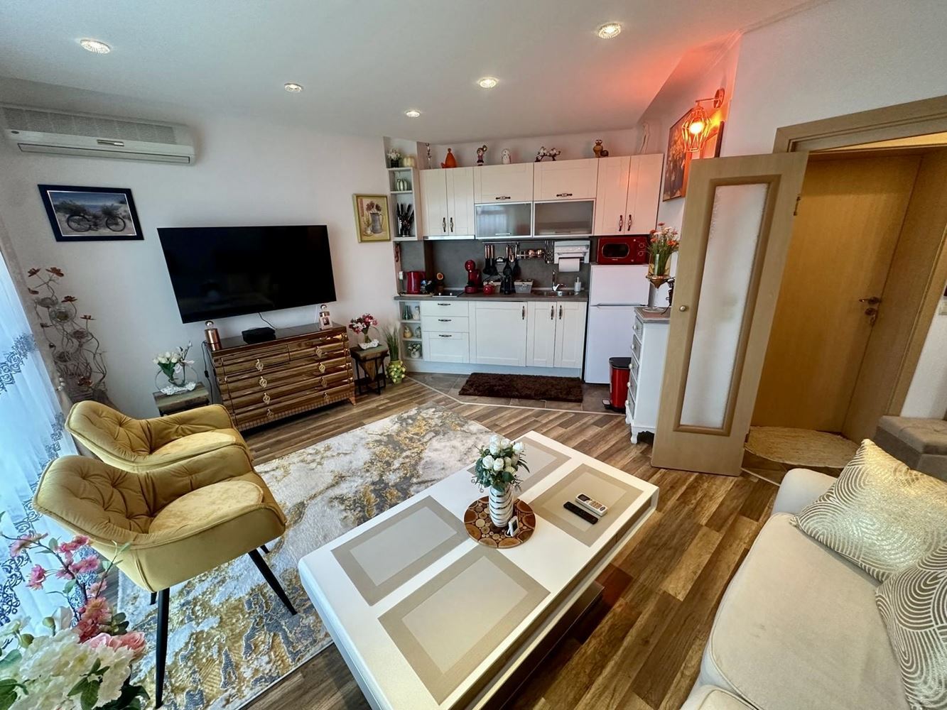 The apartment is stylishly designed and fully furnished with brand-new furniture, making it ready for immediate move-in. The spacious hallway leads to a bright kitchen with a dining area, creating a cozy atmosphere for family dinners or pleasant gatherings with friends. The separate bedroom offers a quiet and relaxing environment, while the modern bathroom with WC is finished with attention to detail. The jewel of the property is the terrace with a direct sea view – a place that will become your favorite spot for morning coffee or romantic evenings with the sunset as a backdrop.
