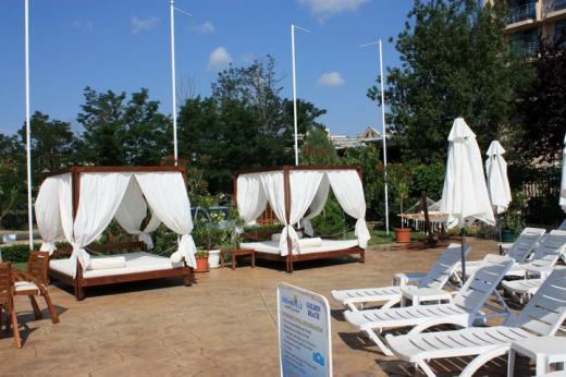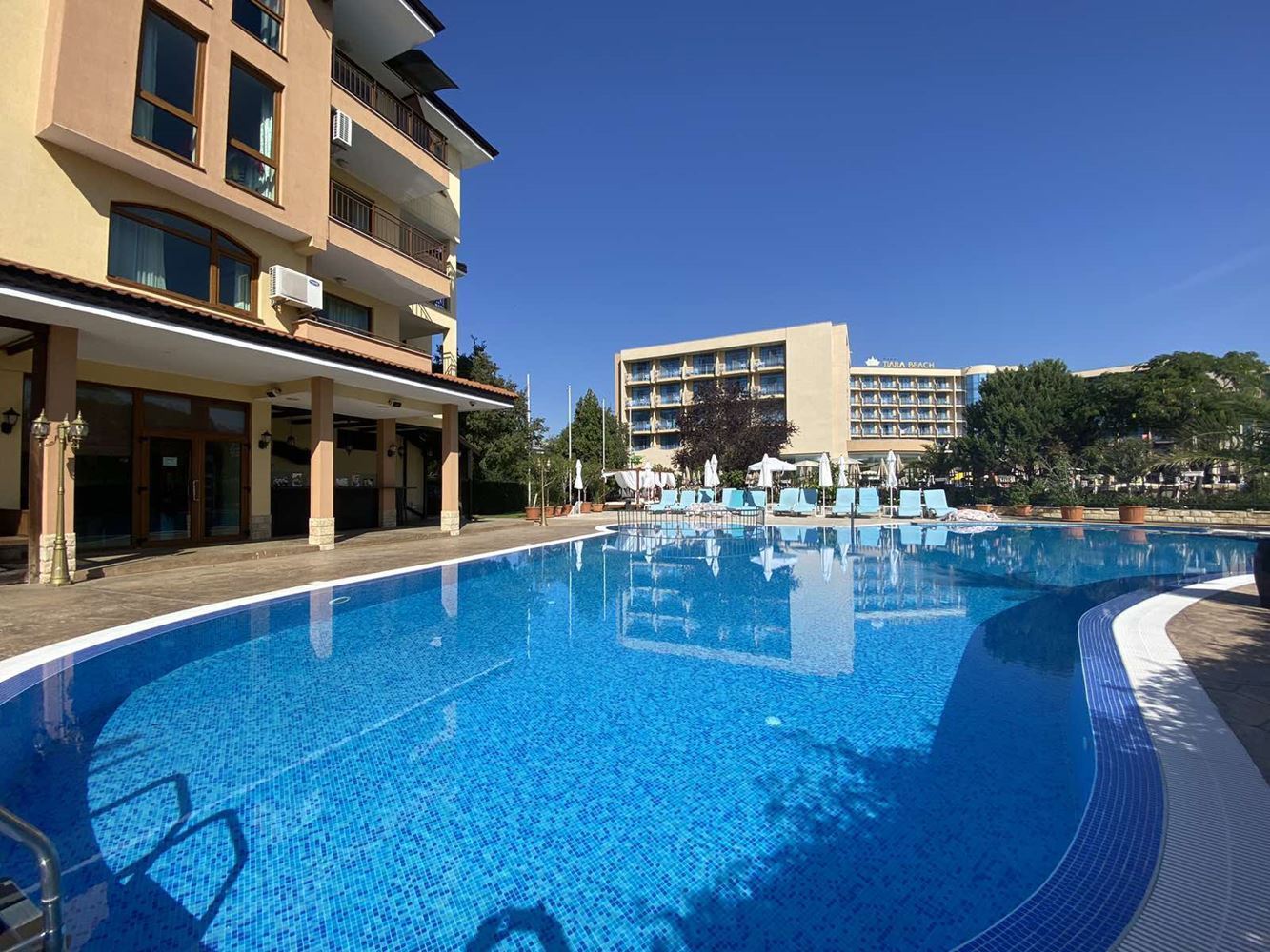 The complex is a true oasis for relaxation and convenience. Owners and guests can enjoy a large swimming pool with sun loungers, a lobby bar, and reception for comfort and security, various shops for everyday needs, as well as parking. The well-maintained garden paths in the courtyard add a sense of peace and greenery. The location is undoubtedly one of the greatest advantages of the property – just steps from the beach and in the heart of the vibrant resort. Within walking distance, you’ll find everything you need for a complete stay: shops, restaurants, bars, casinos, nightclubs, souvenir stalls, medical center, public transport, pastry shops, cafés, markets, banks, currency exchange, post office, and beauty salons.